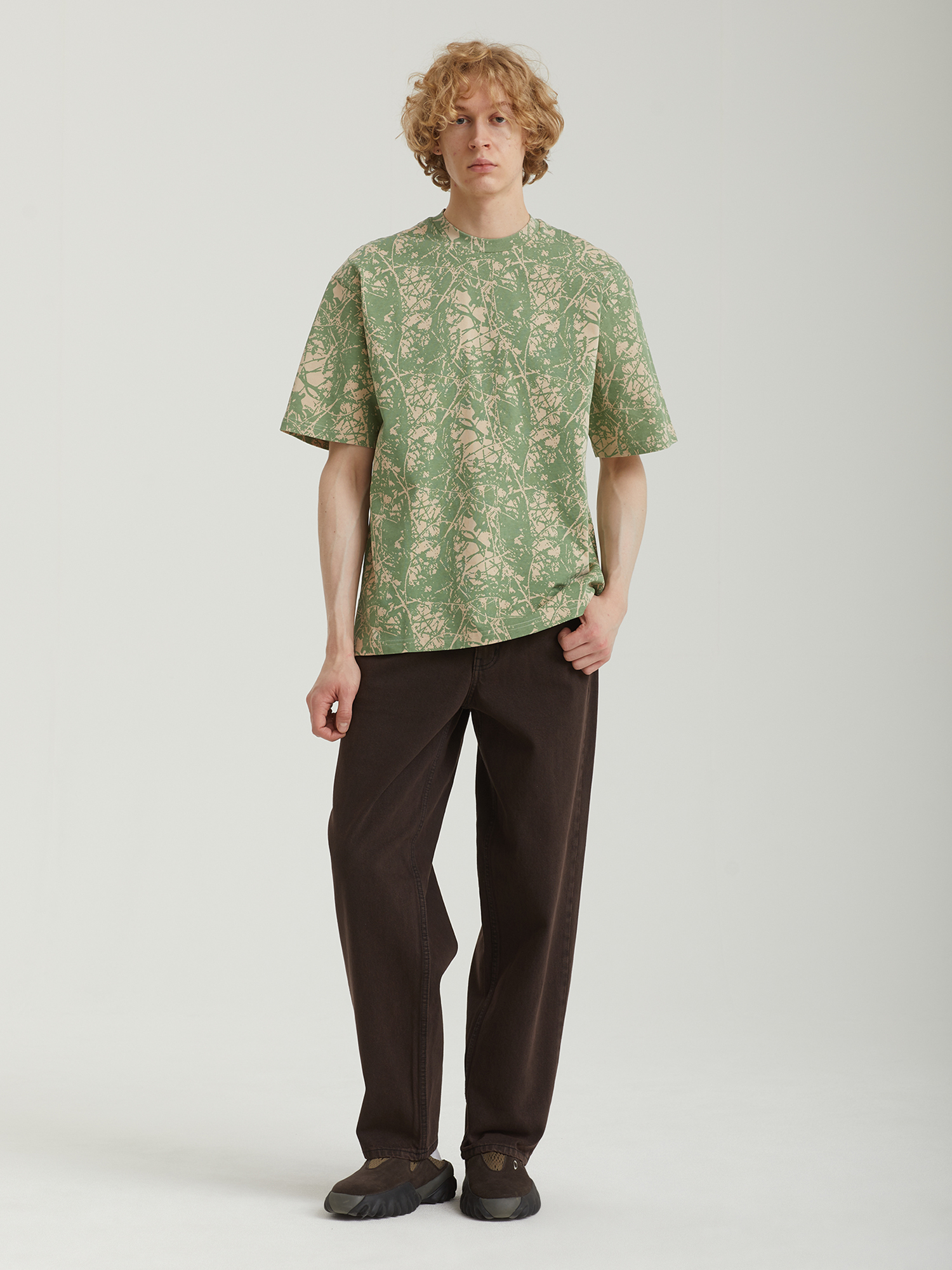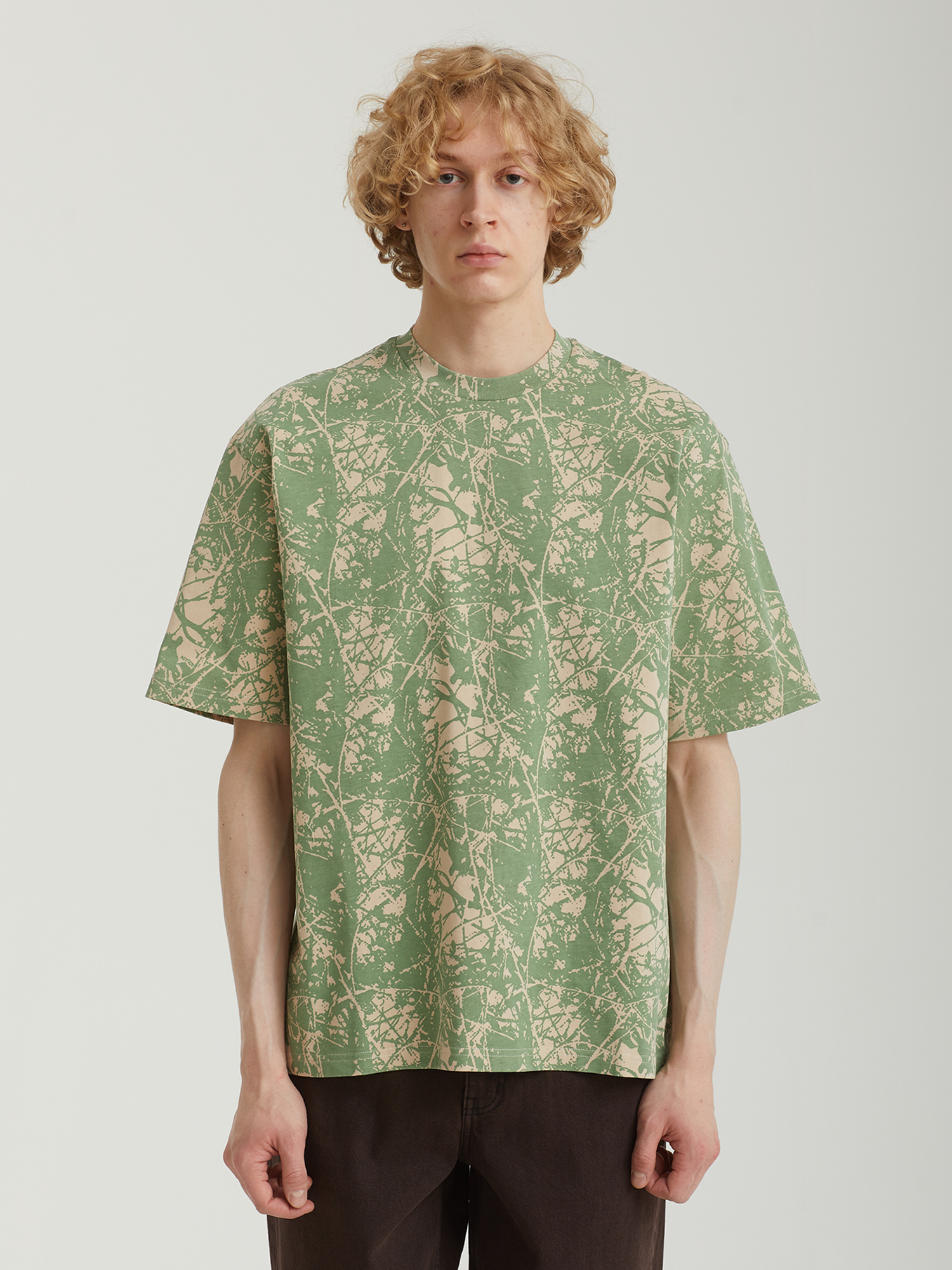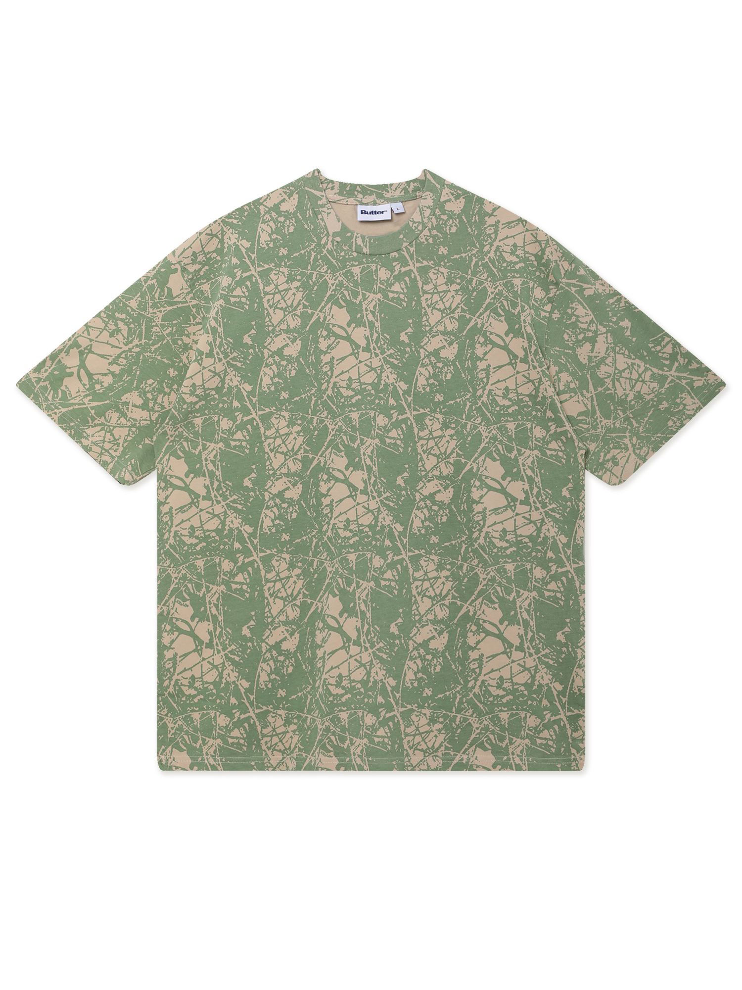 Хлопковая футболка Butter Goods с камуфляжным принтом по всей поверхности. Изделие прошло фабричную обработку Mineral washing для придания легкого винтажного эффекта.