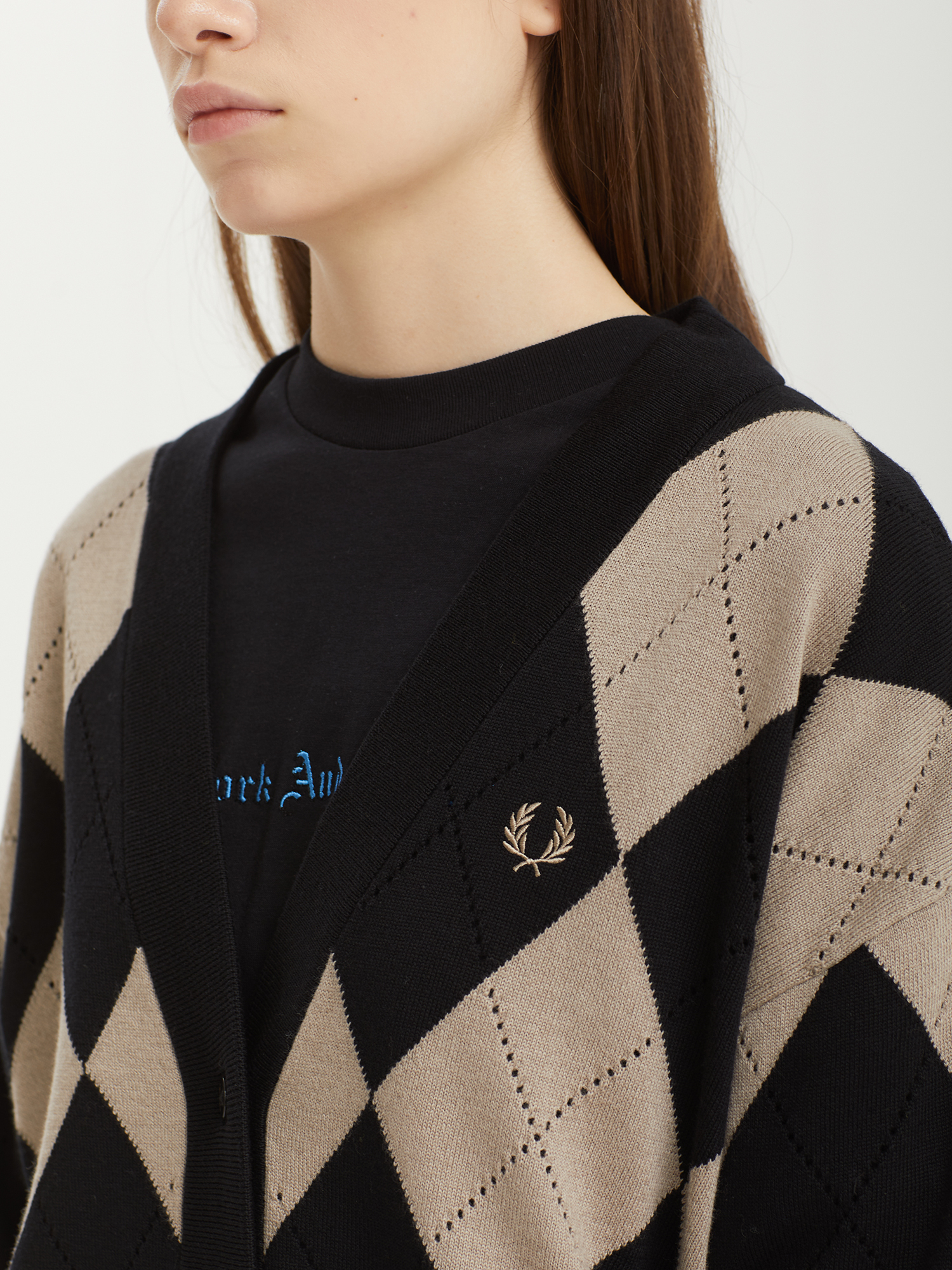 Кардиган Fred Perry из натуральной пряжи с рисунком аргайл.