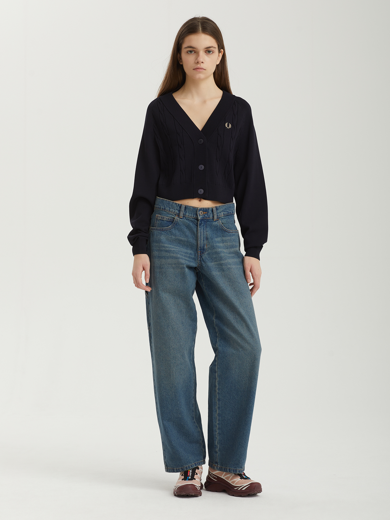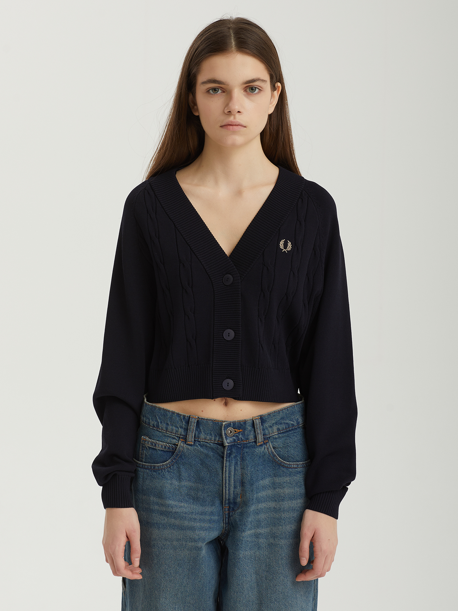 Кардиган Fred Perry из смесовой пряжи с вязкой косами.