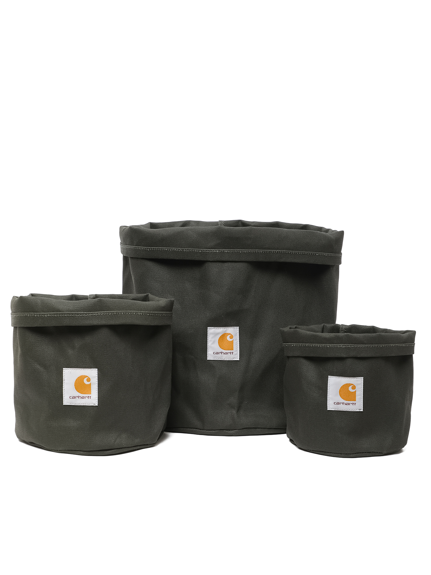 Набор кашпо для цветов Carhartt WIP из прочного хлопкового канваса 'Dearborn' плотностью 385 г/м² с вощеным покрытием. Фирменные нашивки с логотипом на каждом предмете.