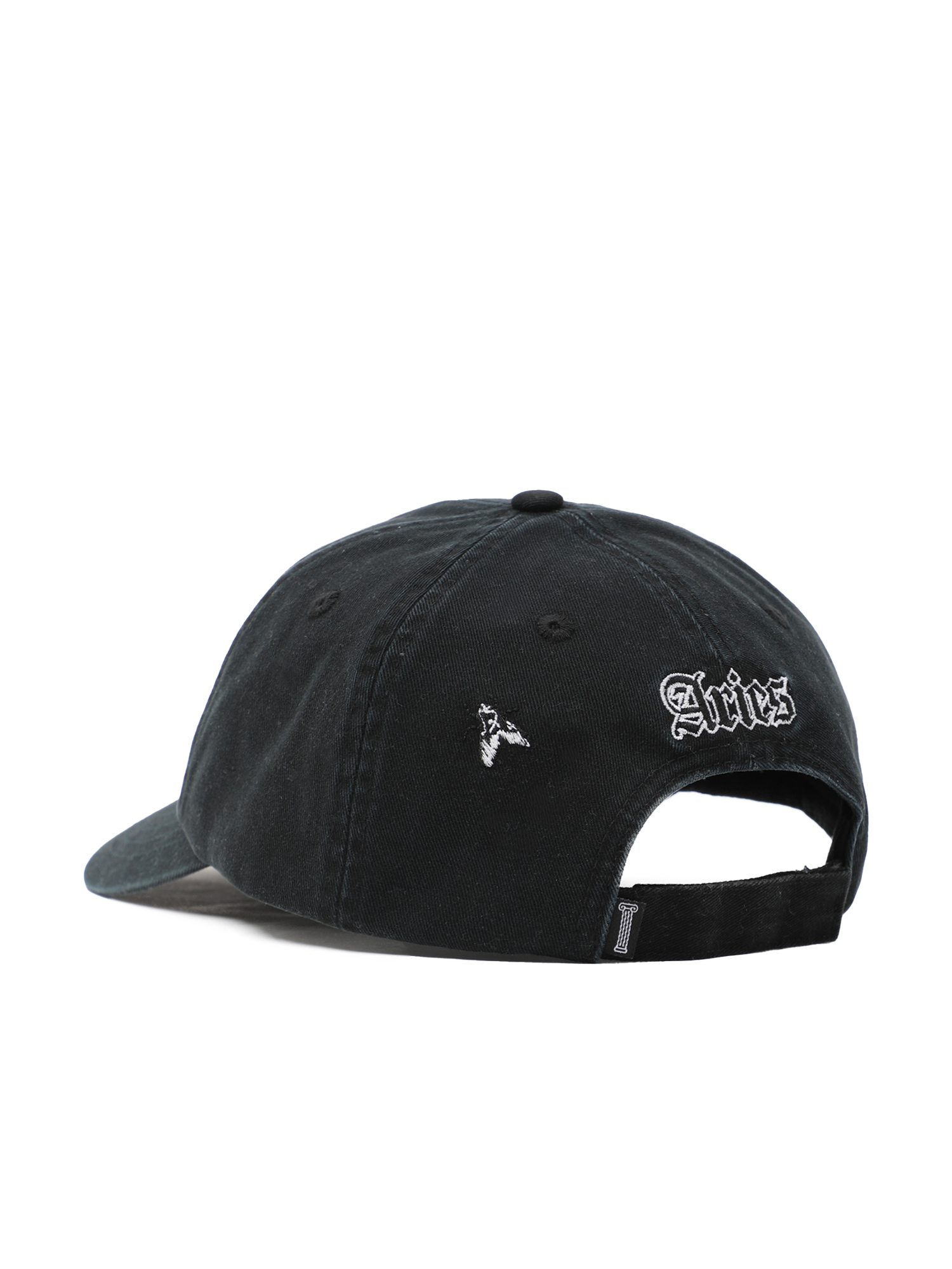 Кепка с вышитыми логотипами Aries из прочного хлопкового твила. Изделие выстирано с кислотами для получения оригинального рисунка ткани.