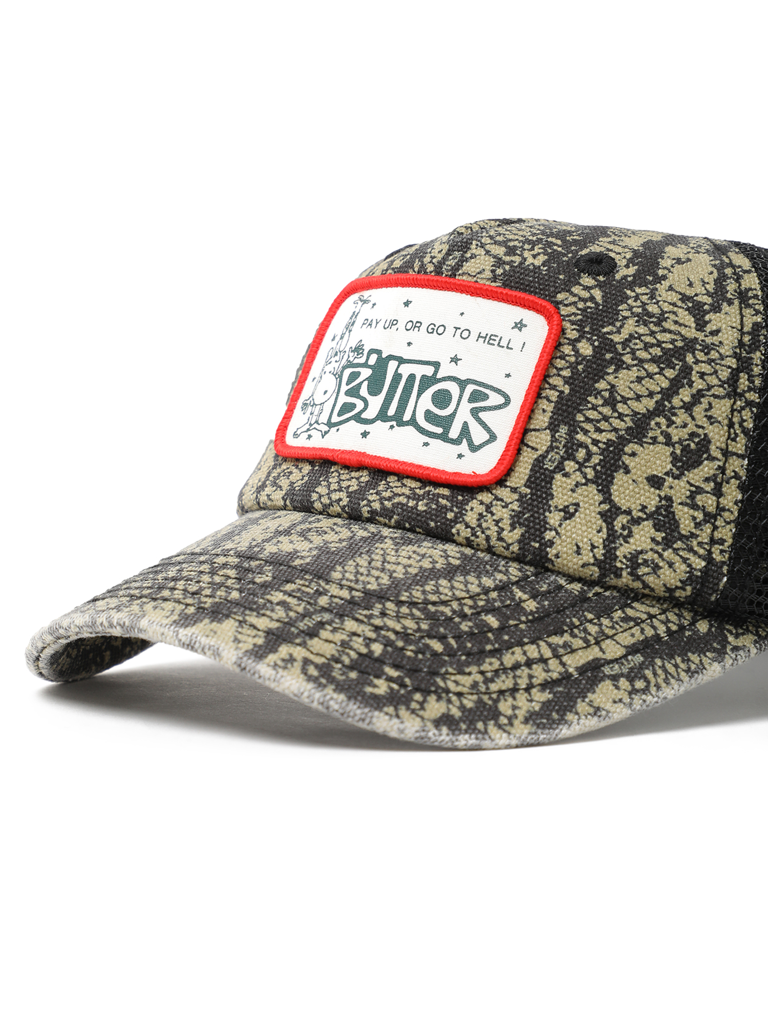 Бейсболка Butter Goods с усиленной фронтальной панелью и задними панелями из сетки. Изделие дополнено змеиным принтом.