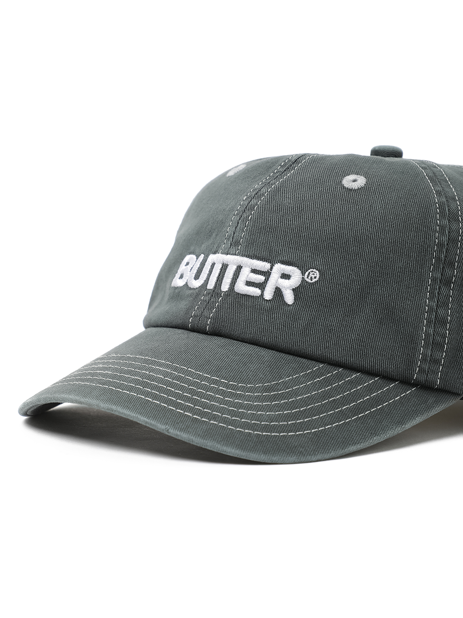 Кепка с вышитым логотипом Butter Goods из выстиранного хлопкового твила. Изделие дополнено контрастной строчкой.