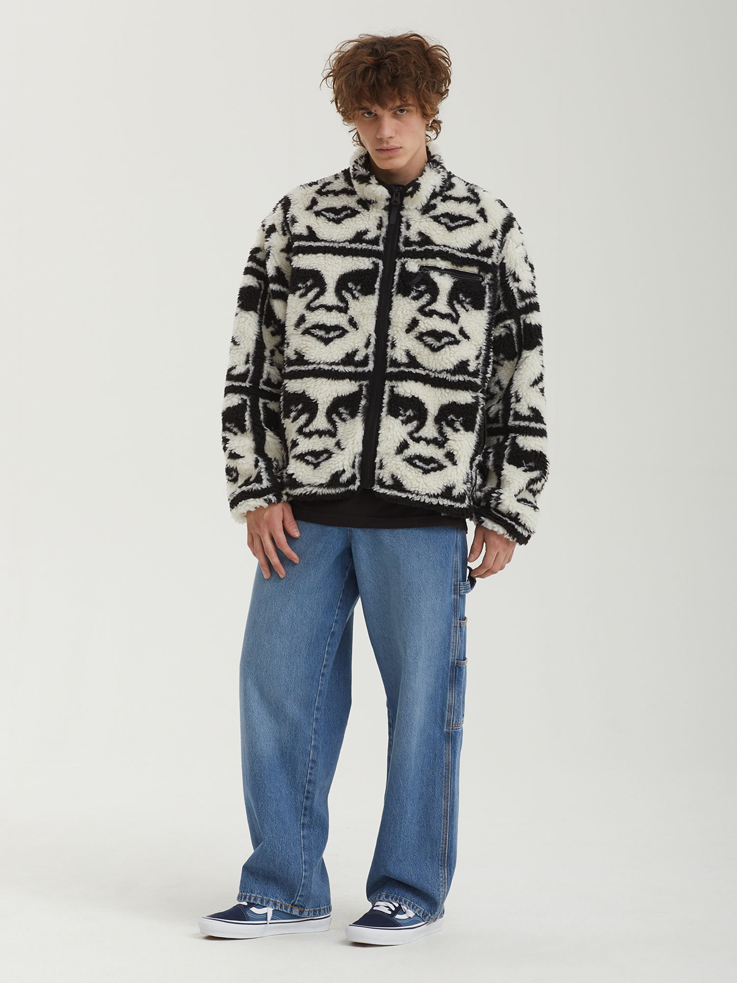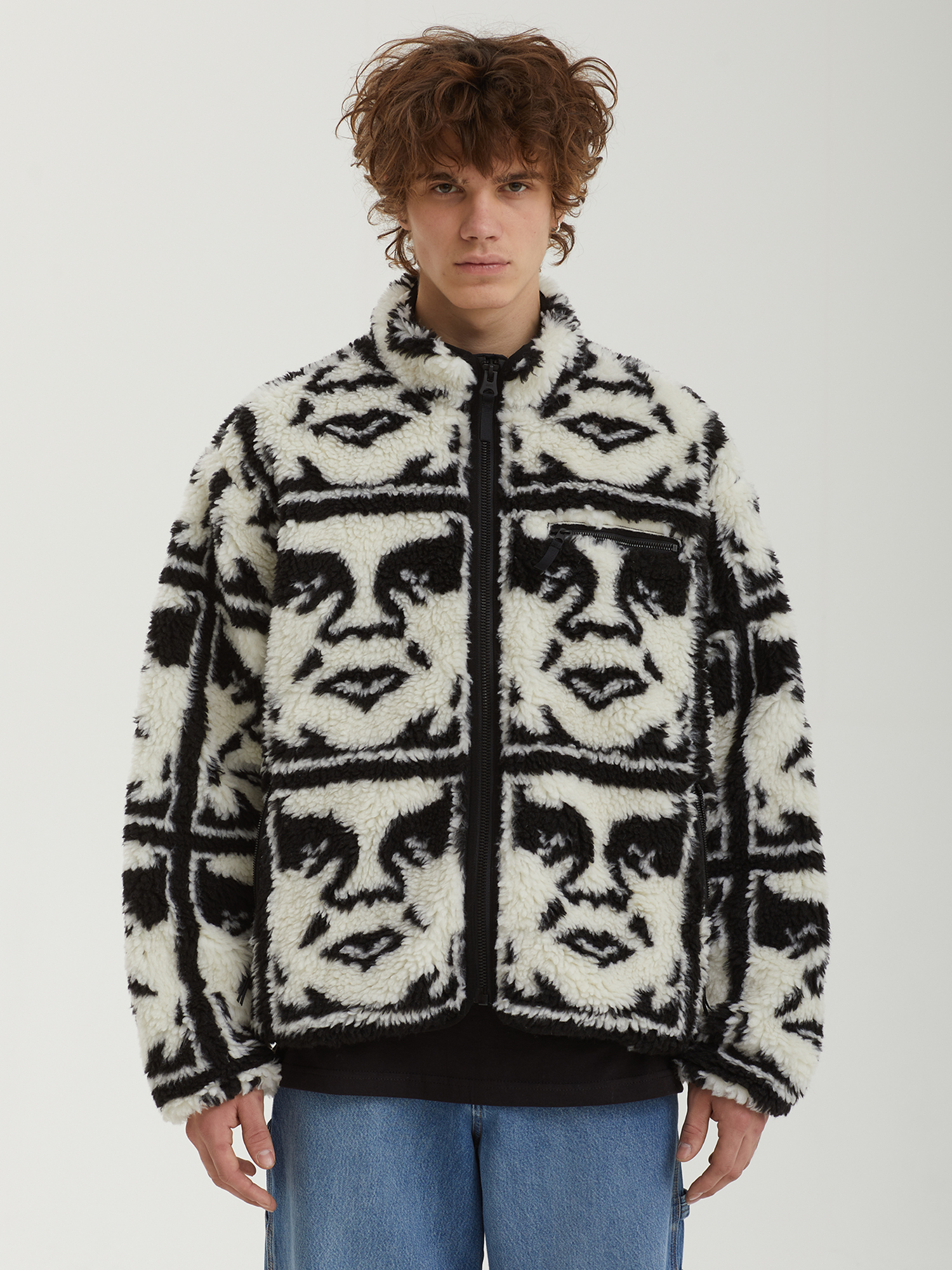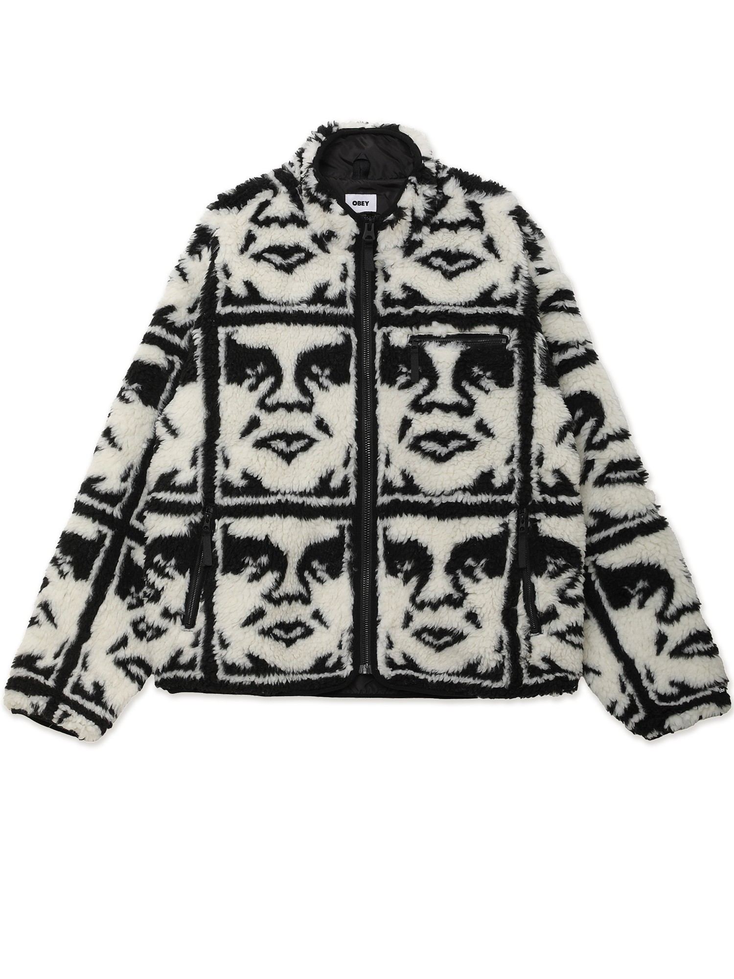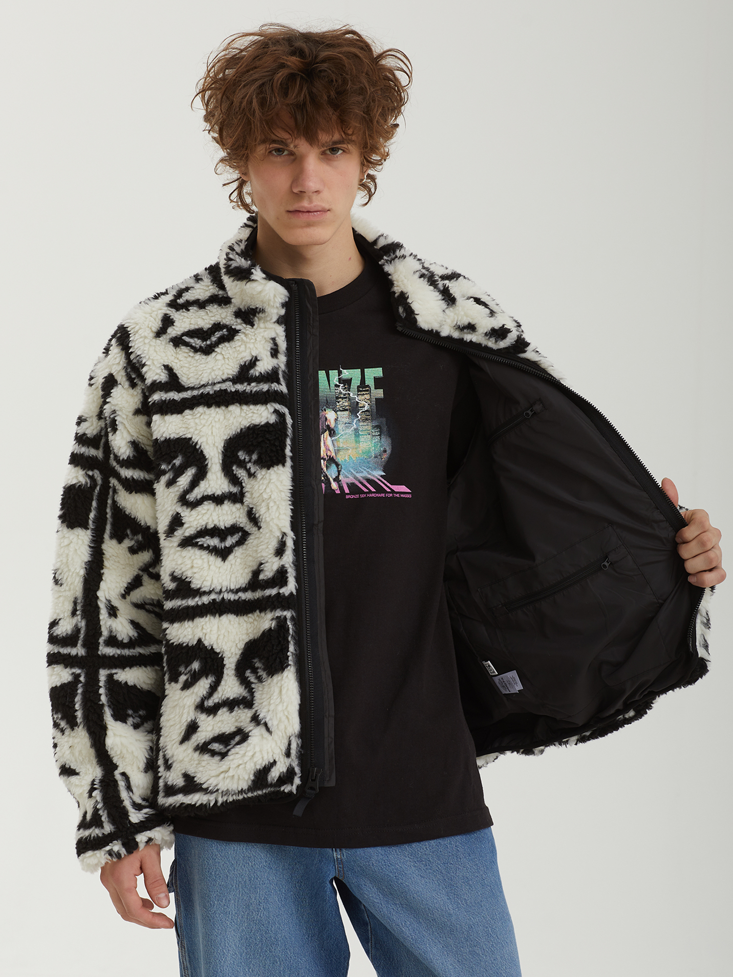 Флисовая куртка Obey из пушистого материала шерпа. Изделие дополнено орнаментом из логотипом Andre the Giant.