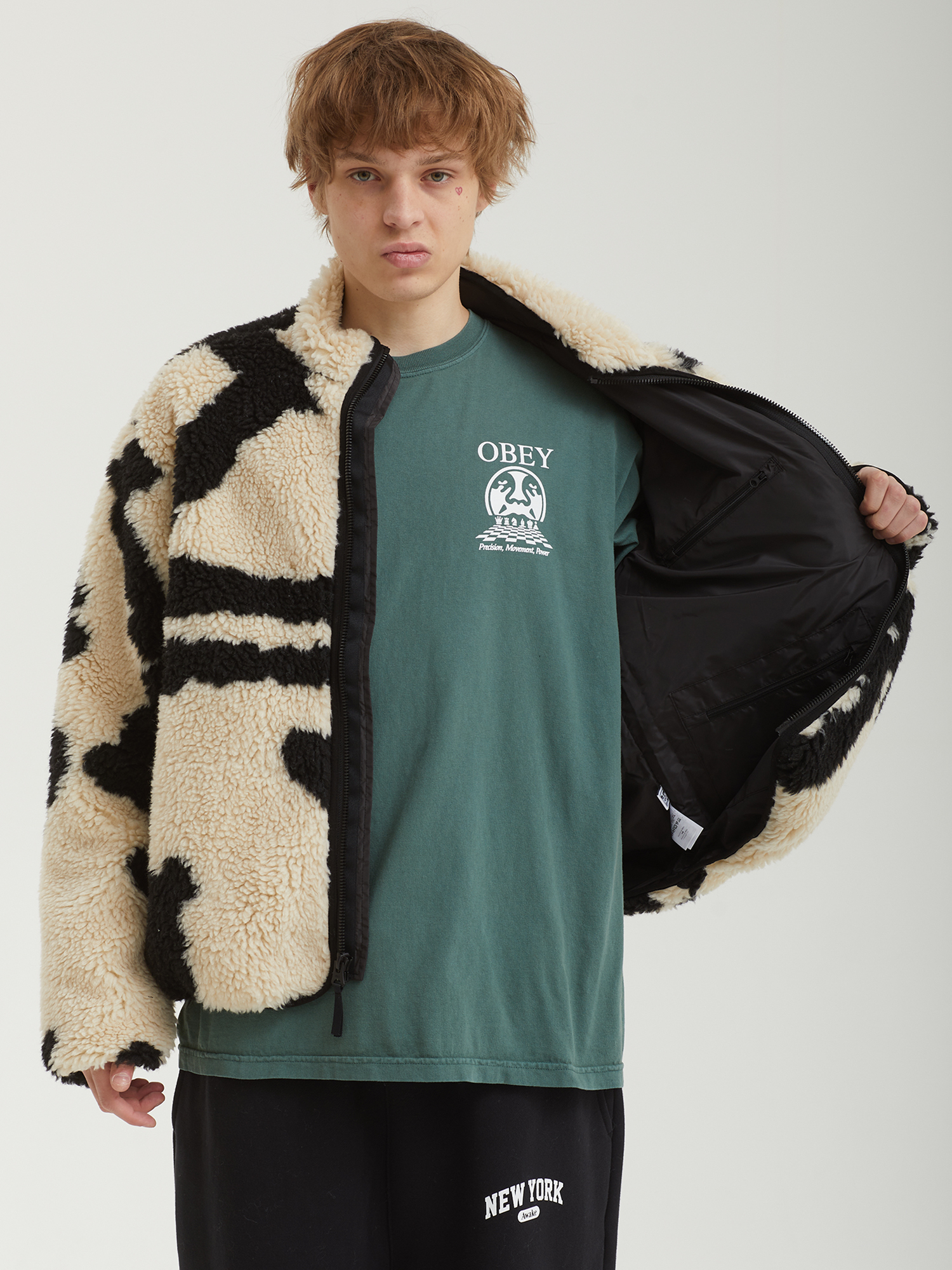 Куртка Obey Shaggy Sherpa Jacket выполнена из мягкого фактурного флиса. Модель полностью на подкладке, имеет стандартный прямой крой. Отделка из лайкры по воротнику, низу, манжетам и центральной застежке подчеркивает аккуратный силуэт.