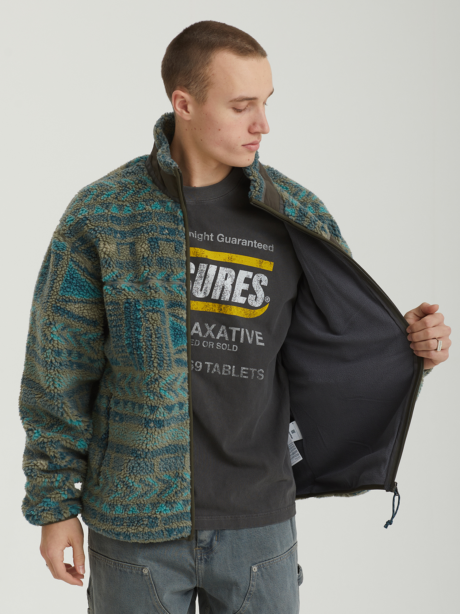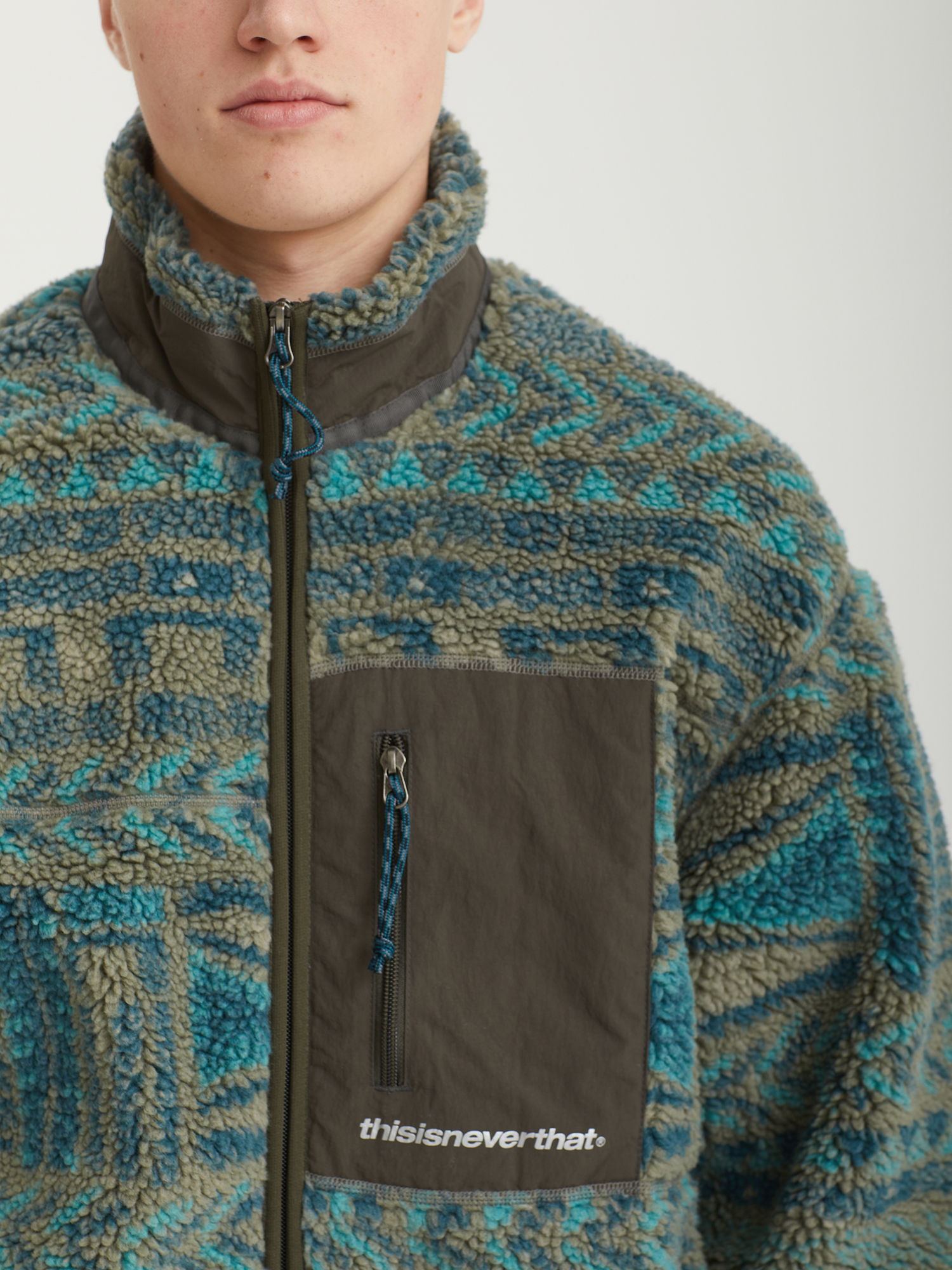 Куртка thisisneverthat выполнена из мягкого шерпа-флиса. Прямой силуэт гарантирует комфортную посадку, а полная подкладка из Thermolite обеспечивает тепло без утяжеления. Модель оснащена центральной молнией YKK, нагрудным карманом из нейлона Taslan и боковым карманом на молнии для удобного хранения мелочей. Манжеты и нижний край дополнены окантовкой. Логотипы, нанесенные на груди и у воротника сзади, завершают лаконичный дизайн.