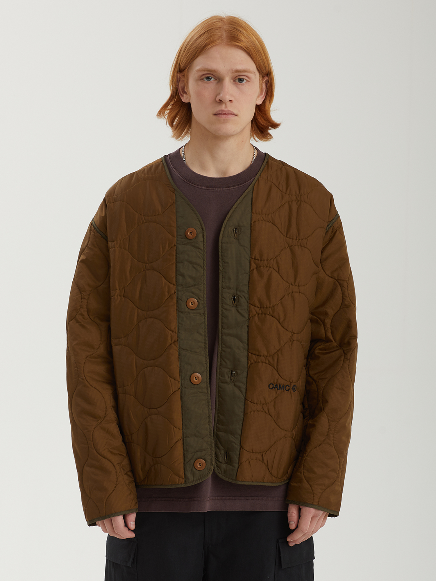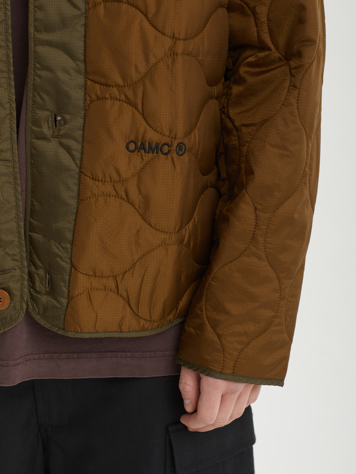 Легкая стеганая куртка, вдохновленная классическими военными лайнерами. Модель выполнена из прочного нейлонового рипстопа и окрашена в готовом виде, что придает материалу уникальный оттенок и слегка винтажный эффект. Спереди — удобная застежка на пуговицах и прорезные карманы. На спине — аккуратная фирменная вышивка.