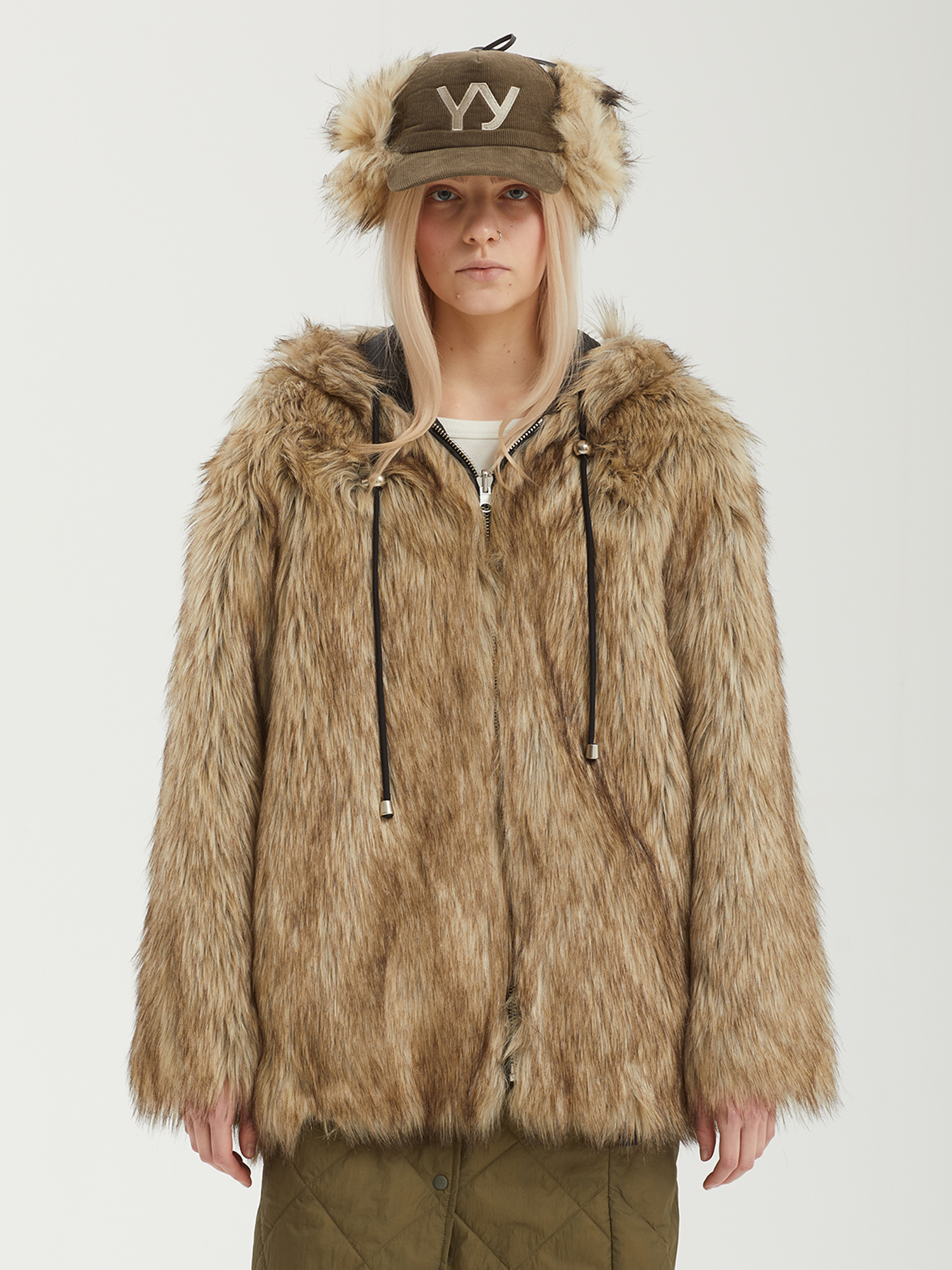Двусторонняя куртка с капюшоном из искусственного меха Open YY.