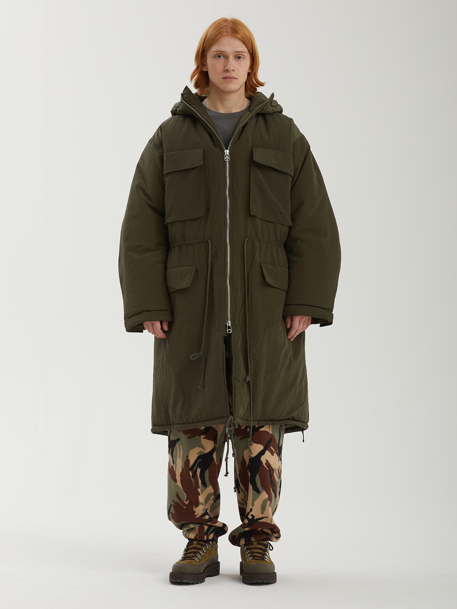 Cовременная вариация классической военной парки M65, адаптированная под городские условия. Модель выполнена из плотного водоотталкивающего нейлона и утеплена для надежной защиты в холодную погоду. Спереди — четыре функциональных кармана, двусторонняя молния и регулируемые стяжки на талии и по нижнему краю, позволяющие настроить посадку. Объемный капюшон с высоким воротником отвечает за комфорт и дополнительную защиту от ветра.