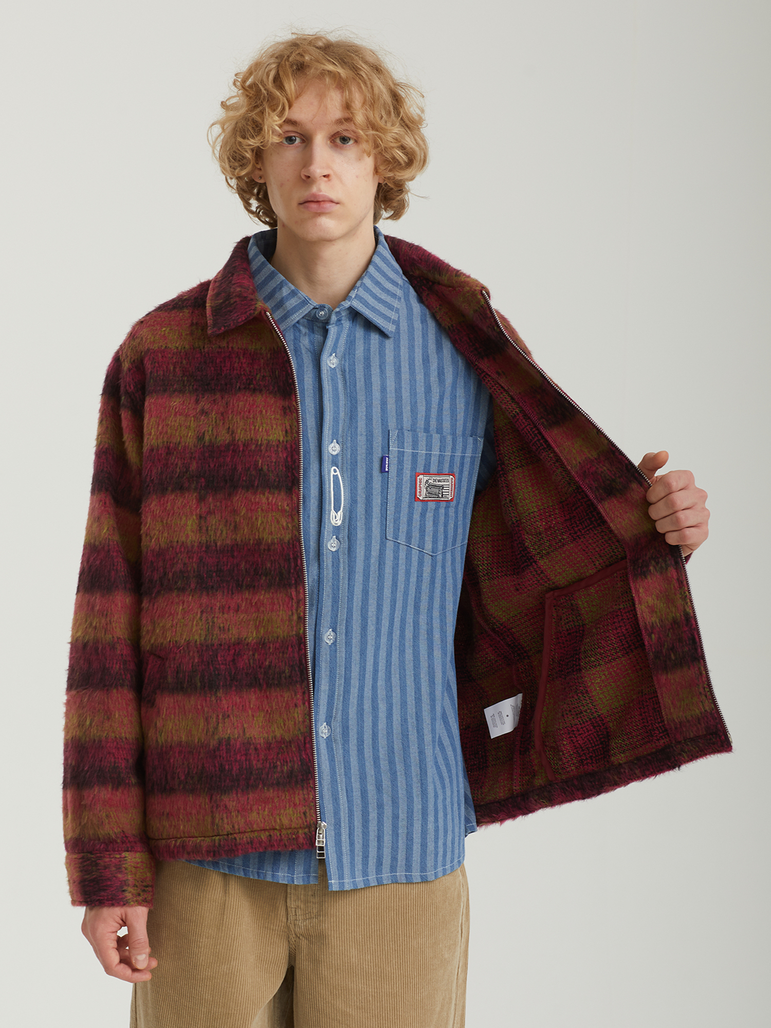 Куртка-рубашка с клетчатым рисунком Huf из плотного пушистого материала.