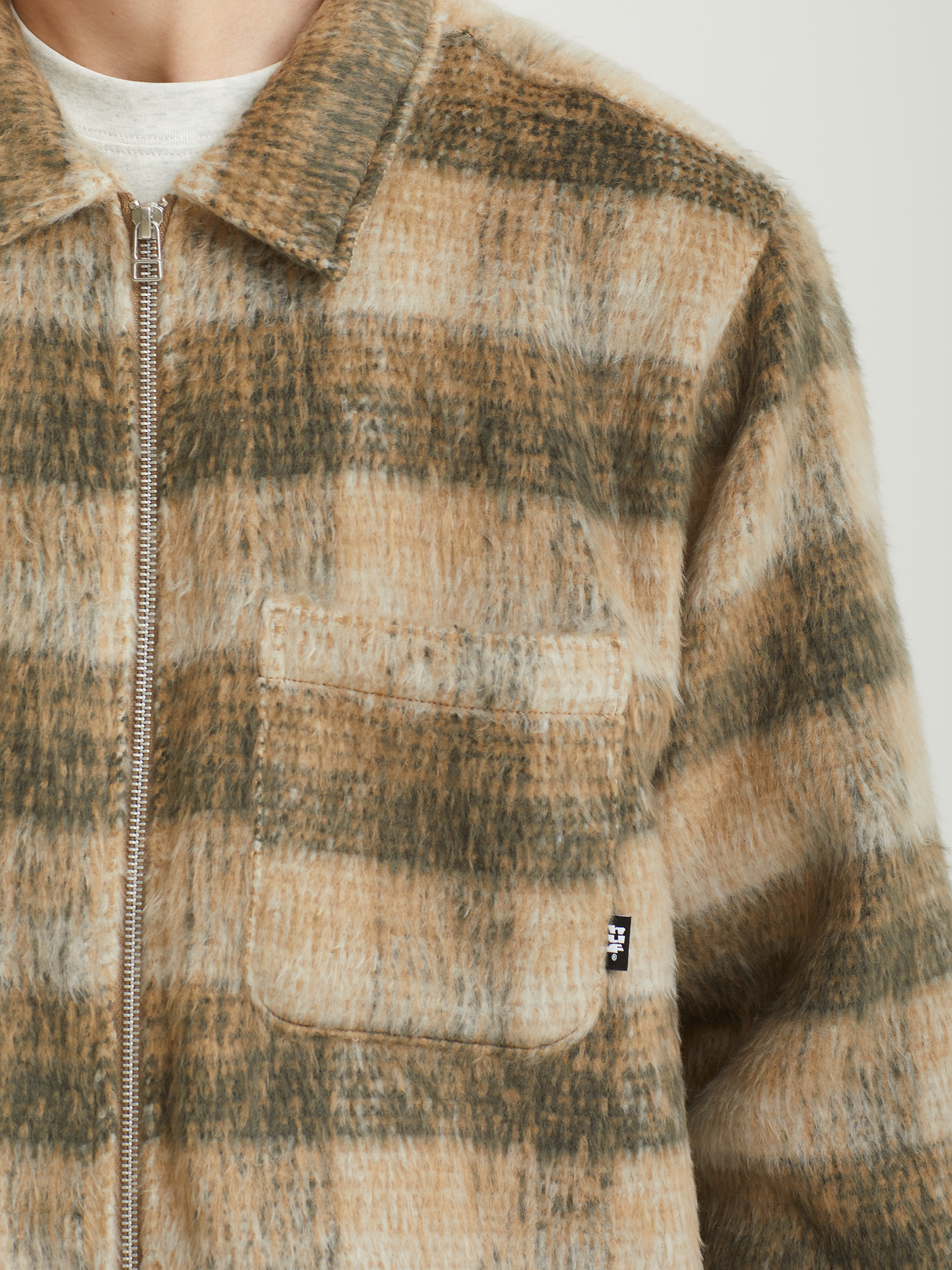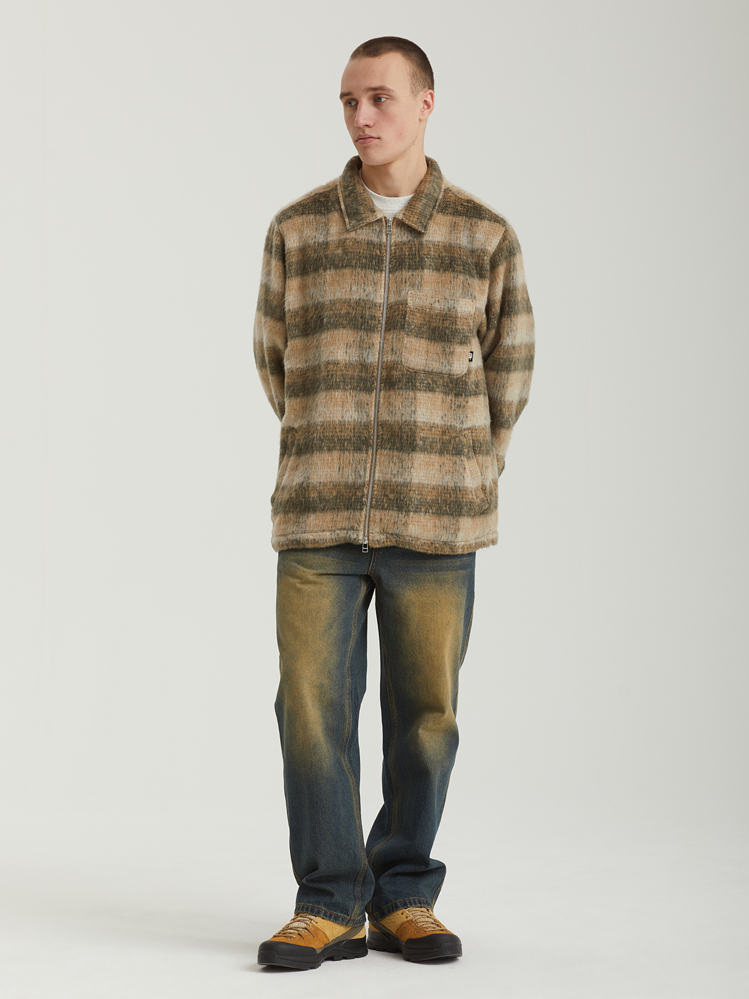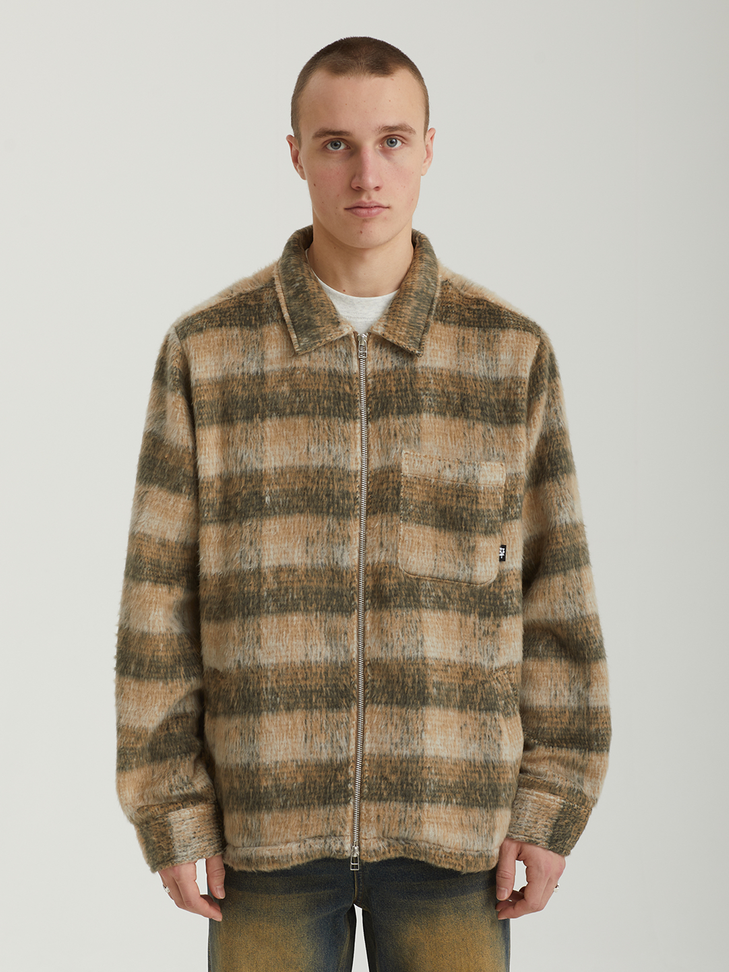 Куртка-рубашка с клетчатым рисунком Huf из плотного пушистого материала.