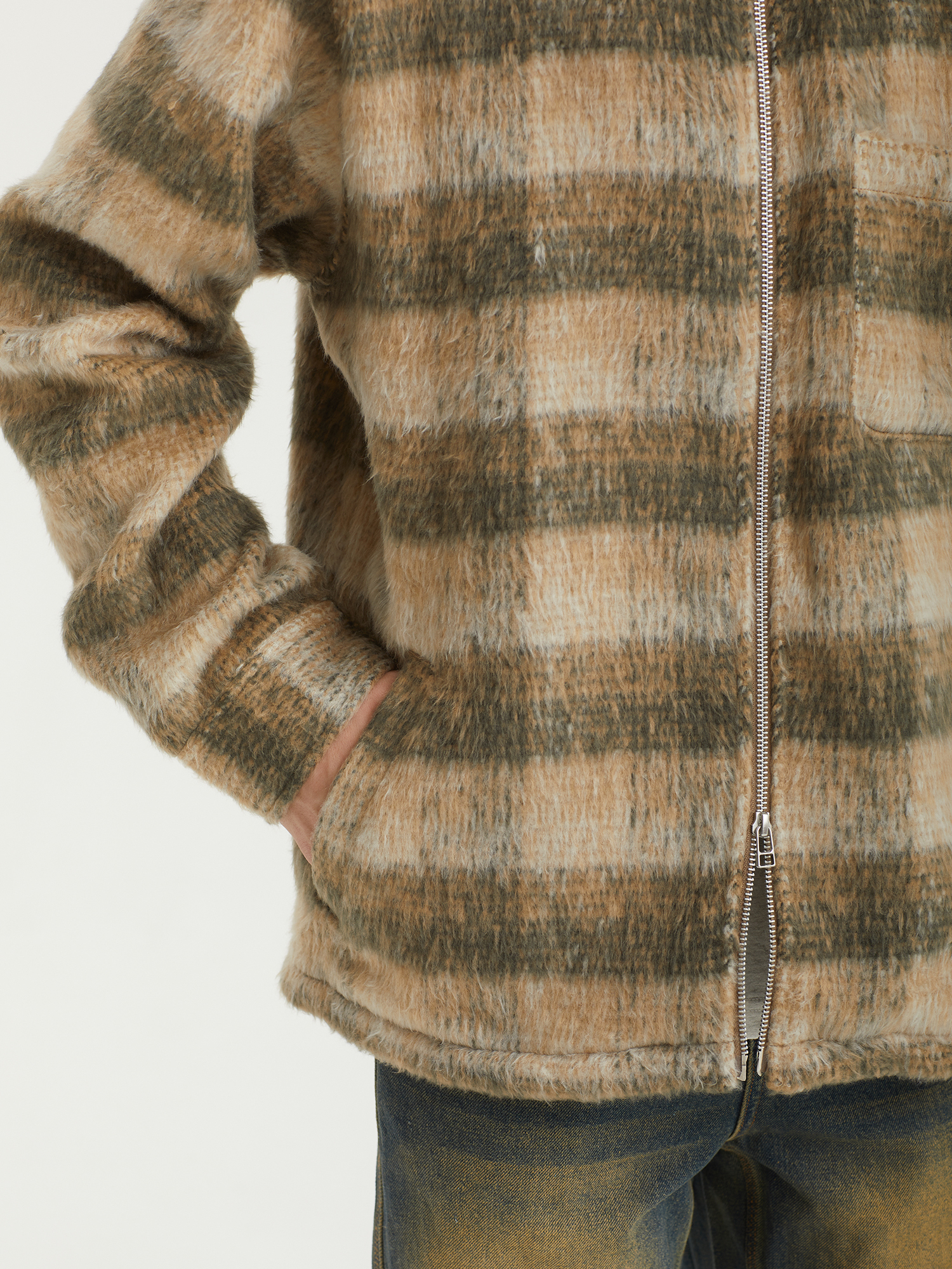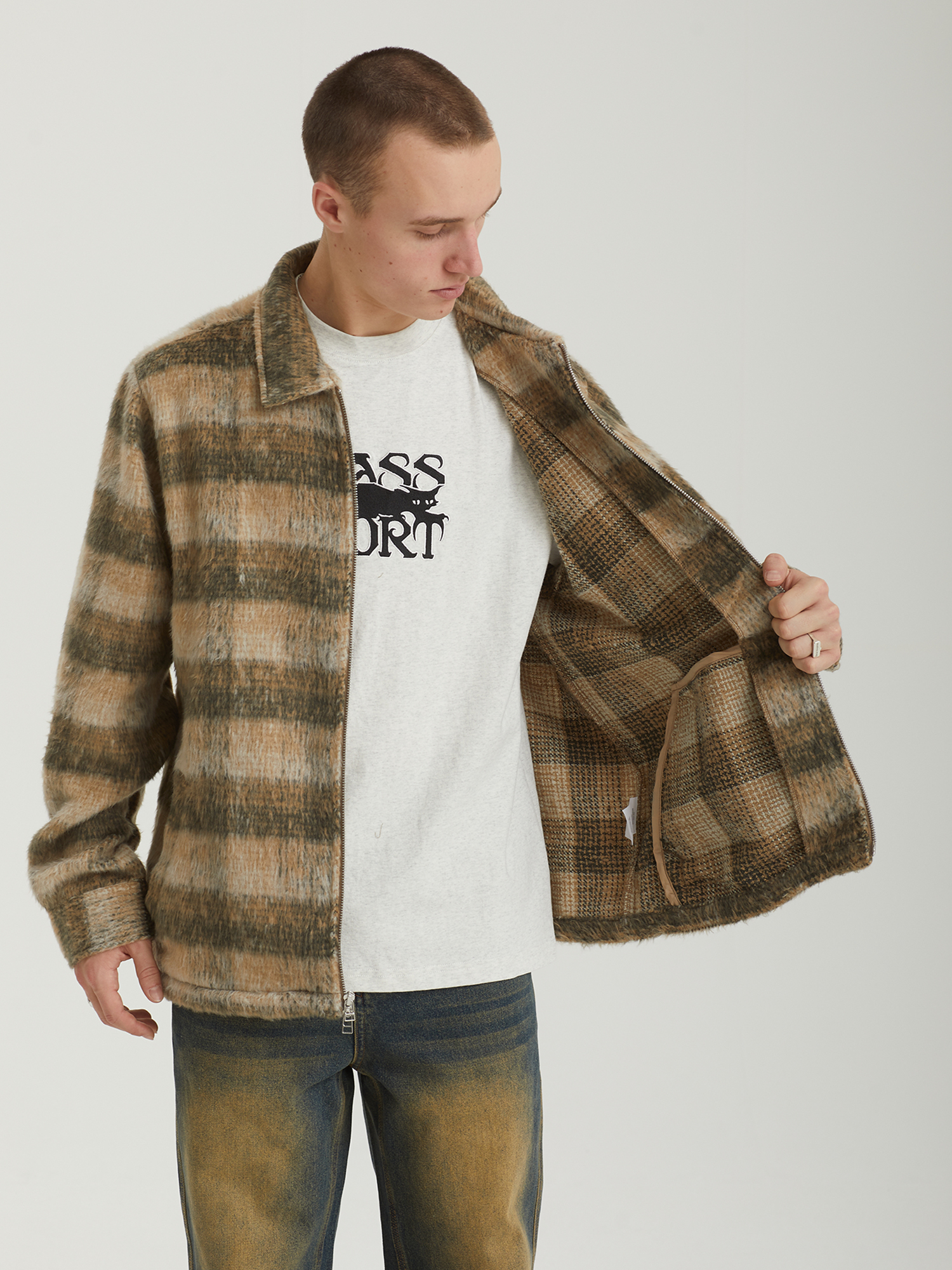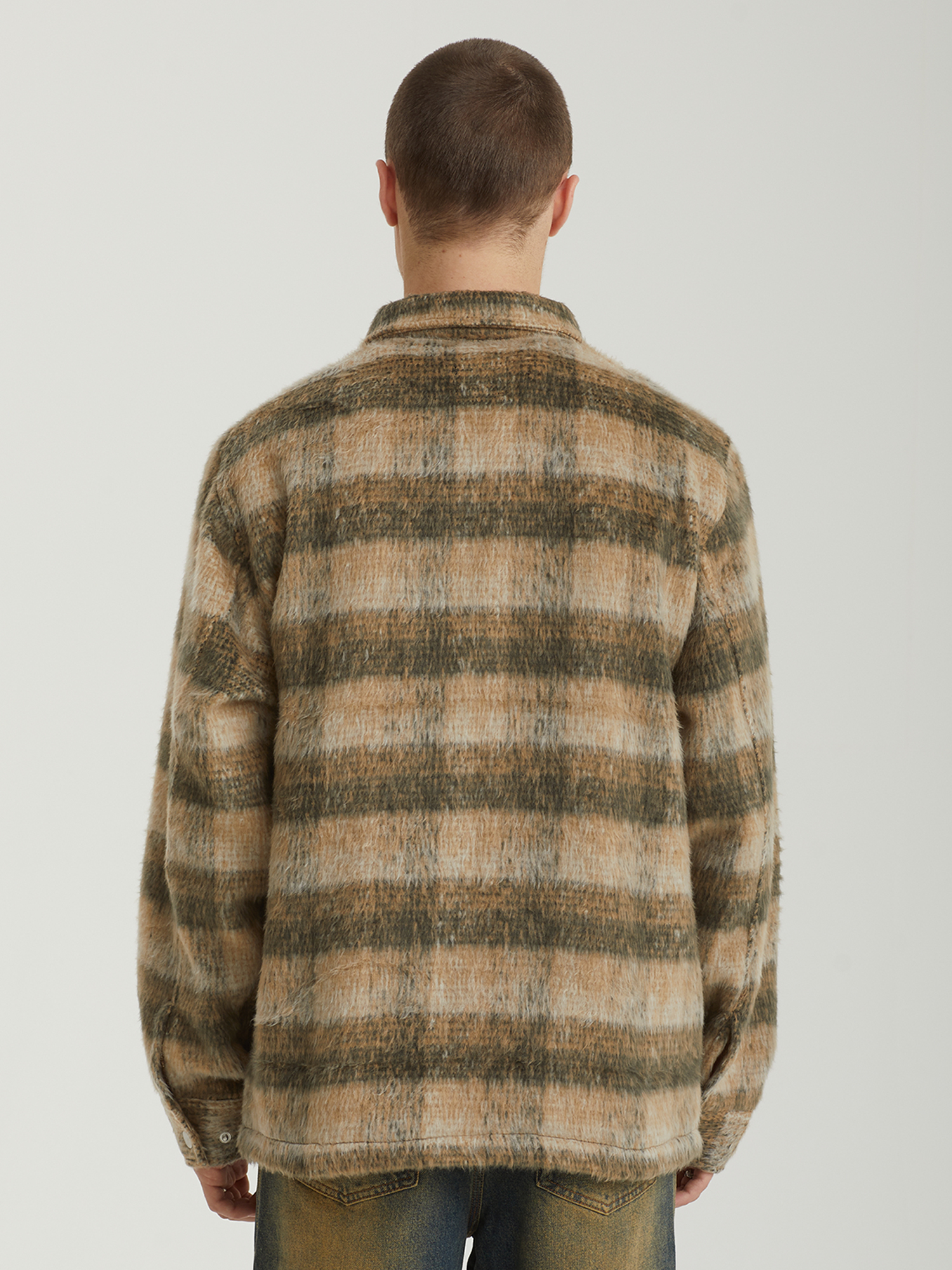 Куртка-рубашка с клетчатым рисунком Huf из плотного пушистого материала.