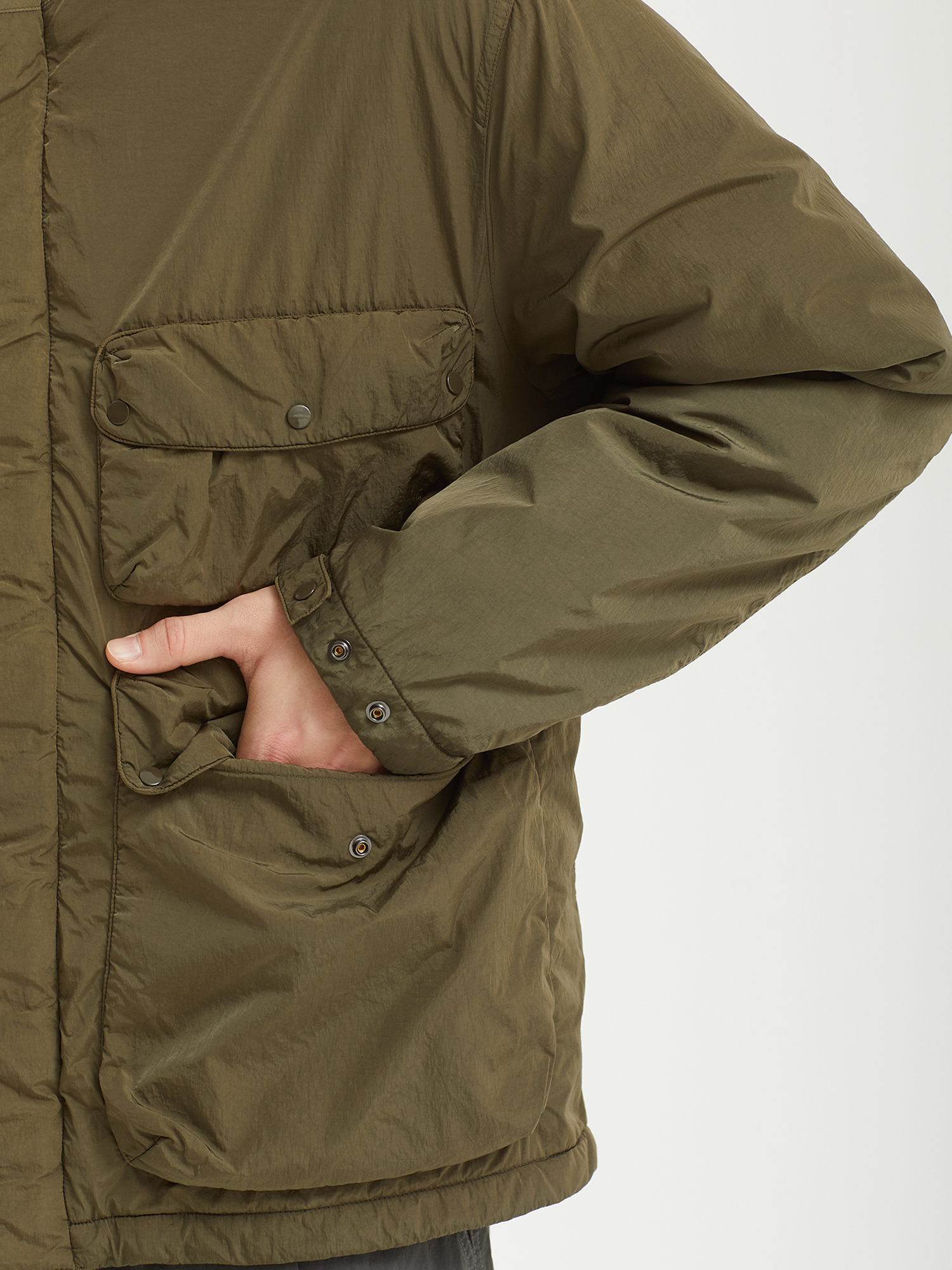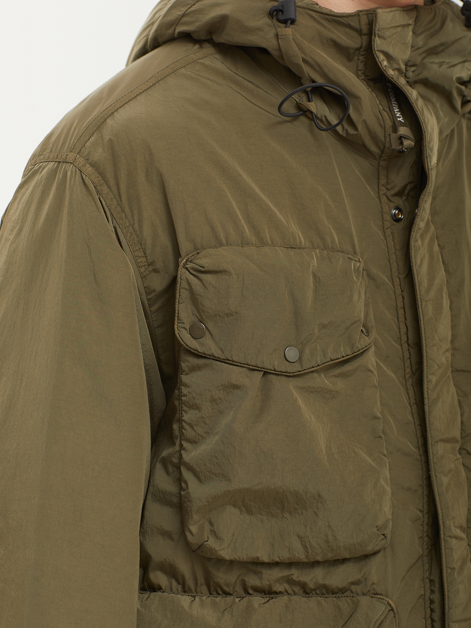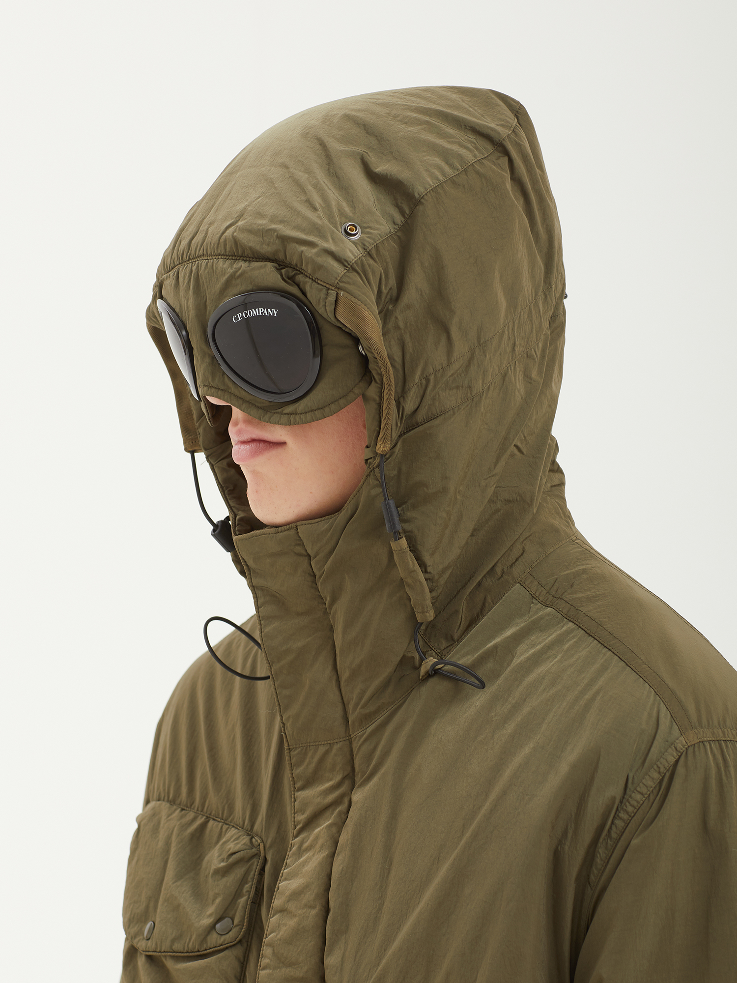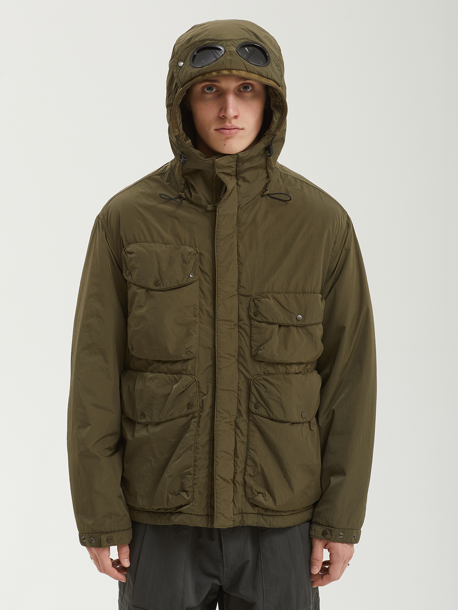 Рубашка C.P. Company с верхом из патентованного многоволоконного нейлона Chrome R, стеганая подкладка с утеплителем. Материал обладает высокими водоотталкивающими и защитными свойствами, дизайн в милитари-эстетике.