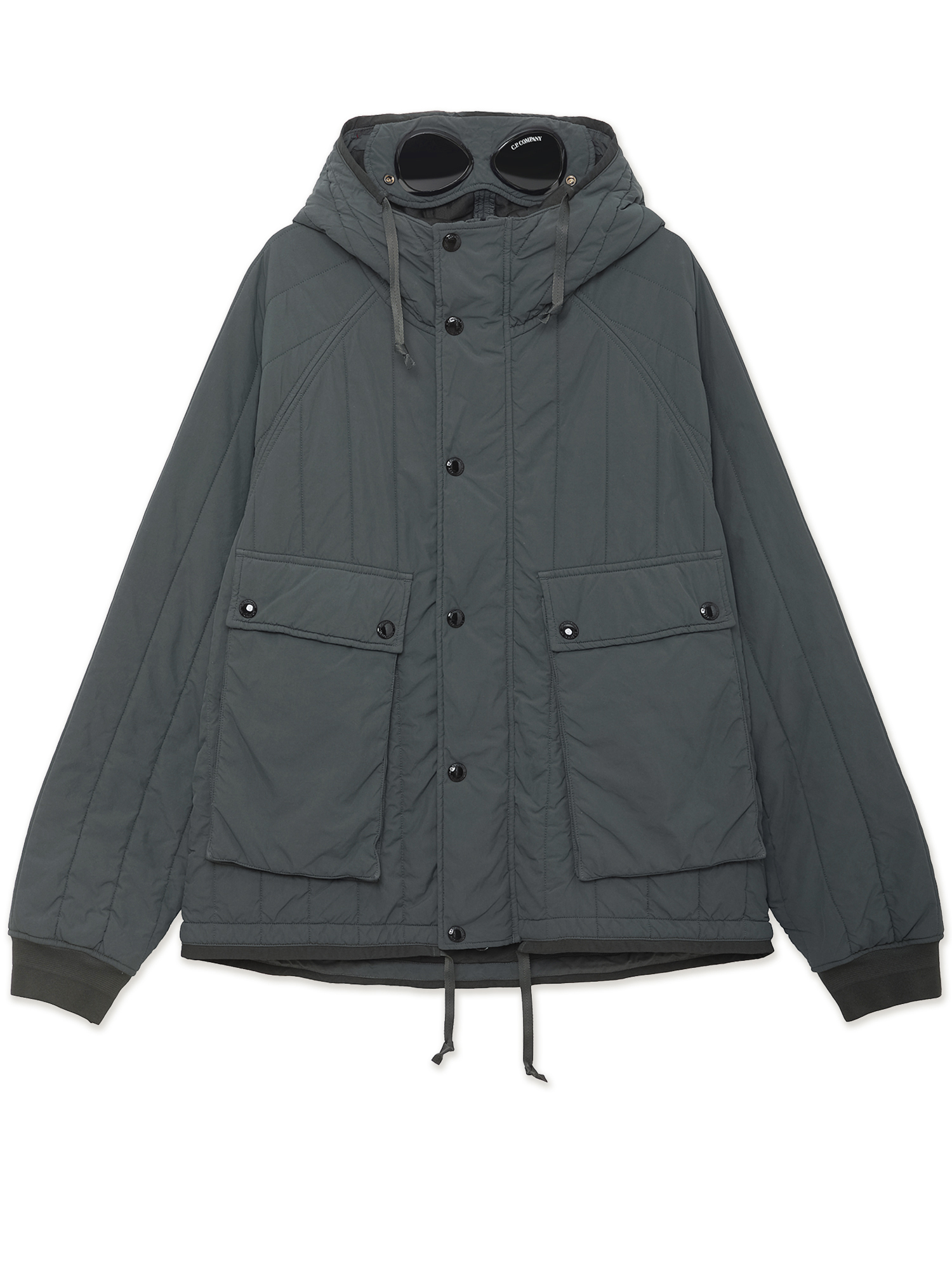 Стеганая куртка с капюшоном C.P. Company с верхом из прочного материала. Дизайн в милитари-эстетике, изделие дополнено утилитарными карманами.