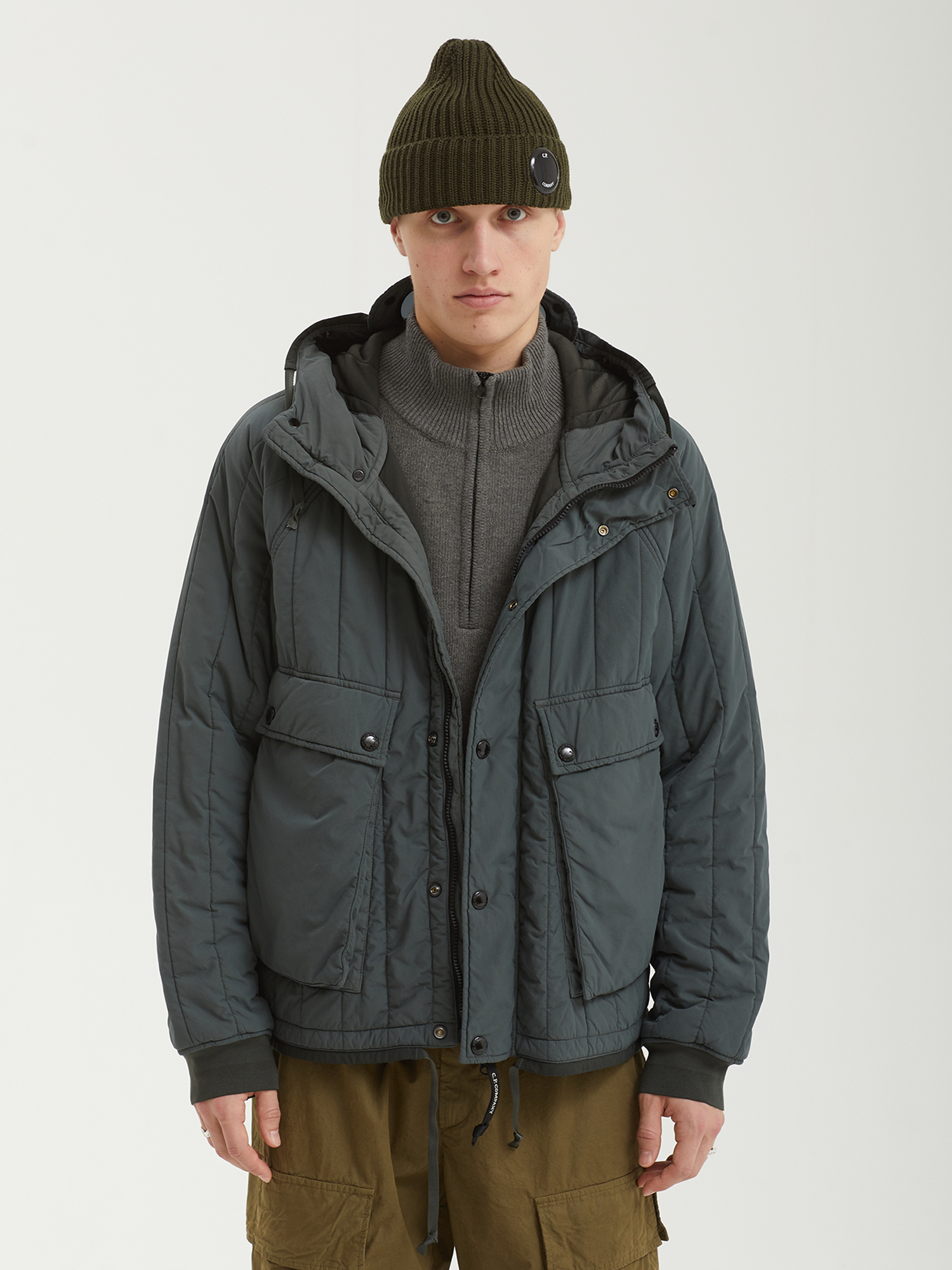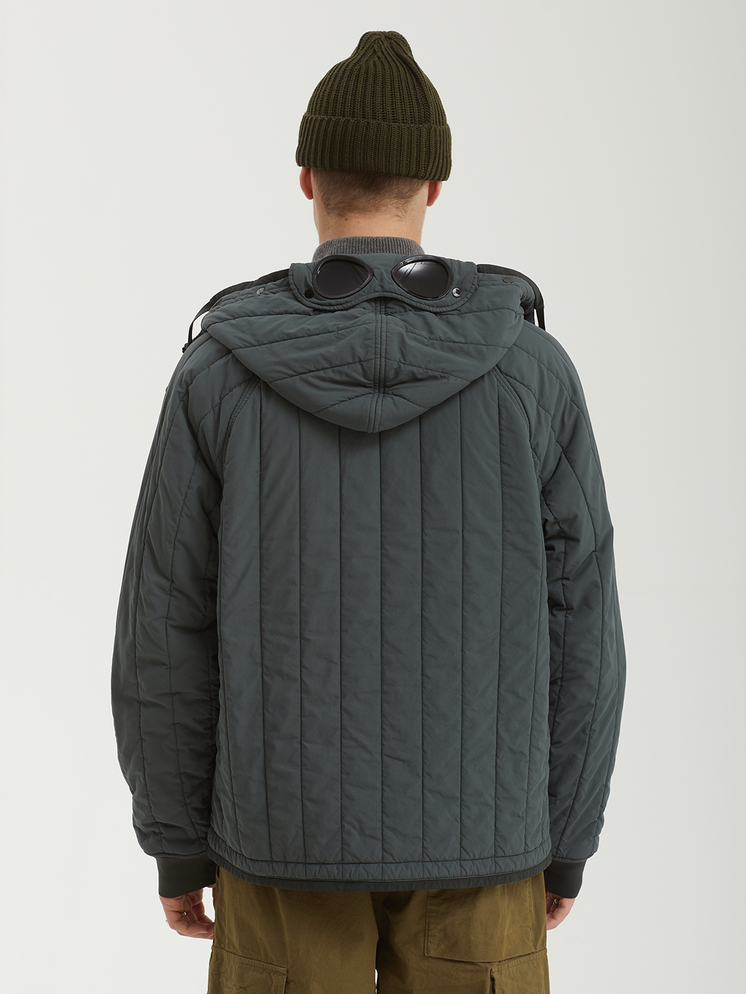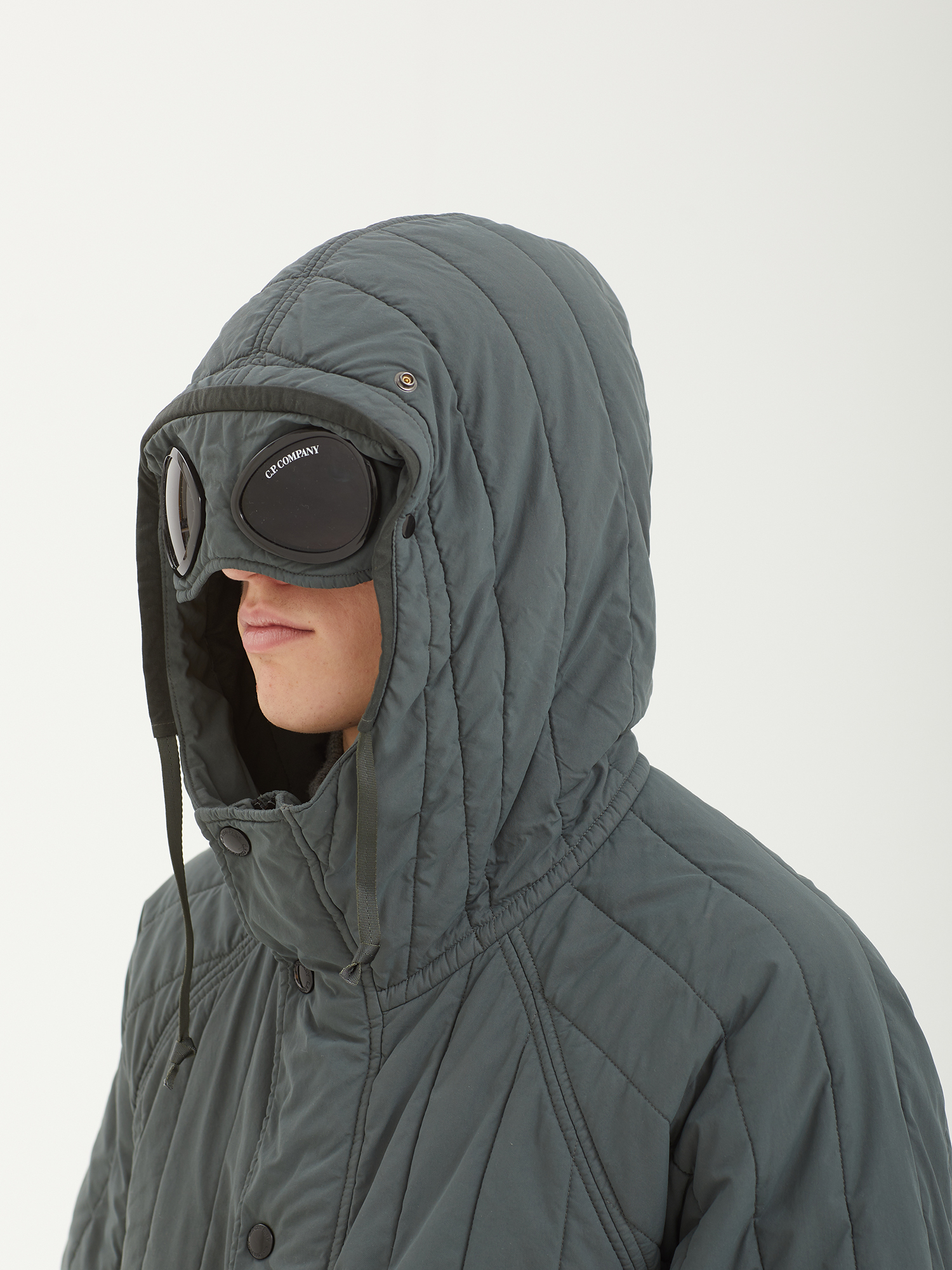 Стеганая куртка с капюшоном C.P. Company с верхом из прочного материала. Дизайн в милитари-эстетике, изделие дополнено утилитарными карманами.
