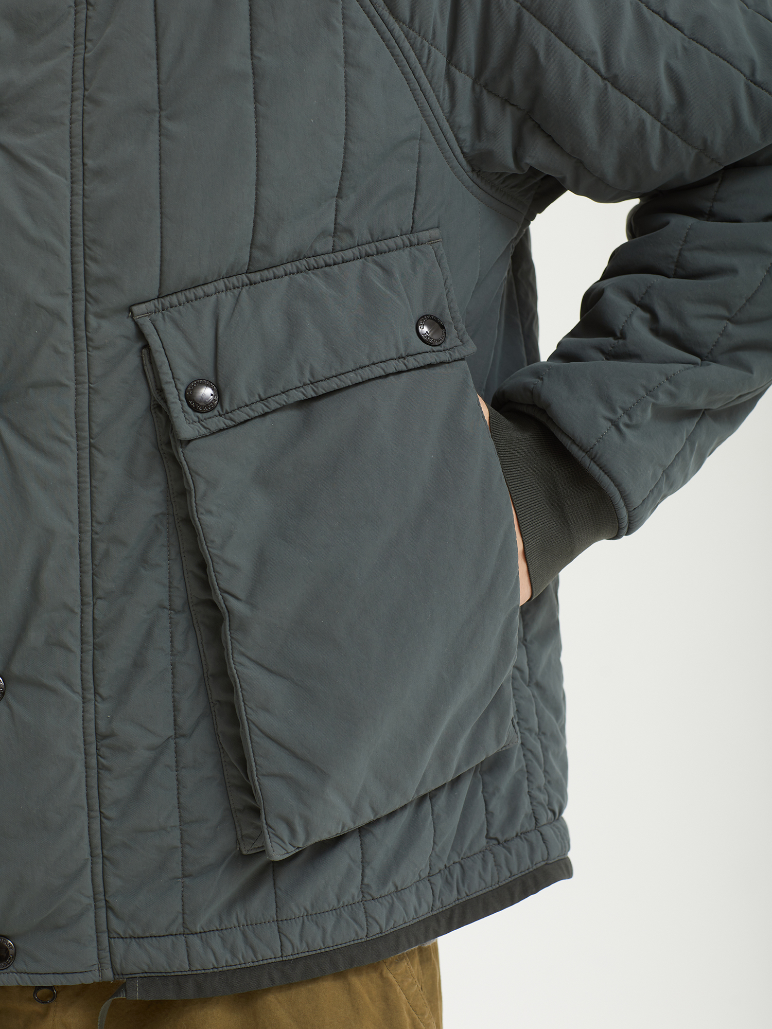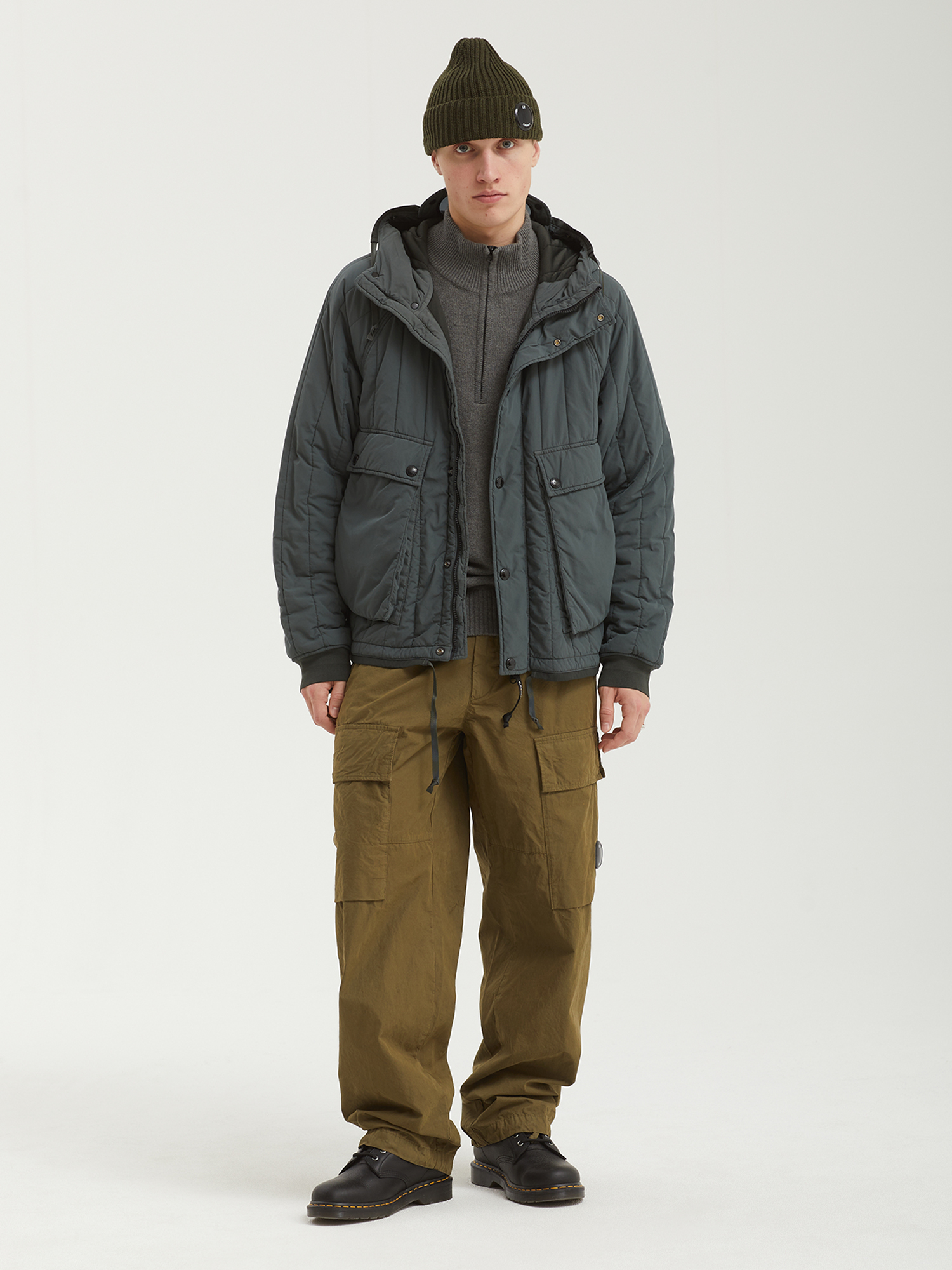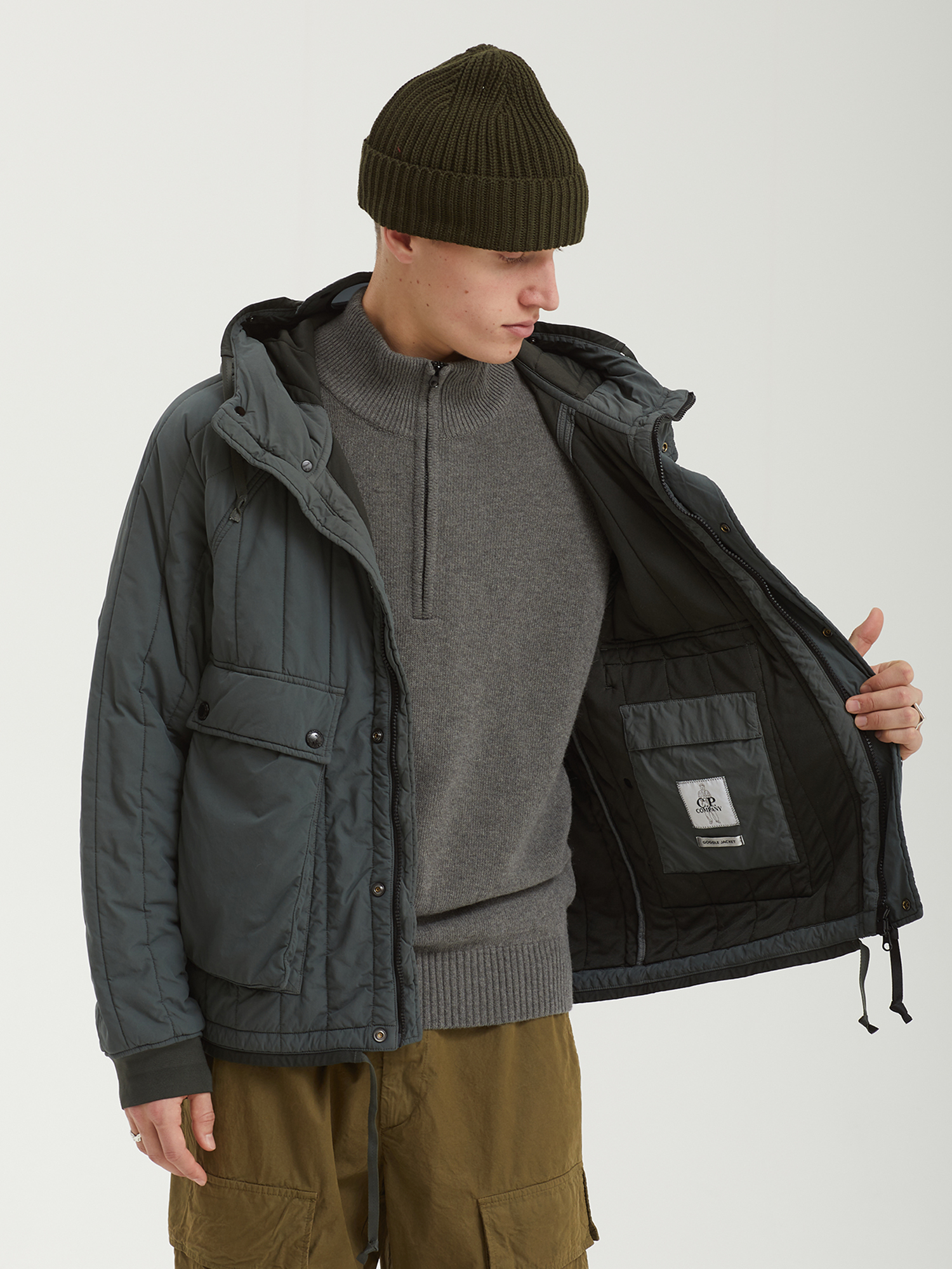 Стеганая куртка с капюшоном C.P. Company с верхом из прочного материала. Дизайн в милитари-эстетике, изделие дополнено утилитарными карманами.