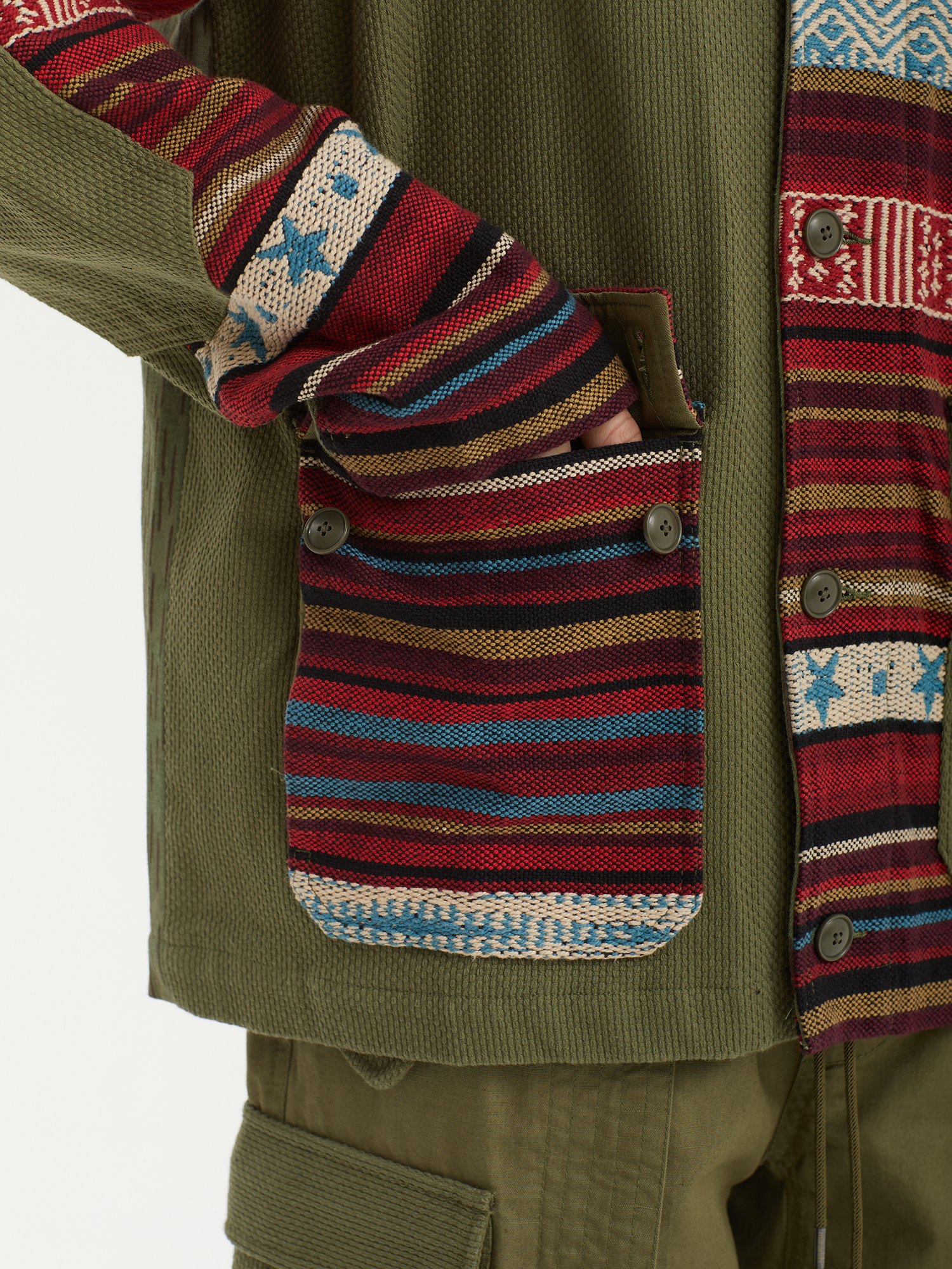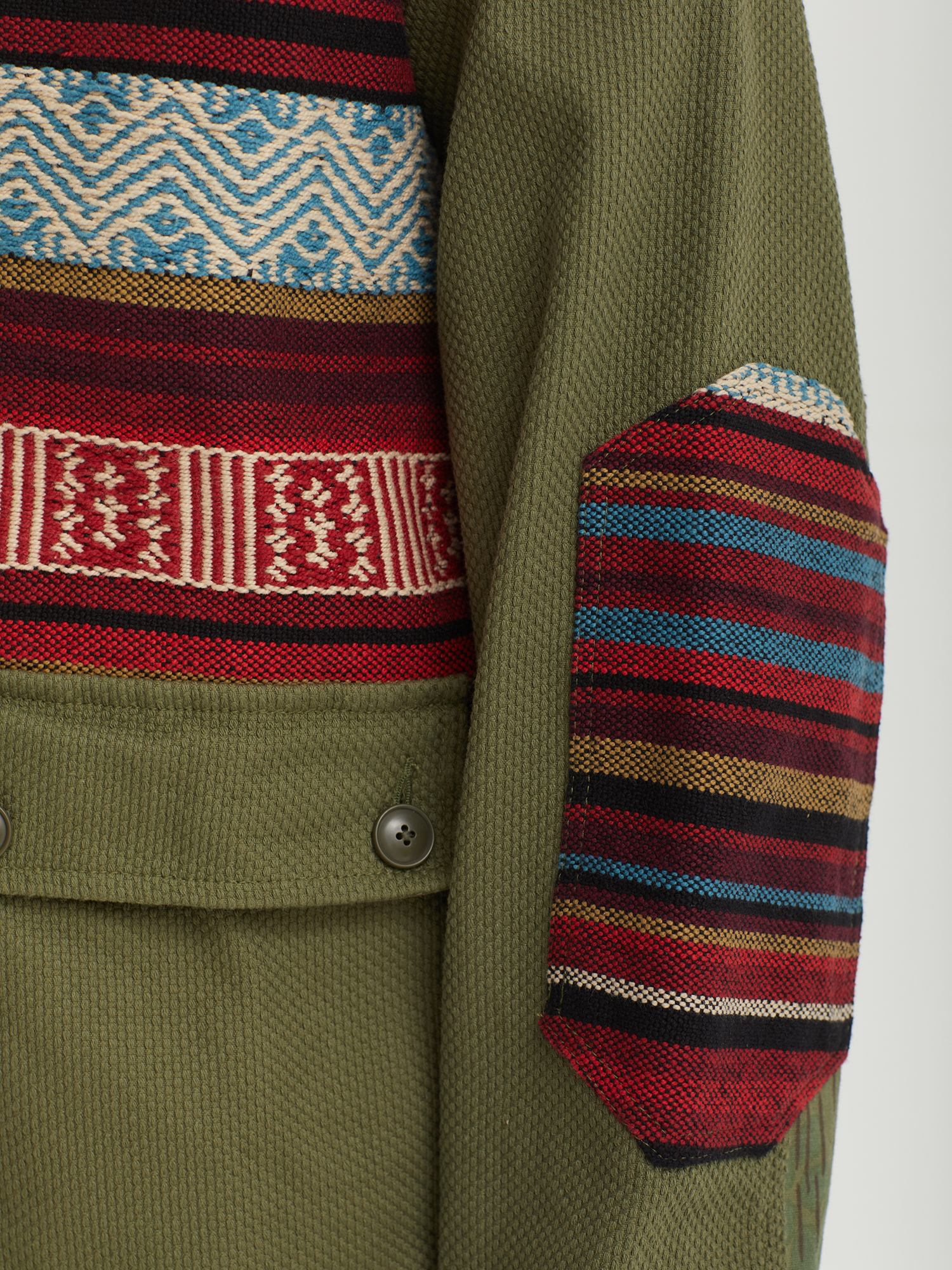 Куртка Maharishi с дизайном в стиле пэтч-ворк. Для создания изделия использованы переработанные военные куртки и полотна с узорами в технике килим.