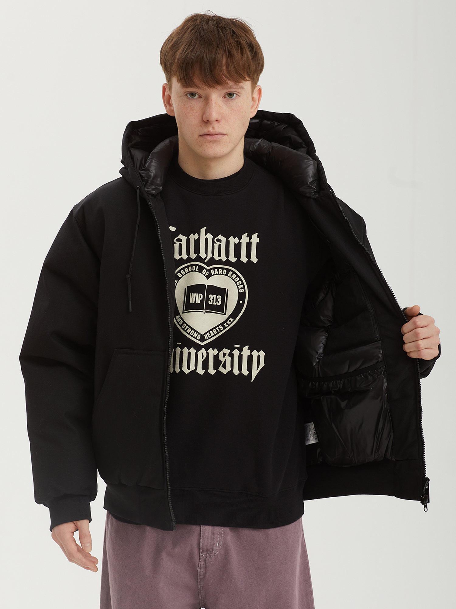 Куртка с капюшоном Carhartt WIP с верхом из нейлонового материала Cordura. Ткань обладает высокими износостойкими и водоотталкивающими свойствами.