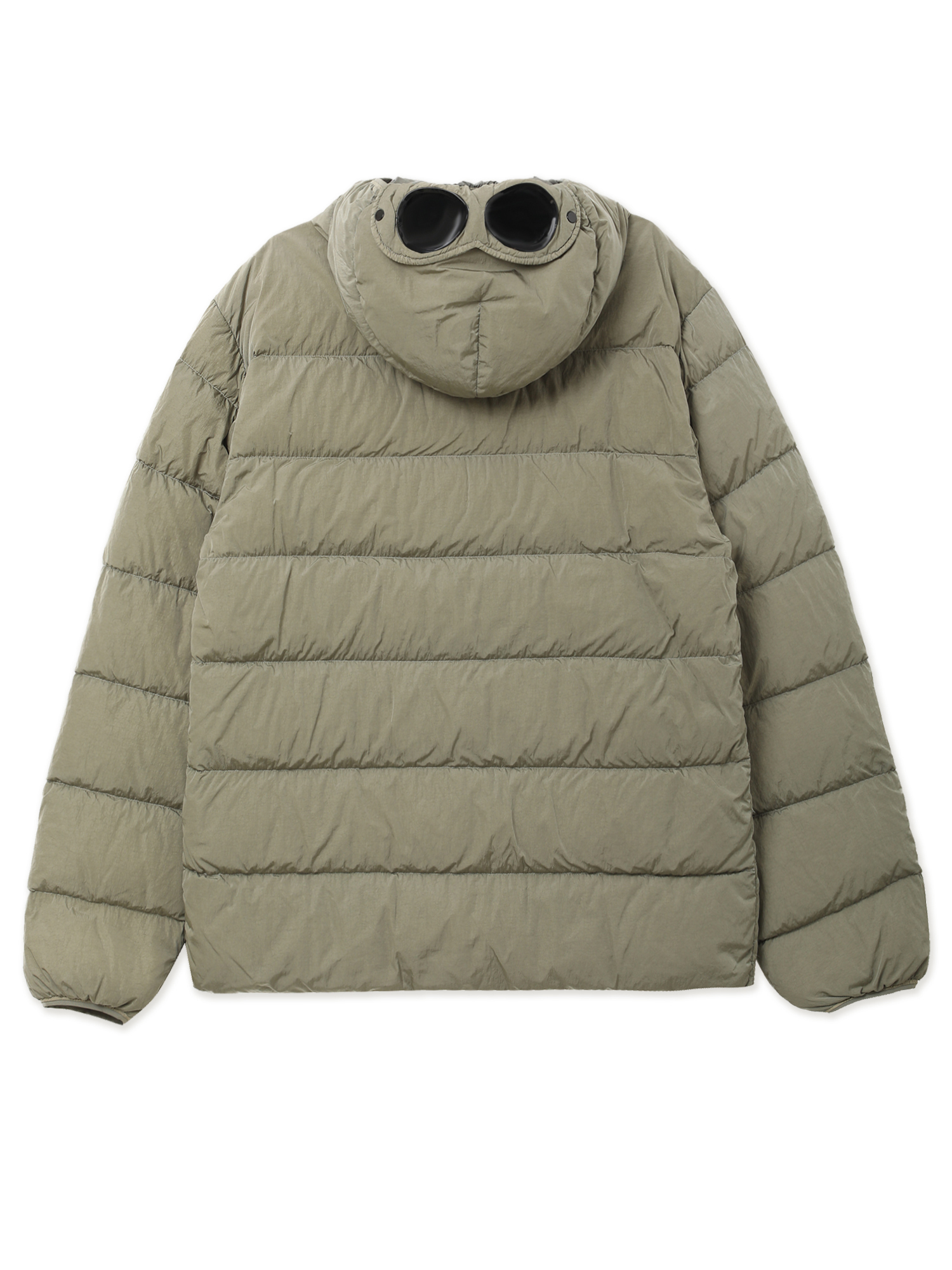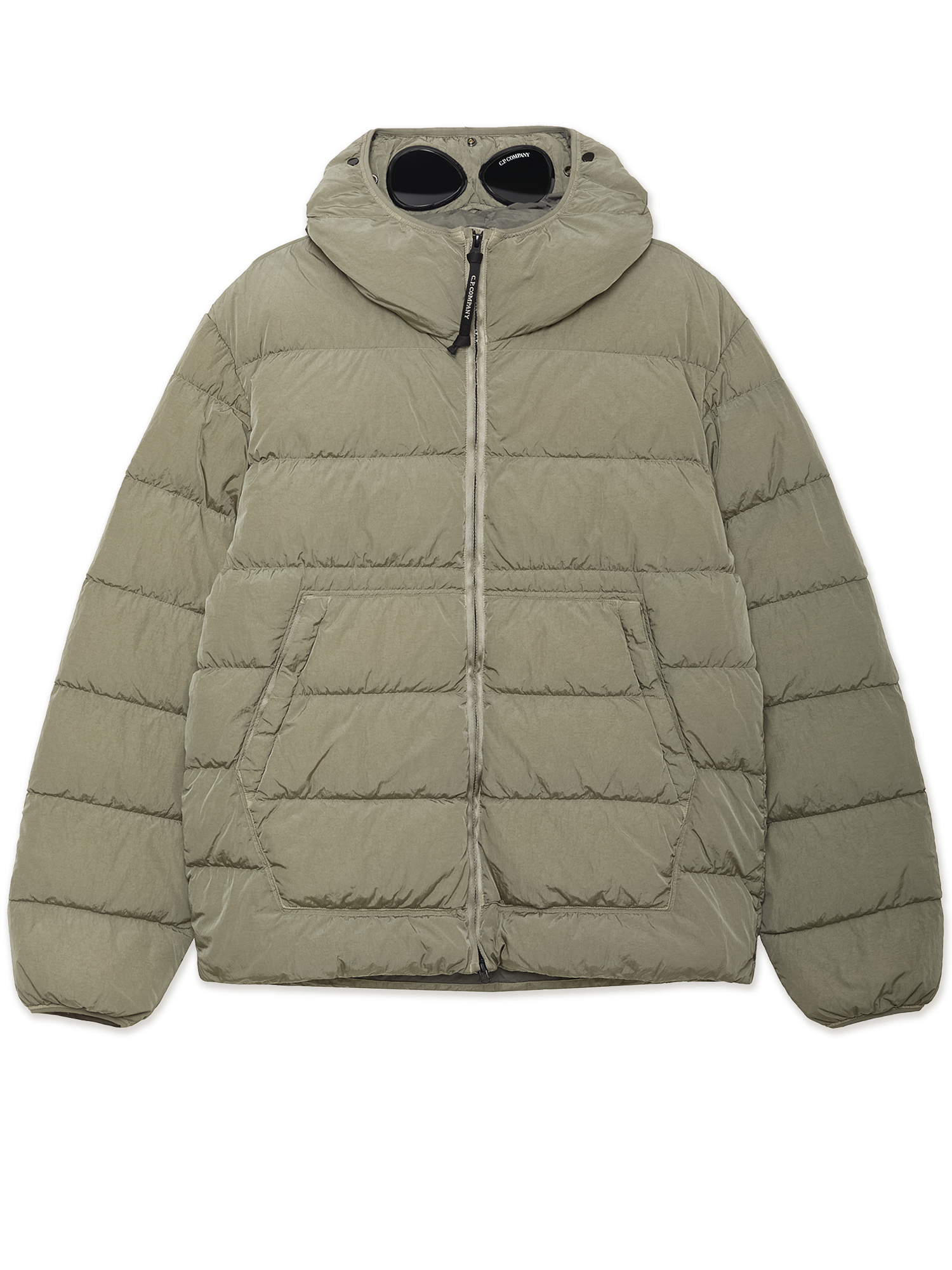 Утепленная куртка с капюшоном C.P. Company с верхом из патентованного многоволоконного нейлона Chrome R с натуральным наполнителем из пуха и пера. Материал верха обладает высокими водоотталкивающими и защитными свойствами.
