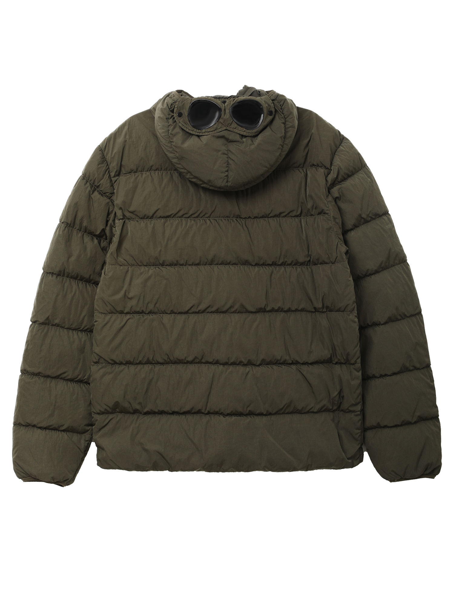 Утепленная куртка с капюшоном C.P. Company с верхом из патентованного многоволоконного нейлона Chrome R с натуральным наполнителем из пуха и пера. Материал верха обладает высокими водоотталкивающими и защитными свойствами.