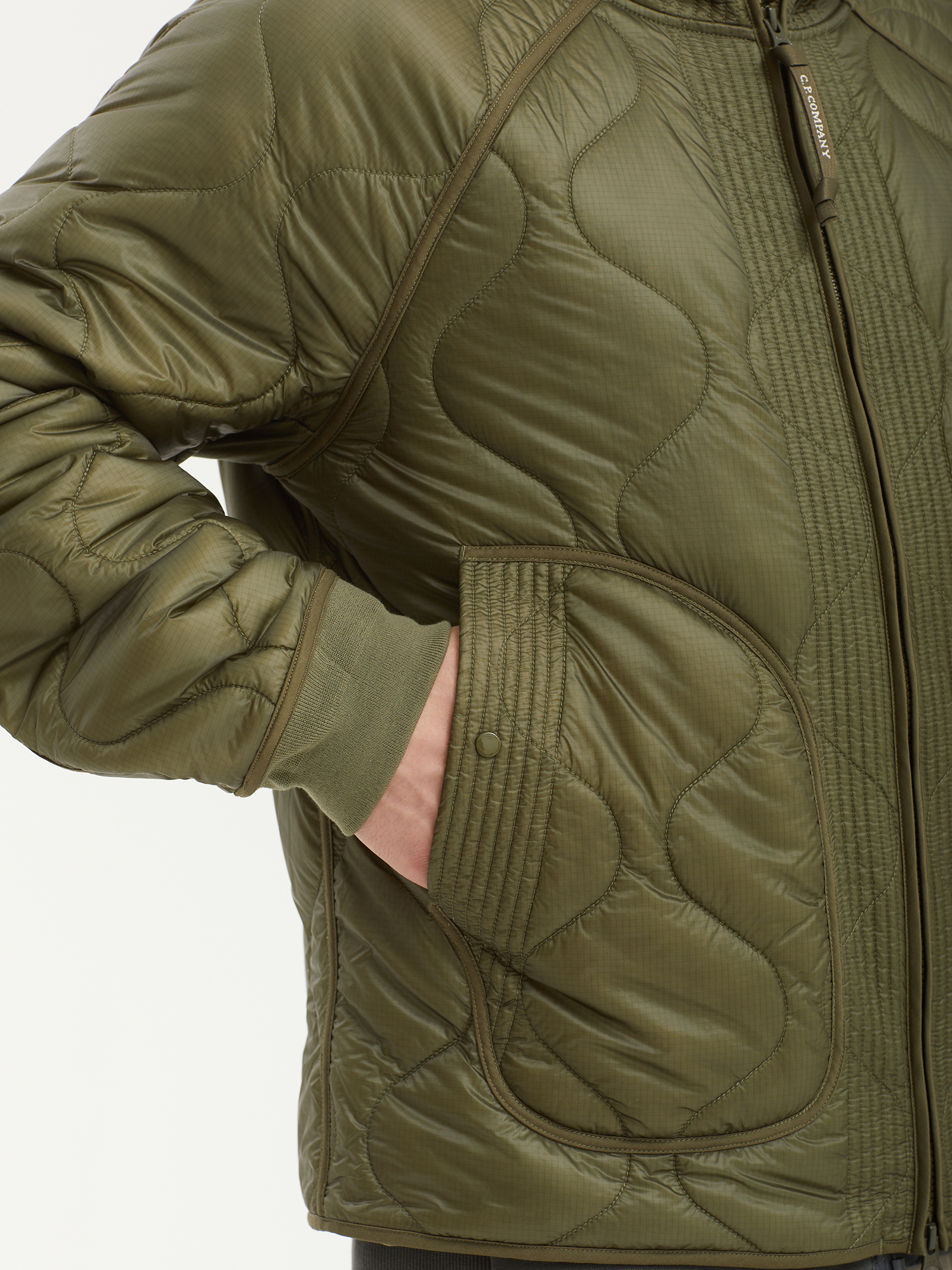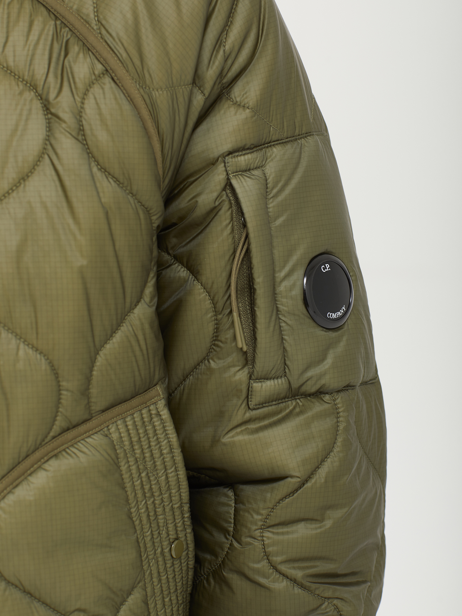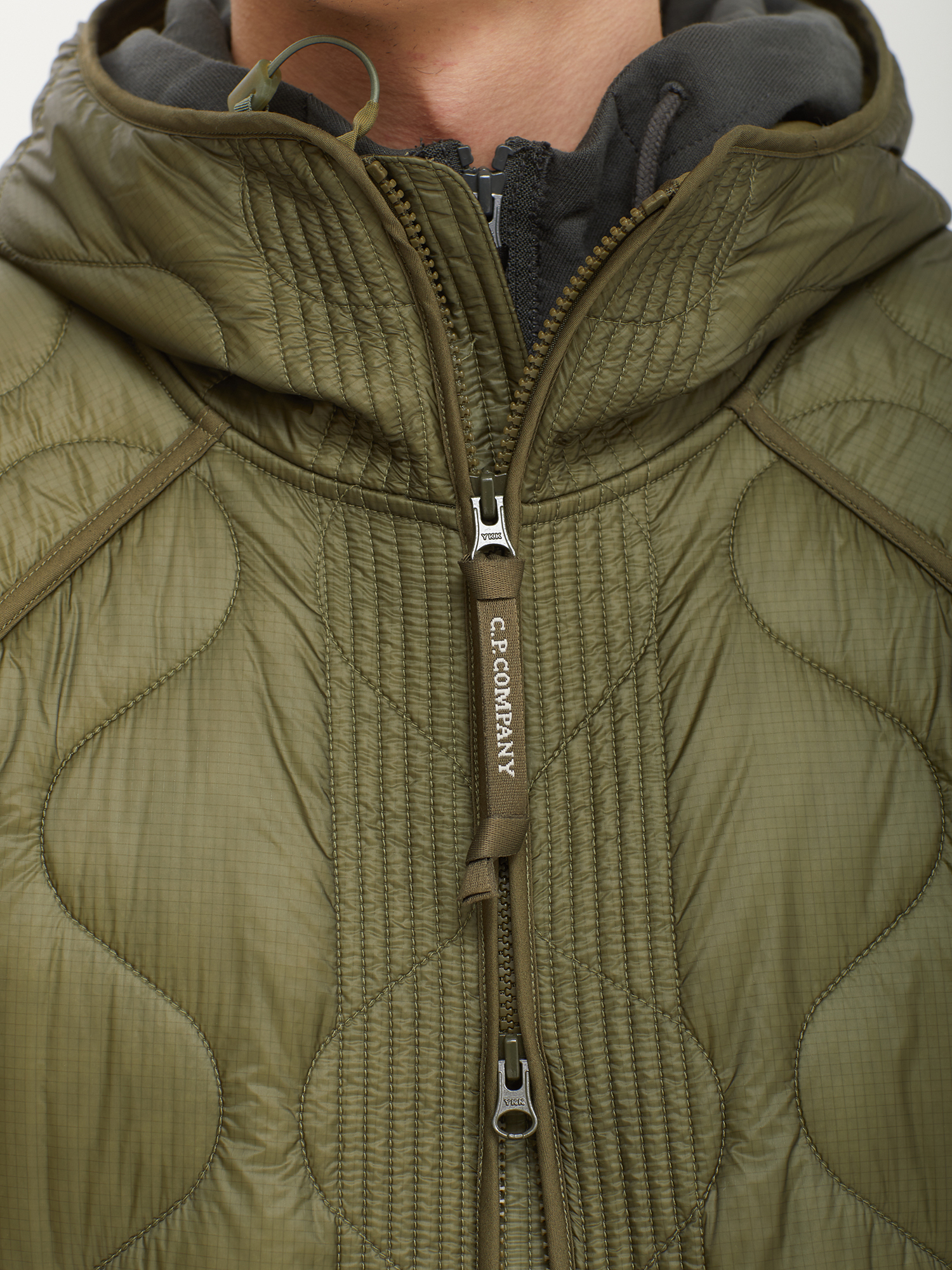 Стеганая куртка-лайнер C.P. Company с верхом из нейлонового микро-рипстопа D.D. Shell, обладающего высокой устойчивостью к разрывам. Наполнитель из натурального пуха и пера.