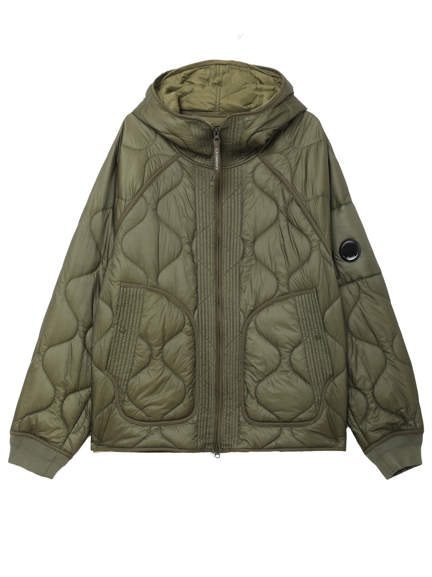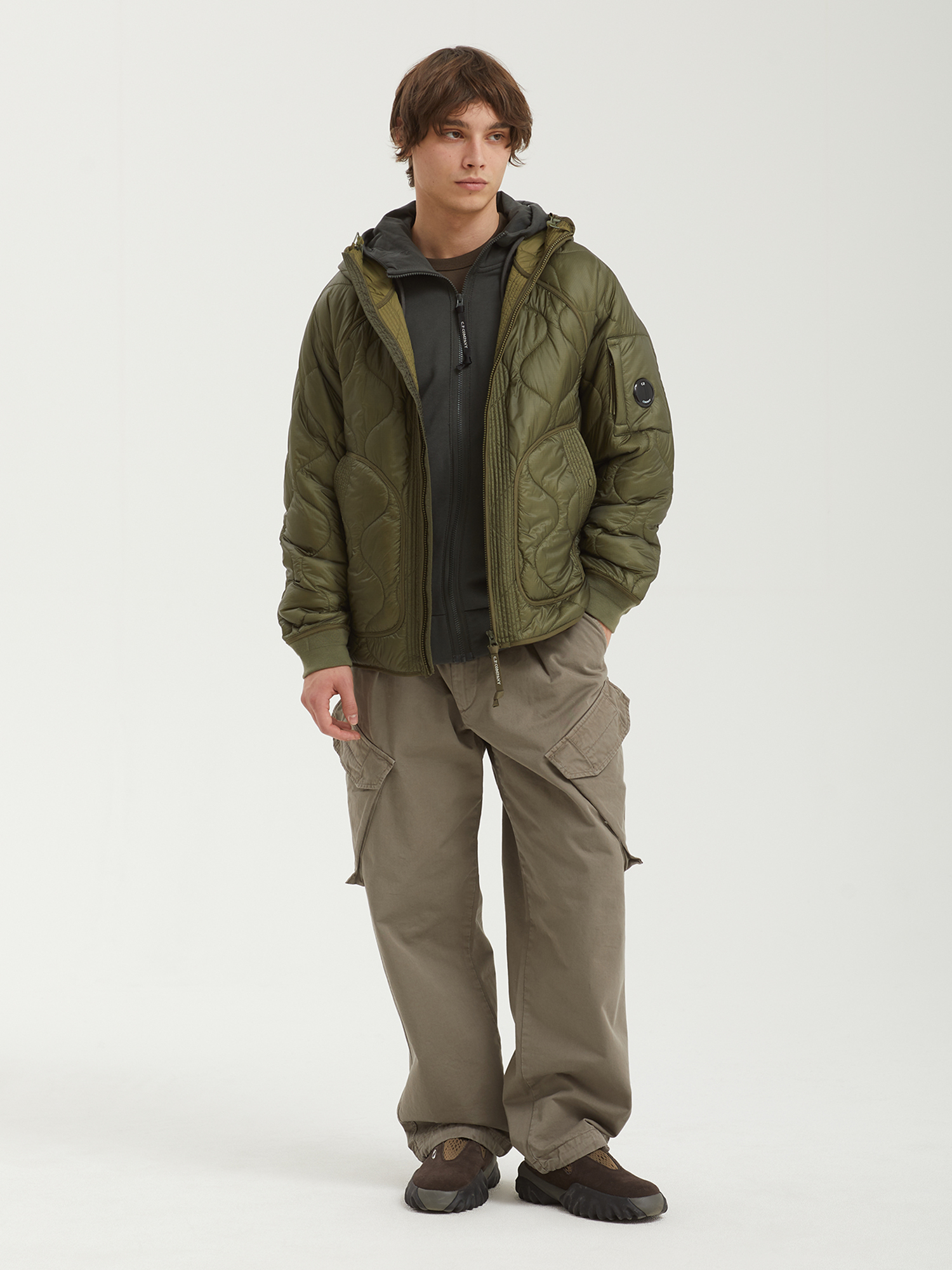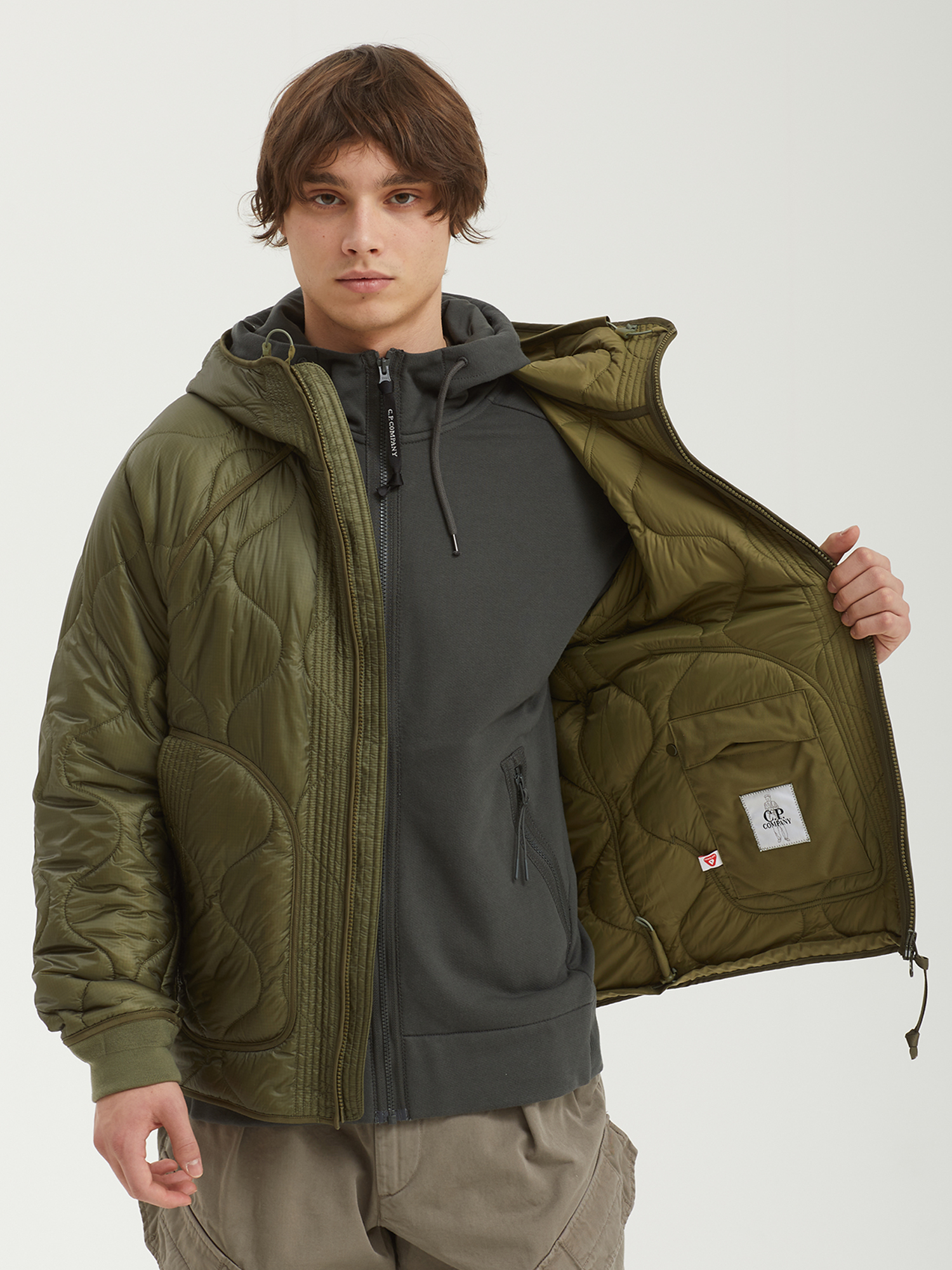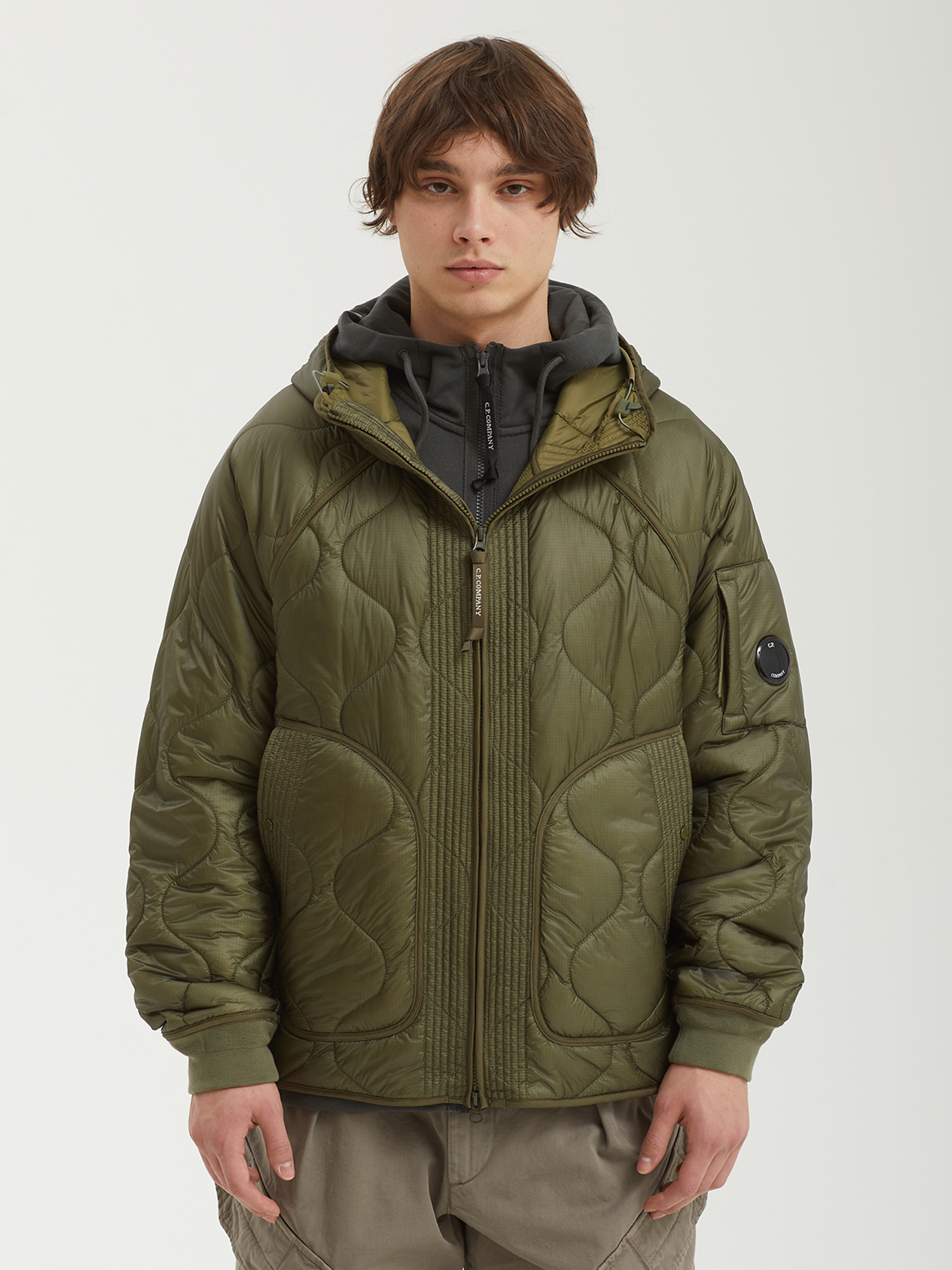 Стеганая куртка-лайнер C.P. Company с верхом из нейлонового микро-рипстопа D.D. Shell, обладающего высокой устойчивостью к разрывам. Наполнитель из натурального пуха и пера.