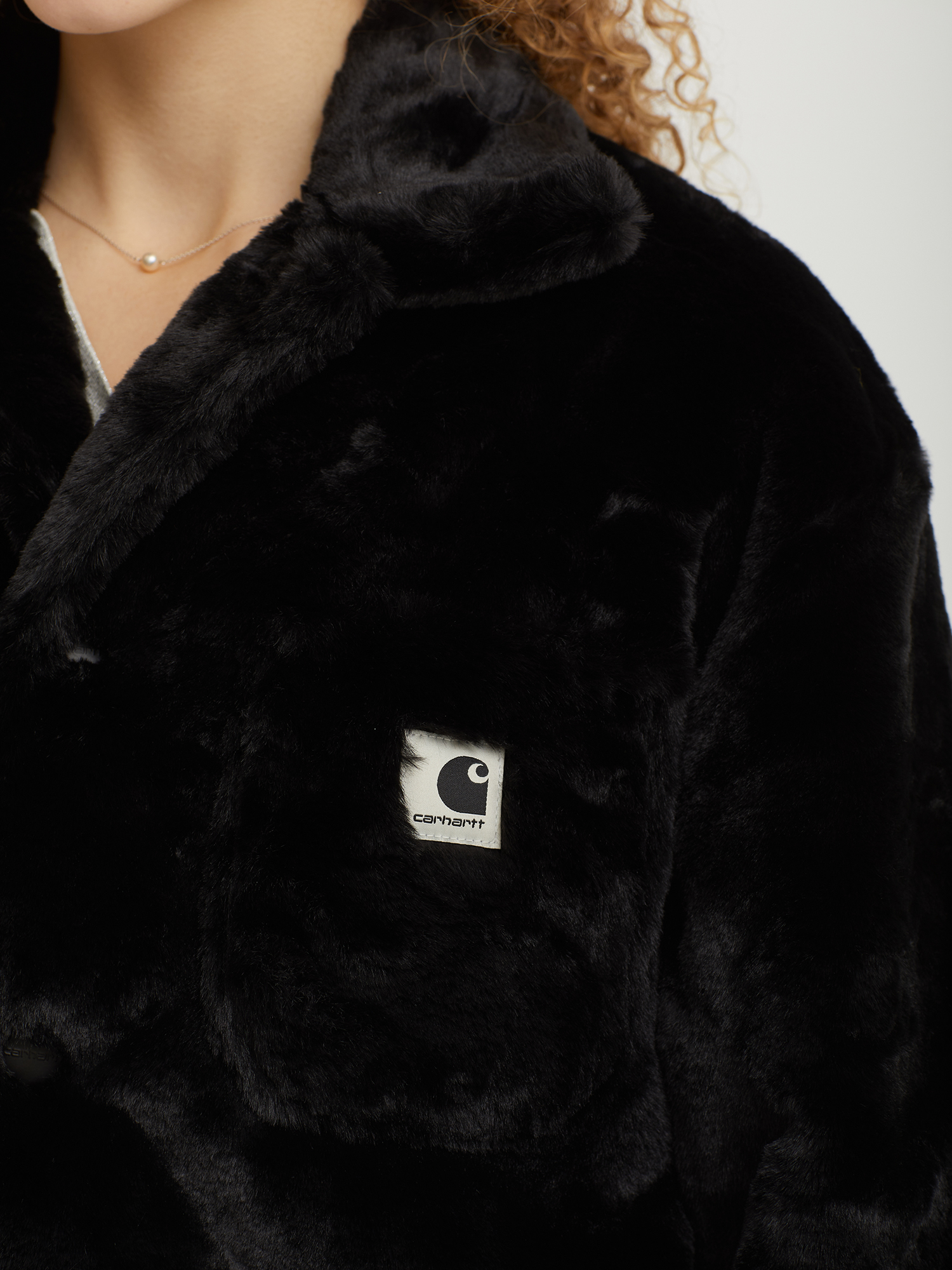 Куртка в рабочем стиле Carhartt WIP с верхом из искусственного меха. Изделие дополнено утилитарными карманами.
