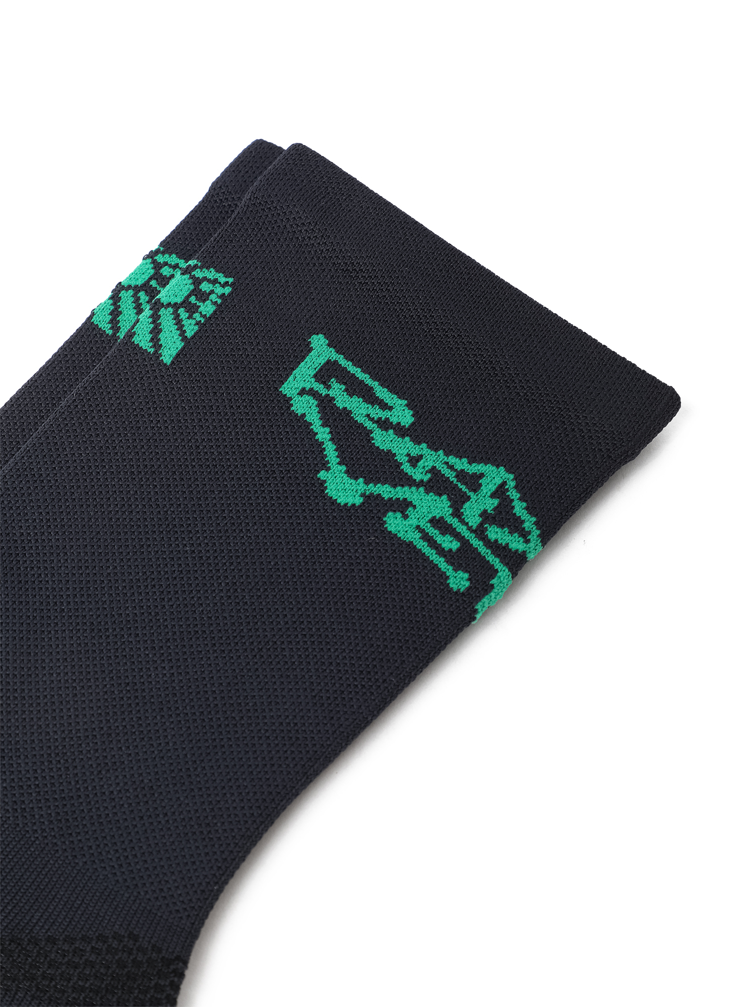 Высокие носки Rayon Vert из переработанного полиамида, обладающего высокими антибактериальными свойствами. Амортизирующая вставка по всей длине для комфорта во время длительных активностей.
