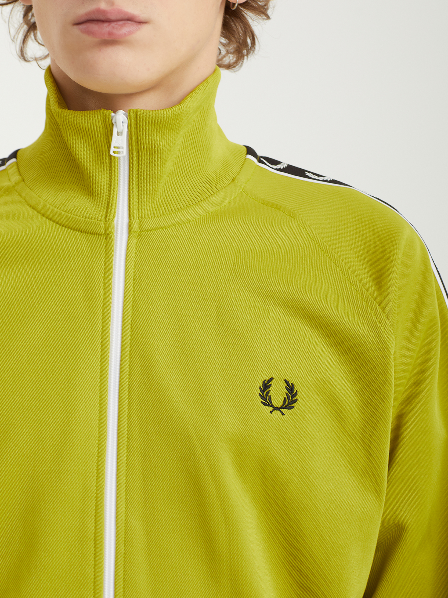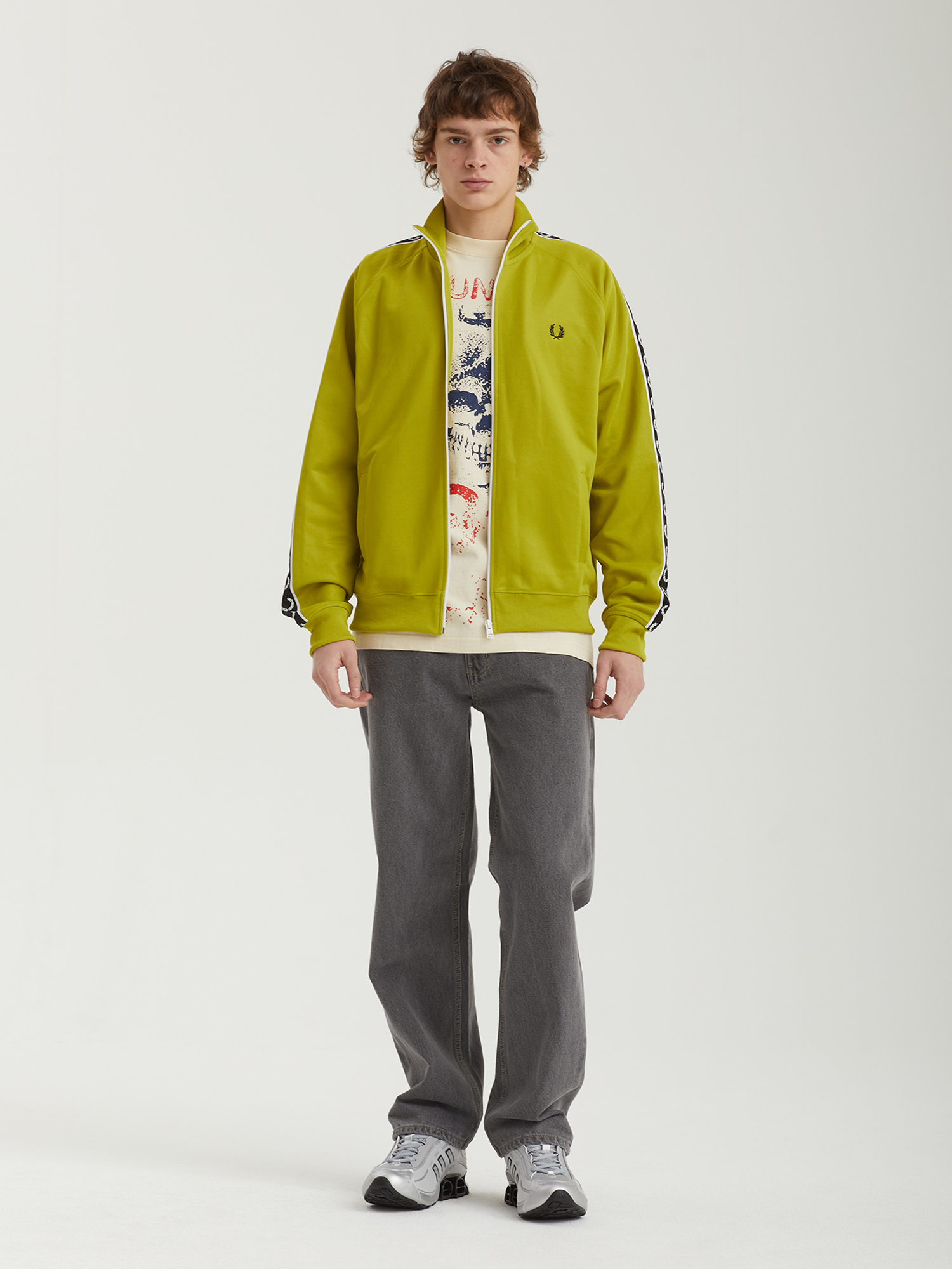 Олимпийка с контрастными лампасами на рукавах — знаковая модель мужской коллекции Fred Perry. Вдохновлена спортивной эстетикой 1970-х годов и стилем поклонников брит-поп-сцены 1990-х.