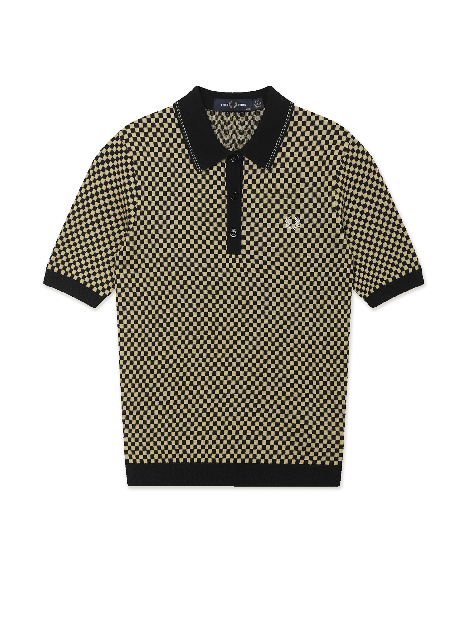 Вязаное поло с коротким рукавом Fred Perry из смесовой пряжи. Изделие дополнено жаккардовым рисунком в клетку и прошитым типпингом на воротнике.
