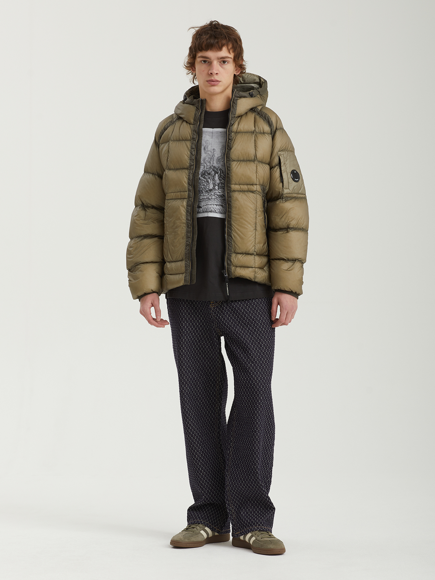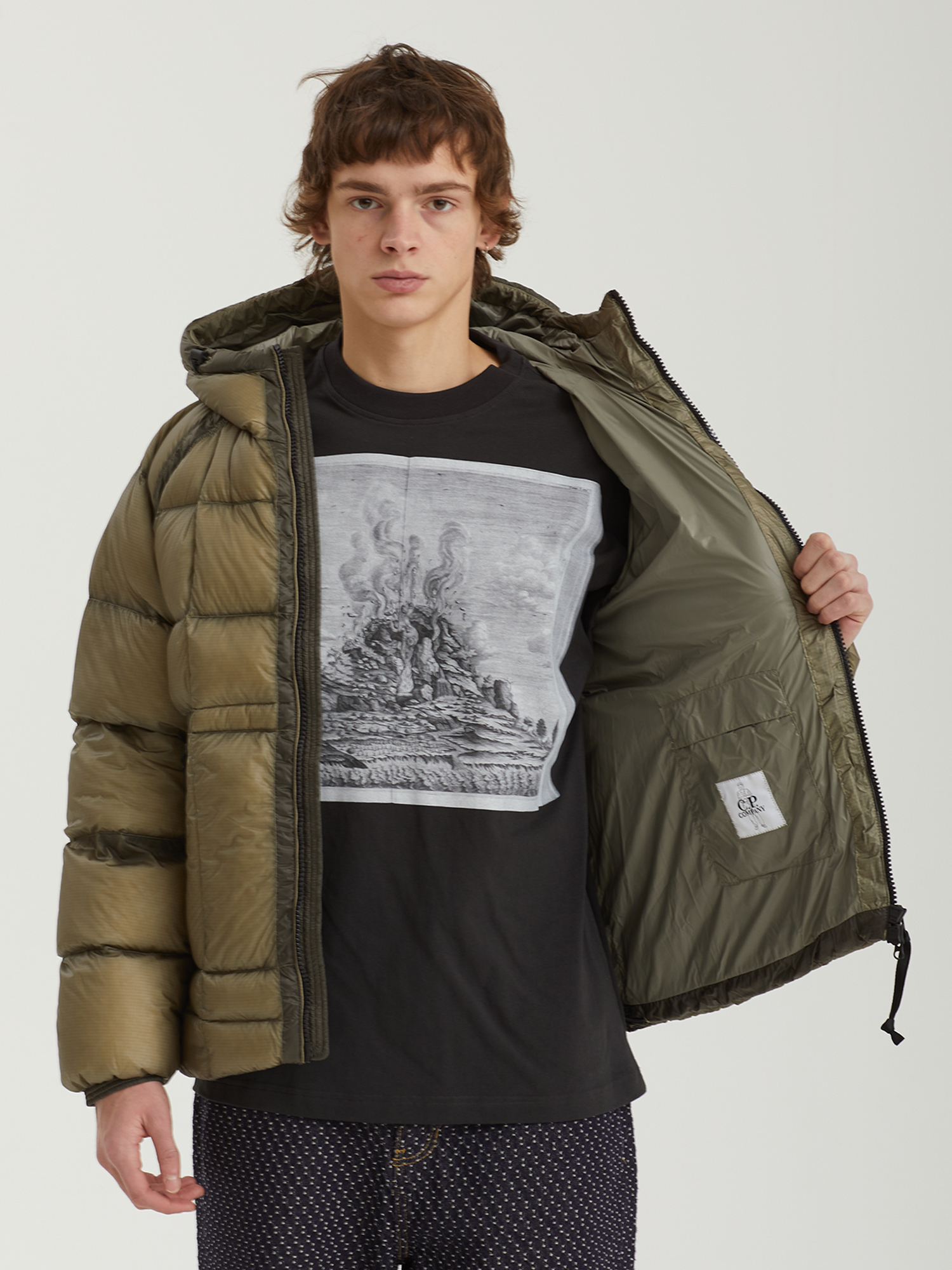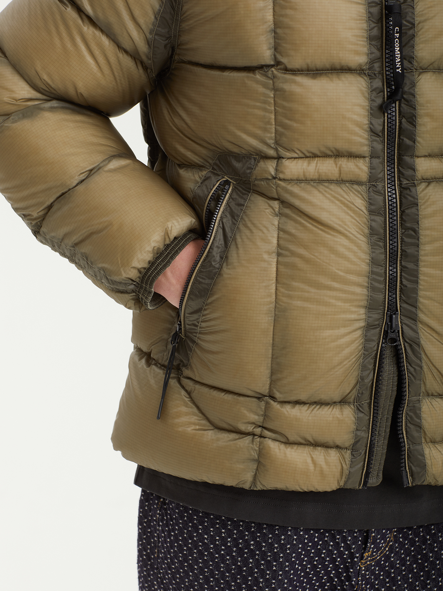 Стеганая куртка C.P. Company с верхом из нейлонового микро-рипстопа D.D. Shell, обладающего высокой устойчивостью к разрывам. Наполнитель из натурального пуха и пера.