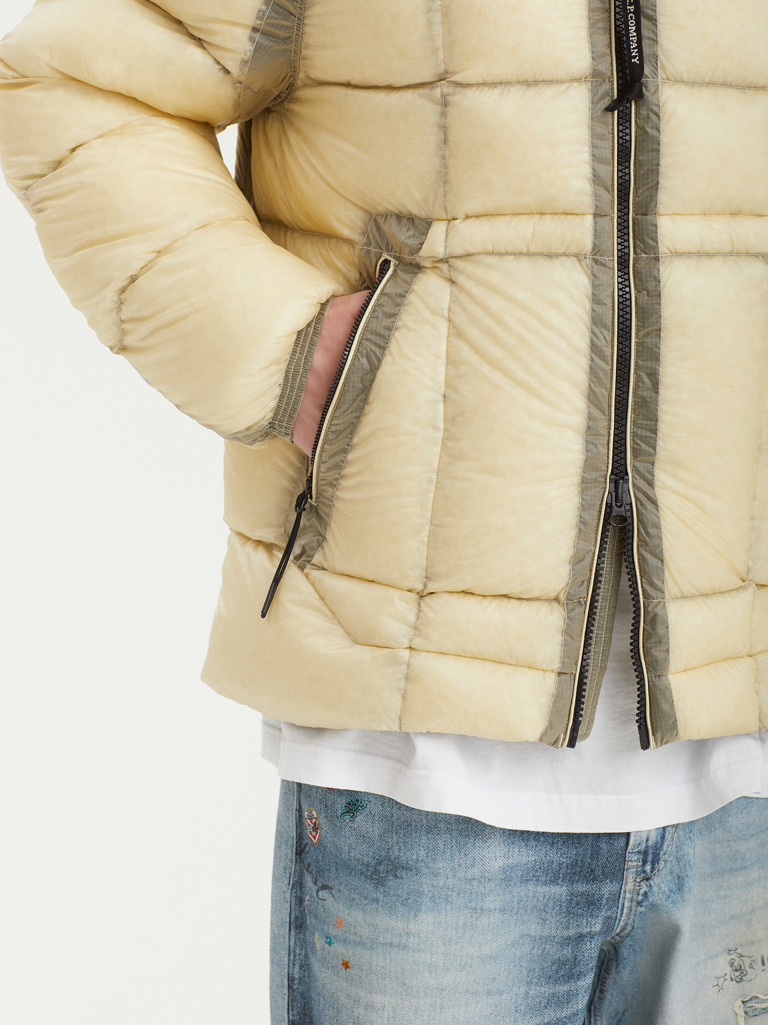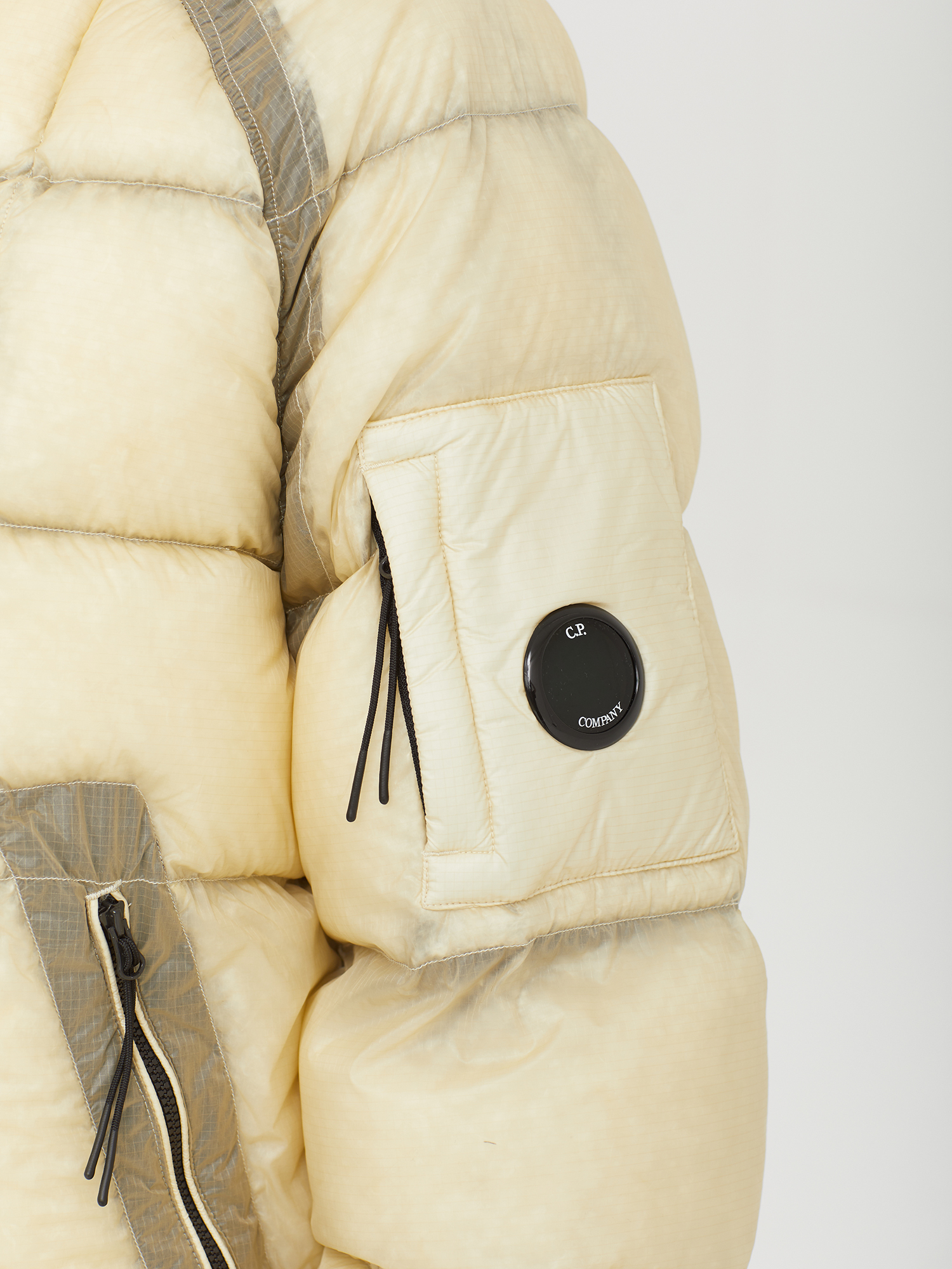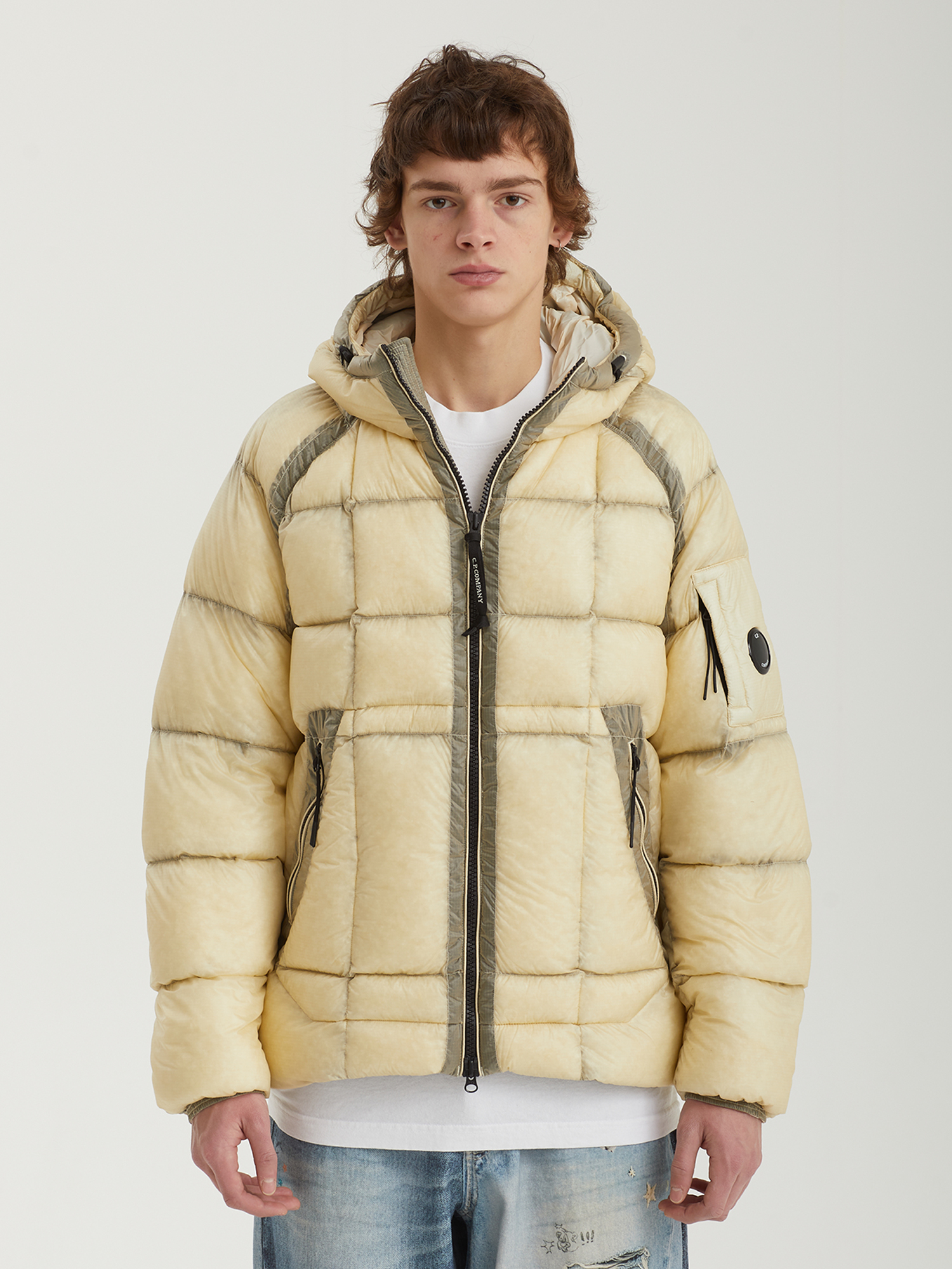 Стеганая куртка C.P. Company с верхом из нейлонового микро-рипстопа D.D. Shell, обладающего высокой устойчивостью к разрывам. Наполнитель из натурального пуха и пера.