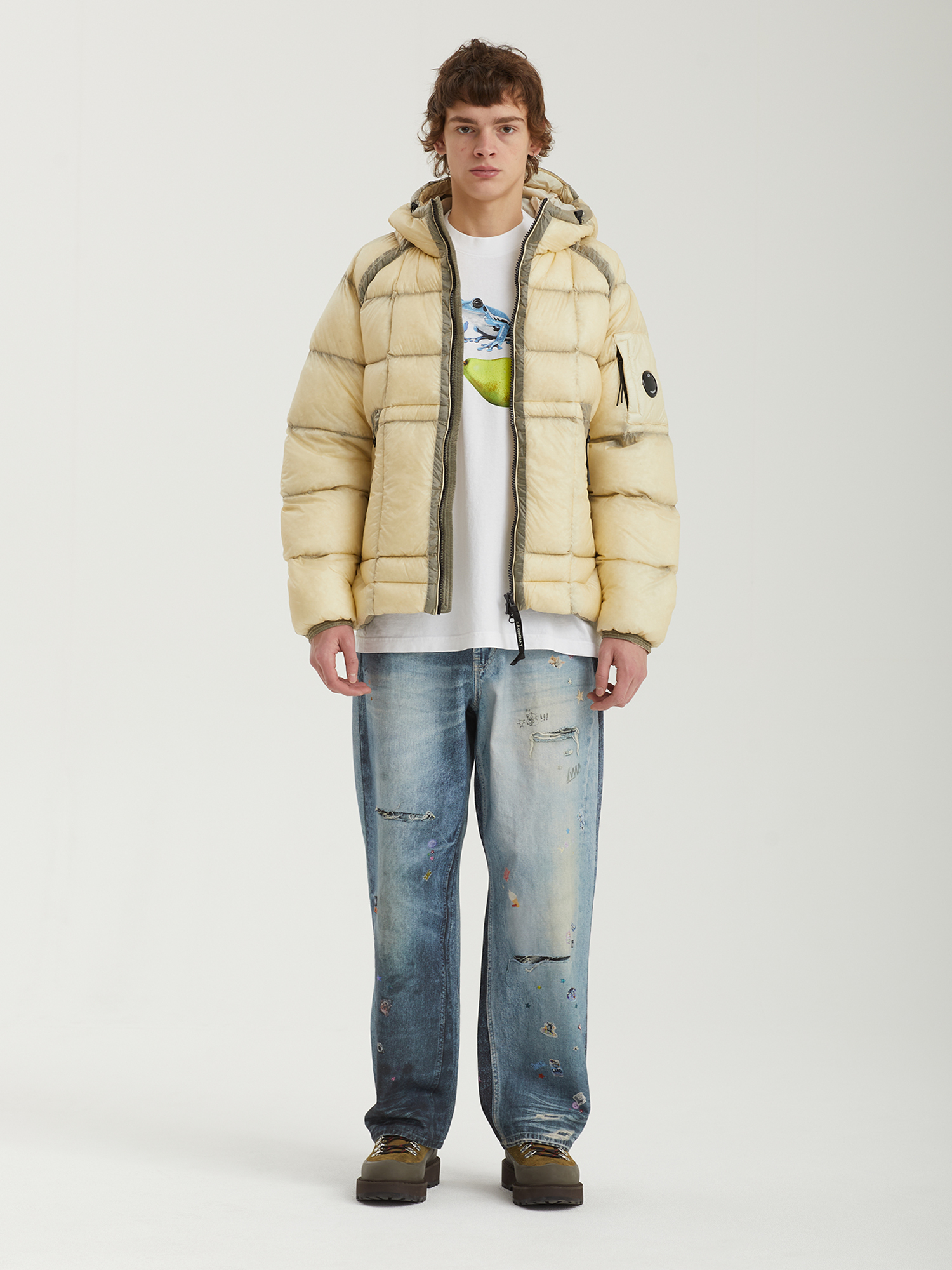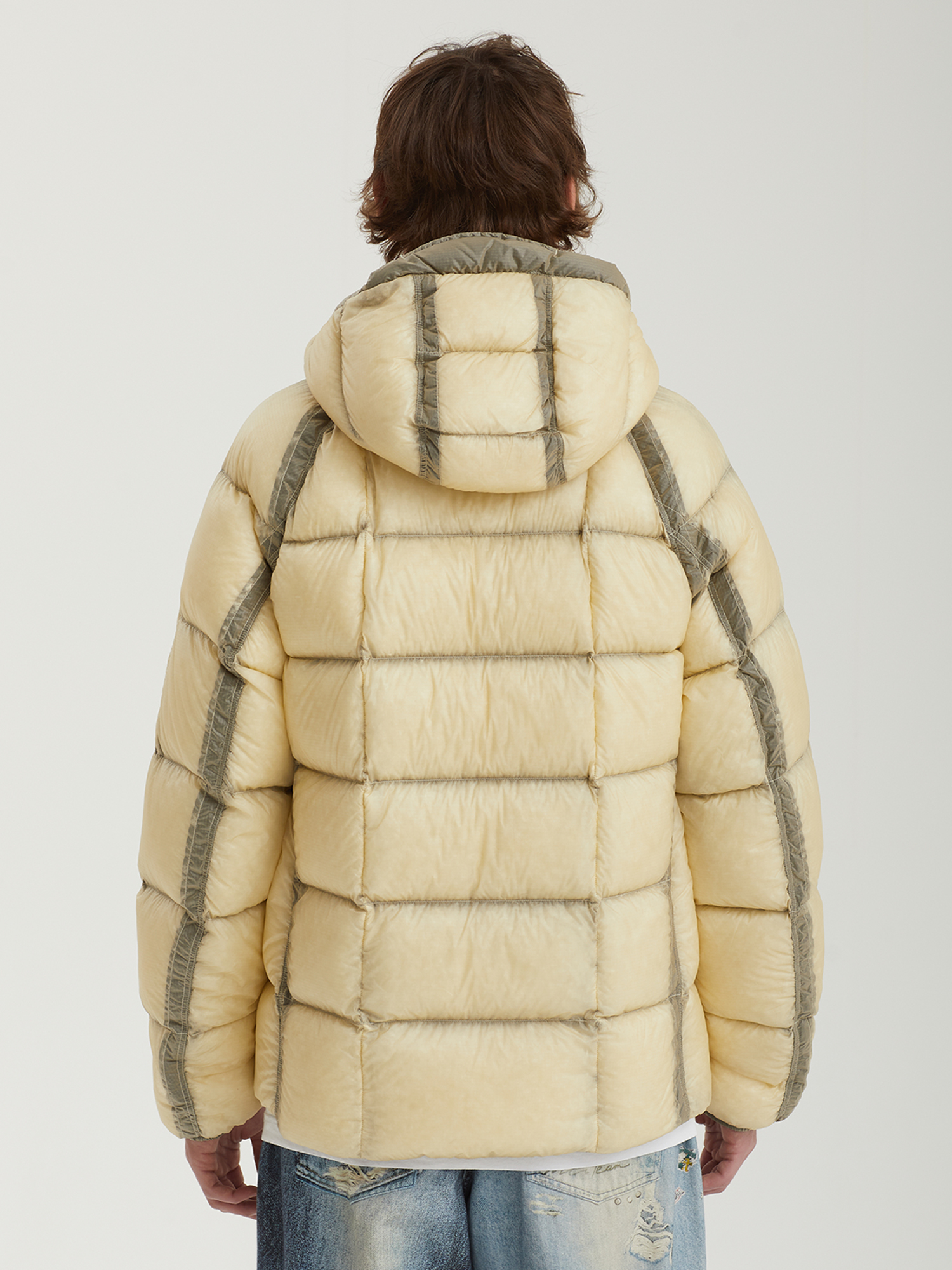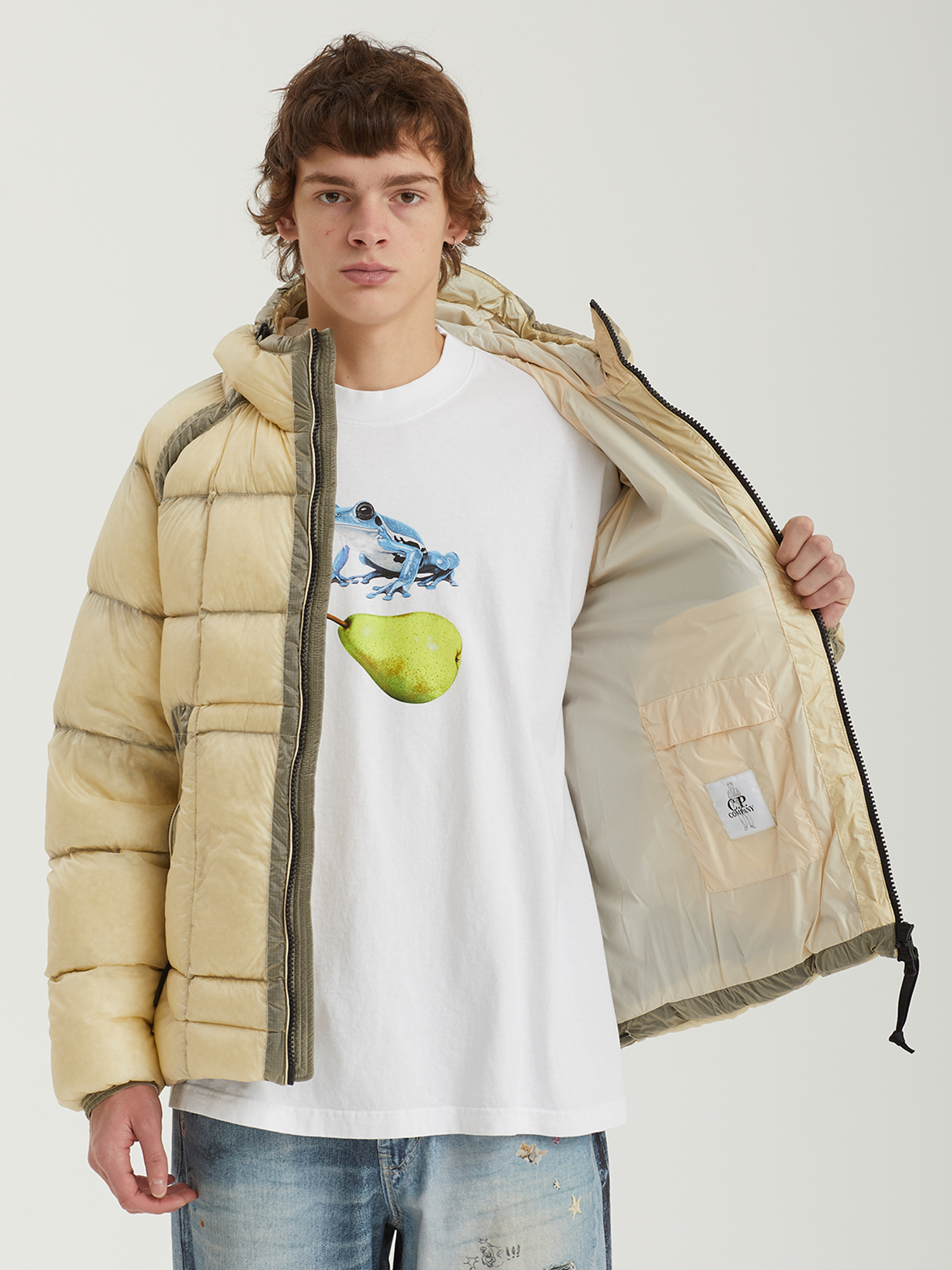 Стеганая куртка C.P. Company с верхом из нейлонового микро-рипстопа D.D. Shell, обладающего высокой устойчивостью к разрывам. Наполнитель из натурального пуха и пера.
