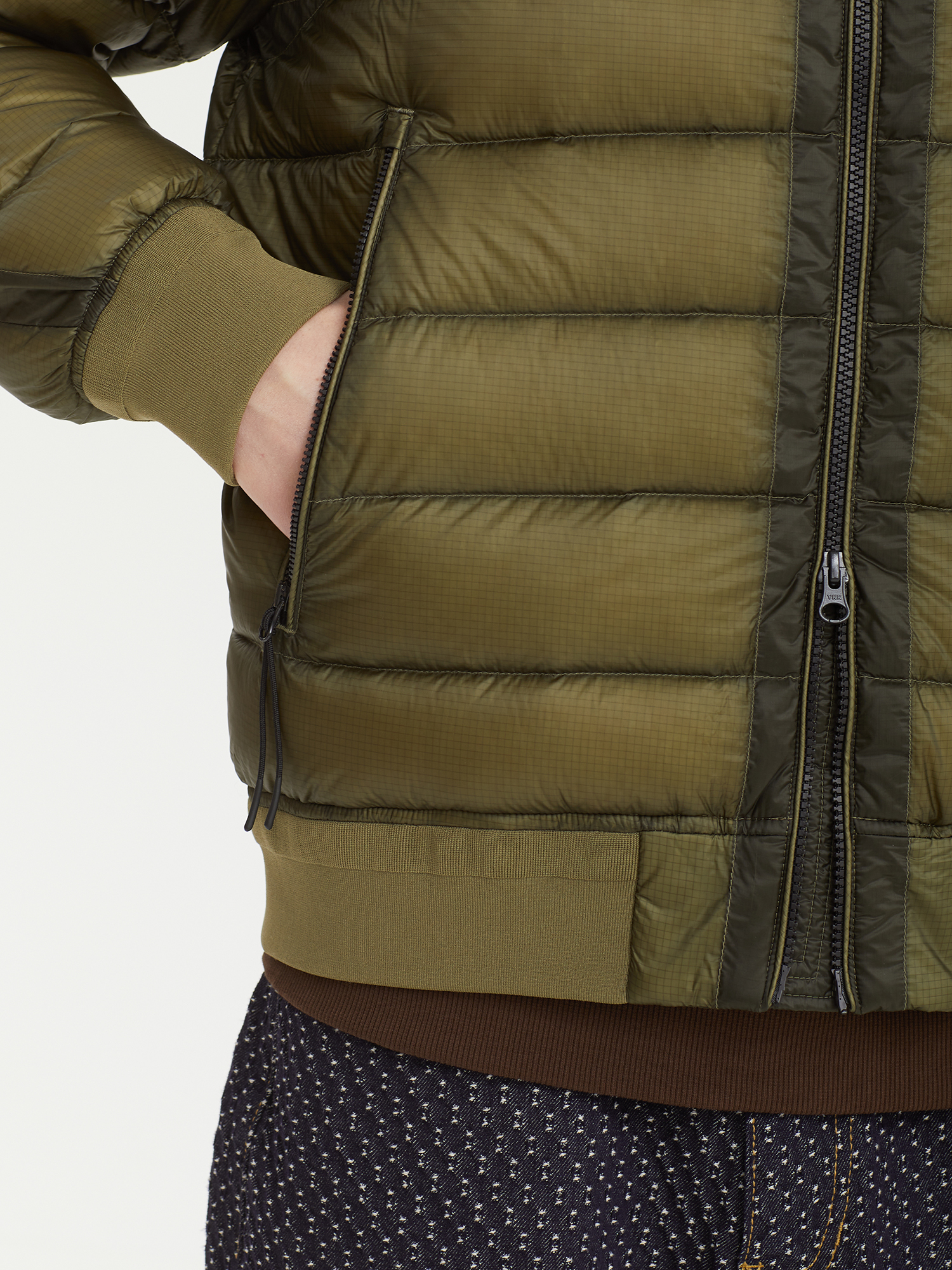 Легкая утепленная куртка С.P. Company, выполненная из прочного микро-рипстопа. Прозрачность ткани подчеркивает структуру изделия, а технология Direct Down Injection обеспечивает надежное тепло при минимальном весе и объеме. Модель дополнена регулируемым капюшоном, двусторонней молнией, практичными карманами и фирменной линзой C.P. Company. Эластичные манжеты и нижний край поддерживают посадку по фигуре. Силуэт прямой — для универсального сочетания и комфортной носки.