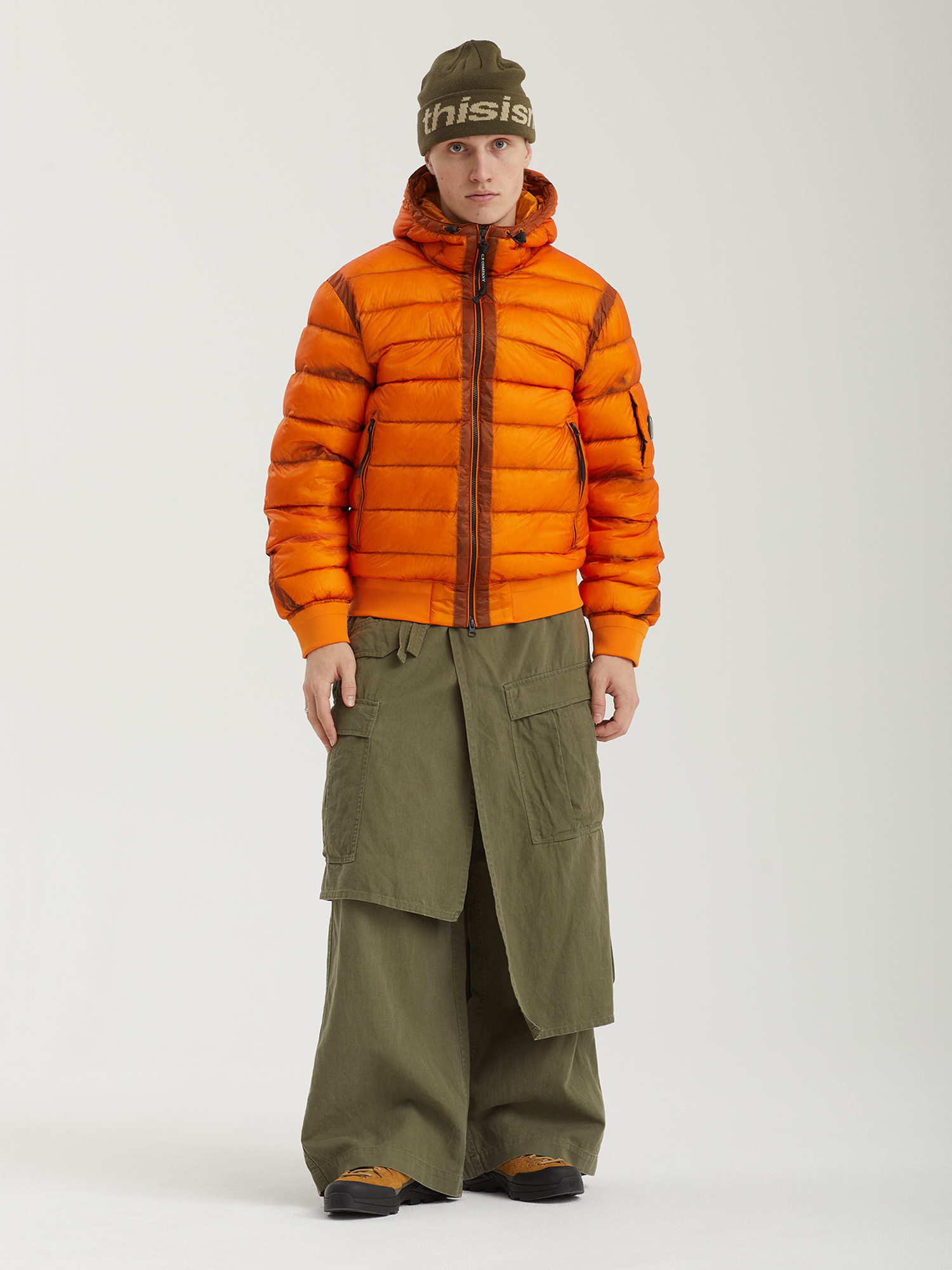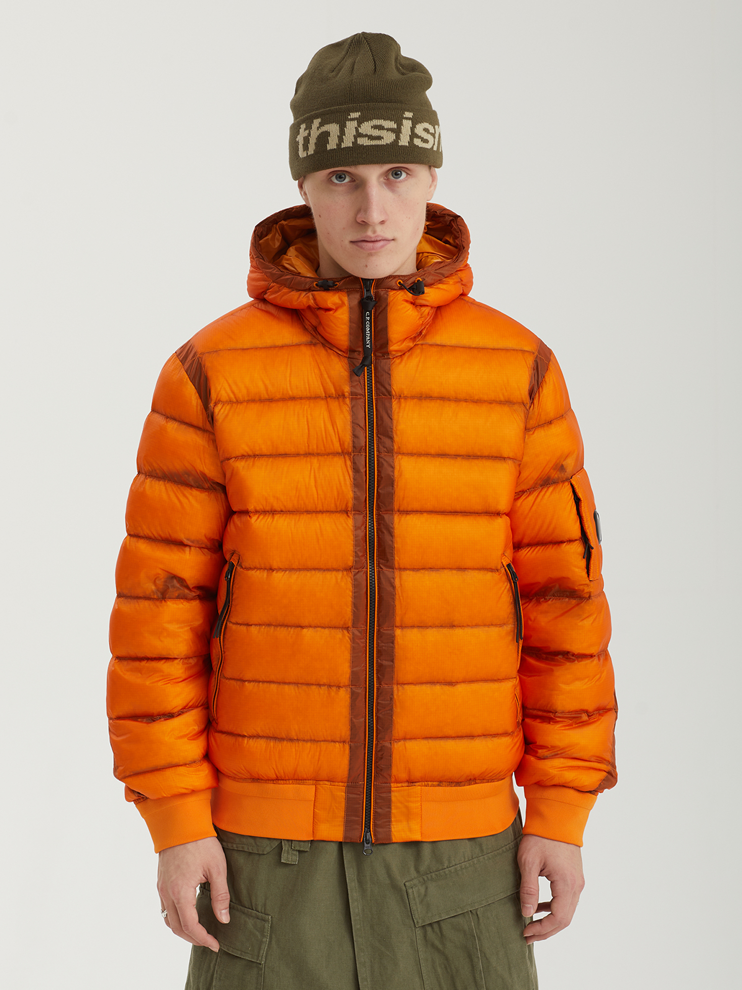 Легкая утепленная куртка С.P. Company, выполненная из прочного микро-рипстопа. Прозрачность ткани подчеркивает структуру изделия, а технология Direct Down Injection обеспечивает надежное тепло при минимальном весе и объеме. Модель дополнена регулируемым капюшоном, двусторонней молнией, практичными карманами и фирменной линзой C.P. Company. Эластичные манжеты и нижний край поддерживают посадку по фигуре. Силуэт прямой — для универсального сочетания и комфортной носки.