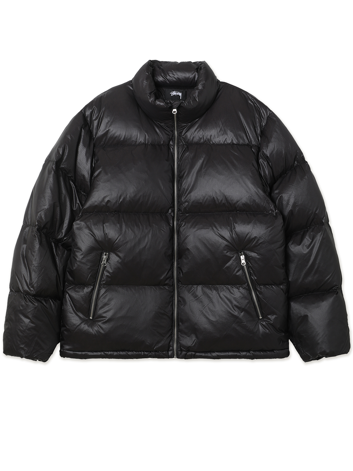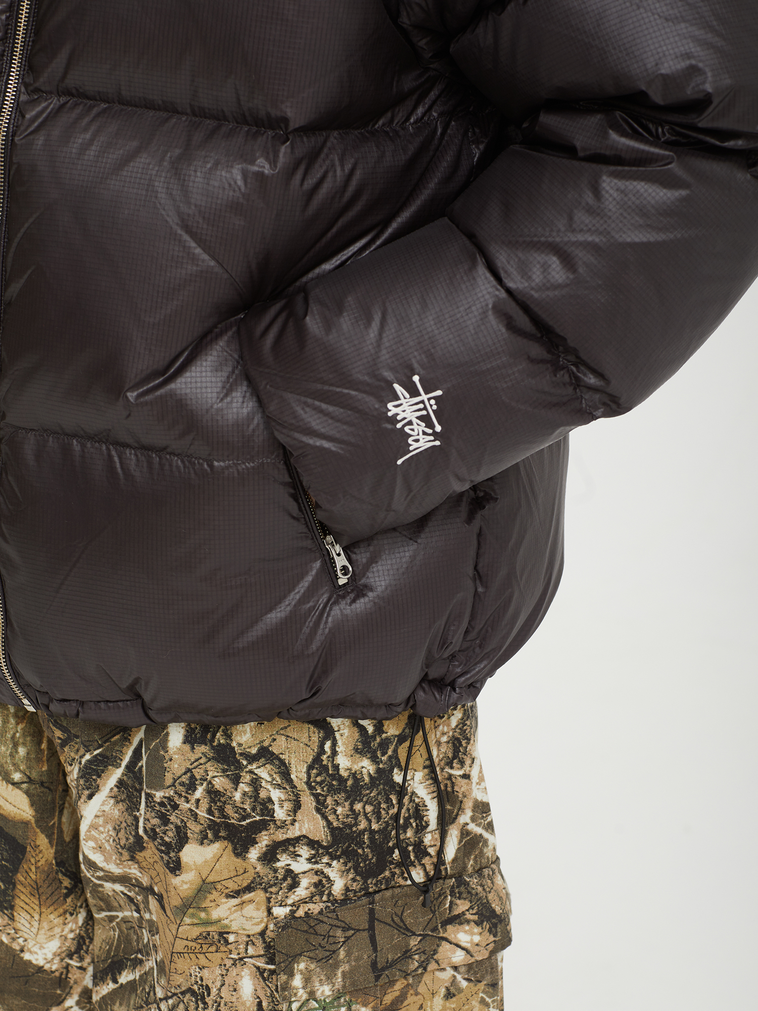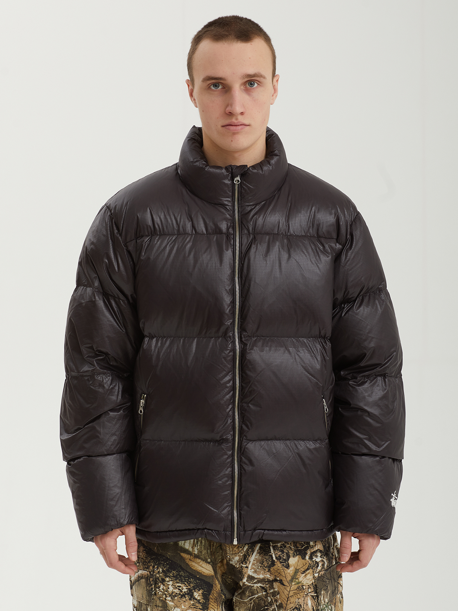 Пуховик Stussy с верхом из прочного нейлонового рипстопа. Изделие с натуральным наполнителем высокой уровнем плотности, что позволяет качественно удерживать тепло.