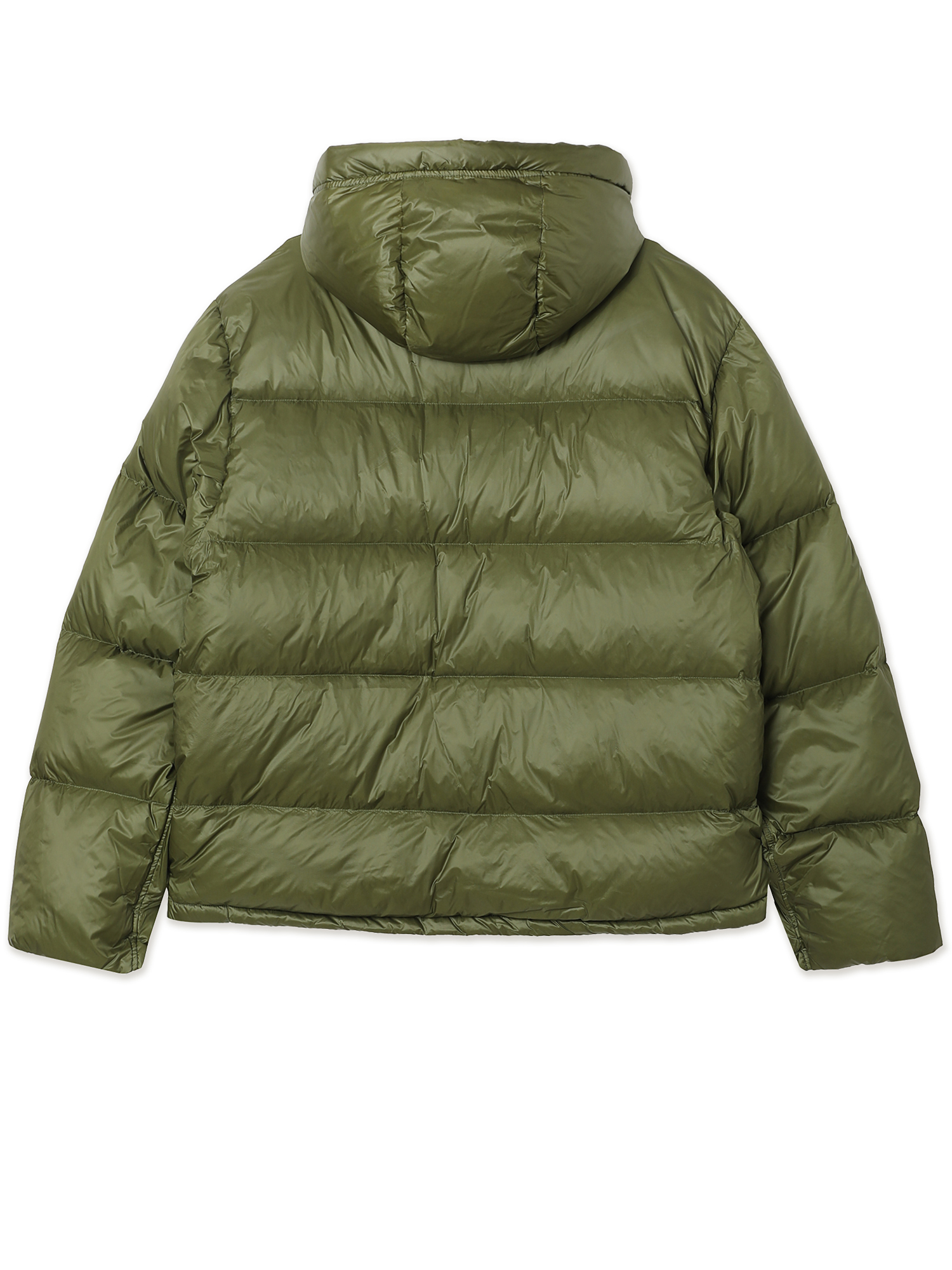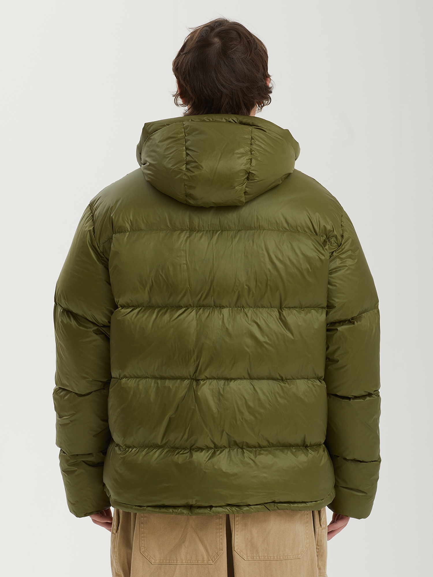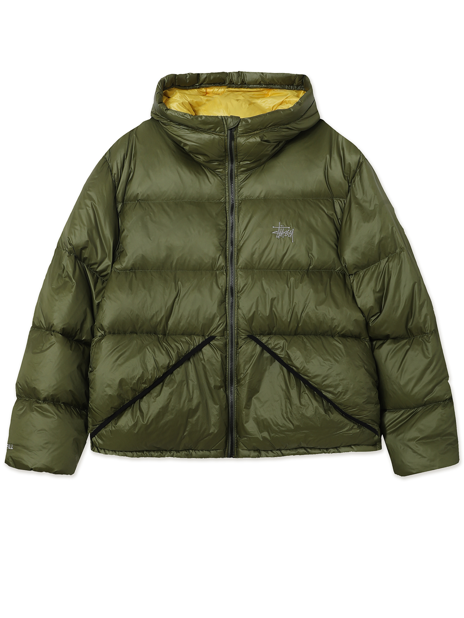 Пуховик с капюшоном Stussy с верхом из глянцевого нейлонового материала. Изделие с натуральным наполнителем высокой уровнем плотности, что позволяет качественно удерживать тепло.