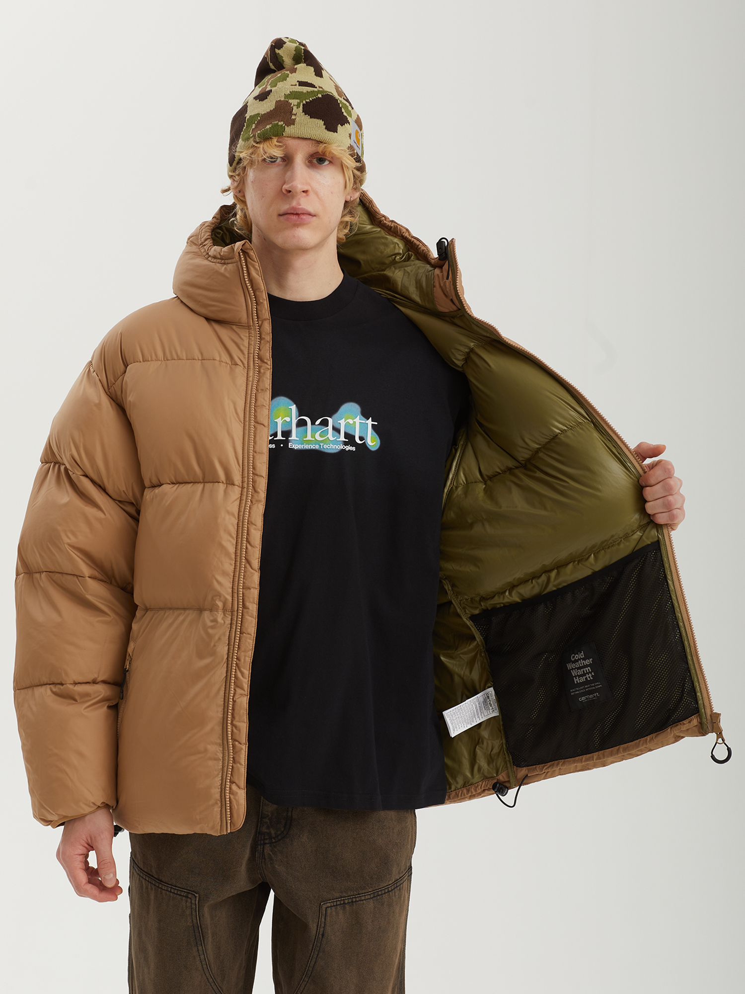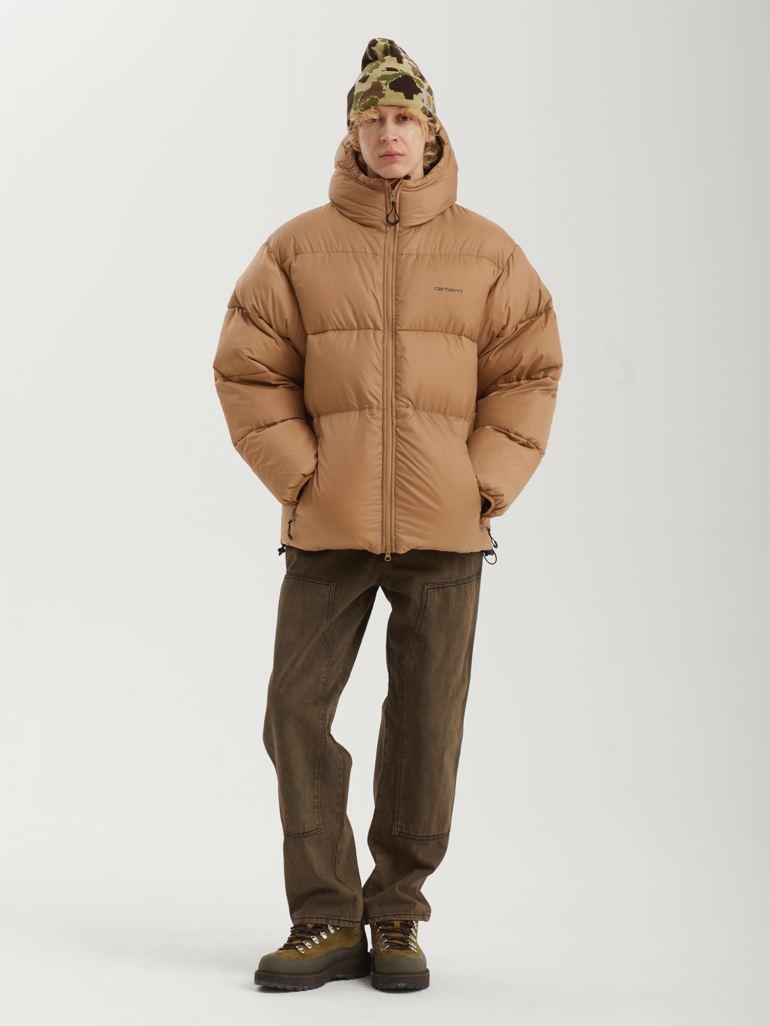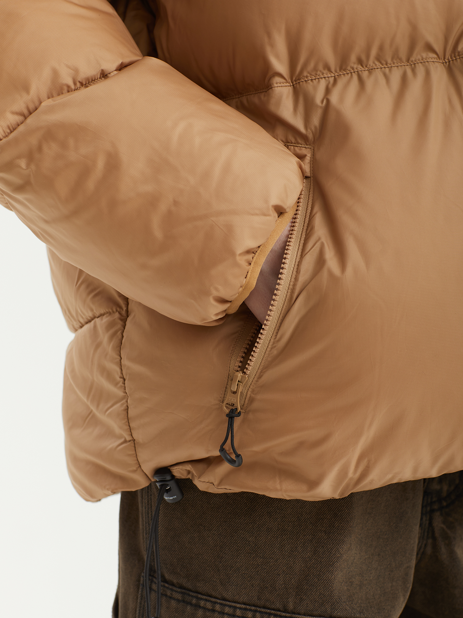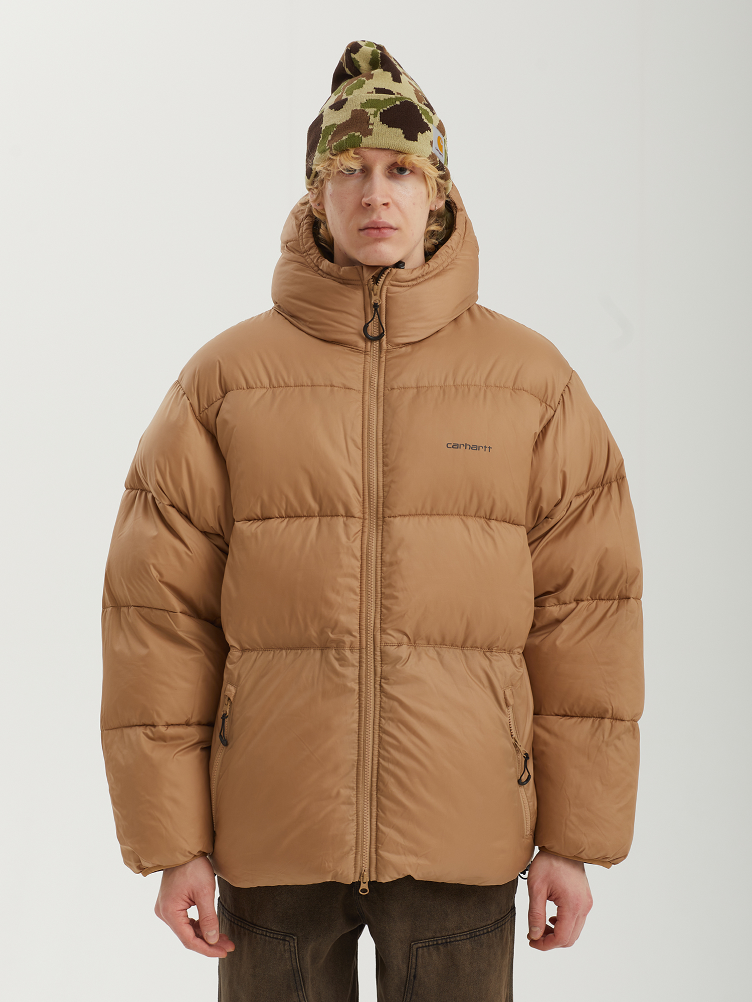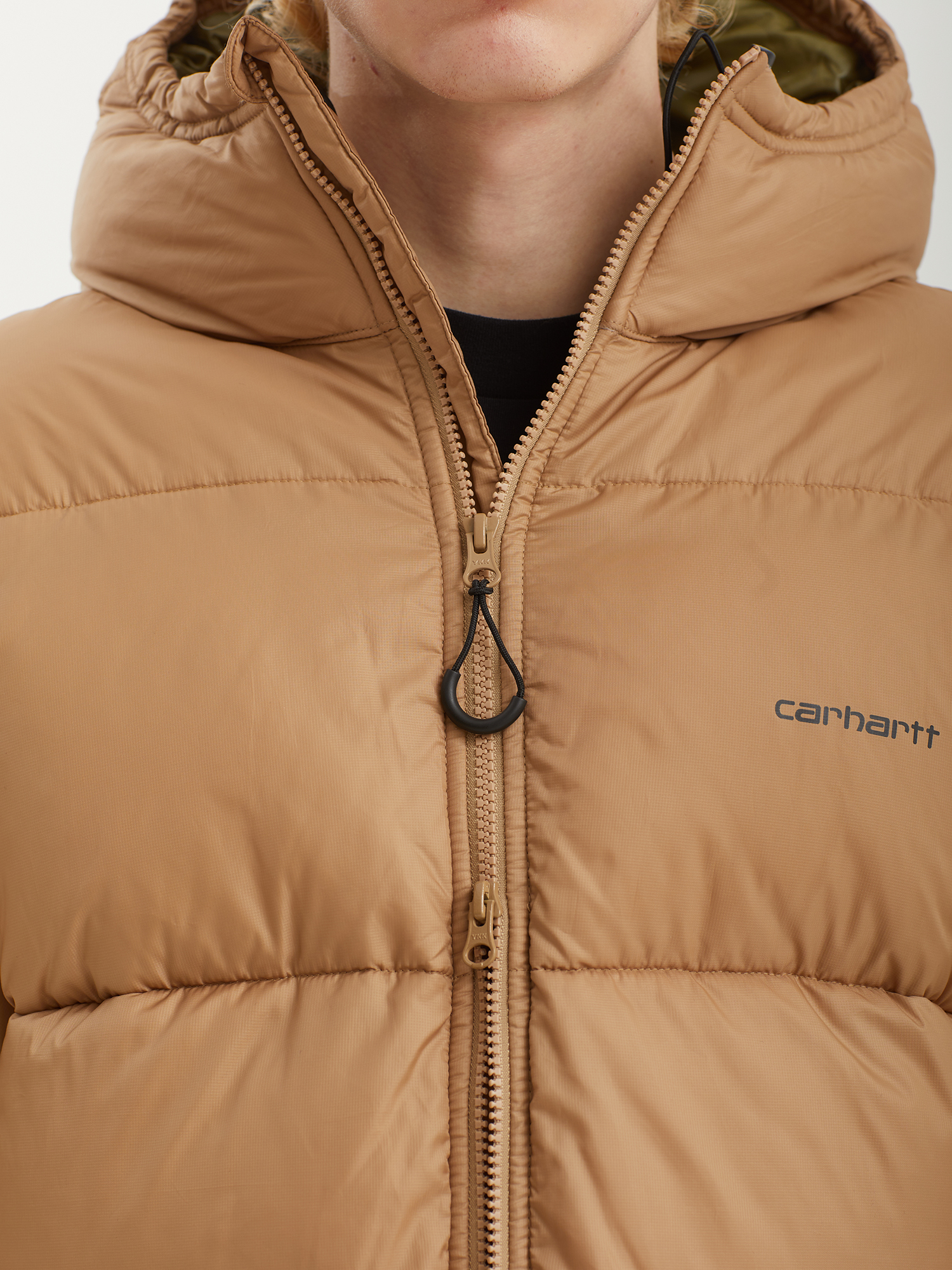 Пуховик с синтетическим наполнителем Carhartt WIP с верхом из водоотталкивающего рипстопа. Изделие дополнено плотно прилегающим регулируемым капюшоном и низом для лучшей защиты от непогоды.
