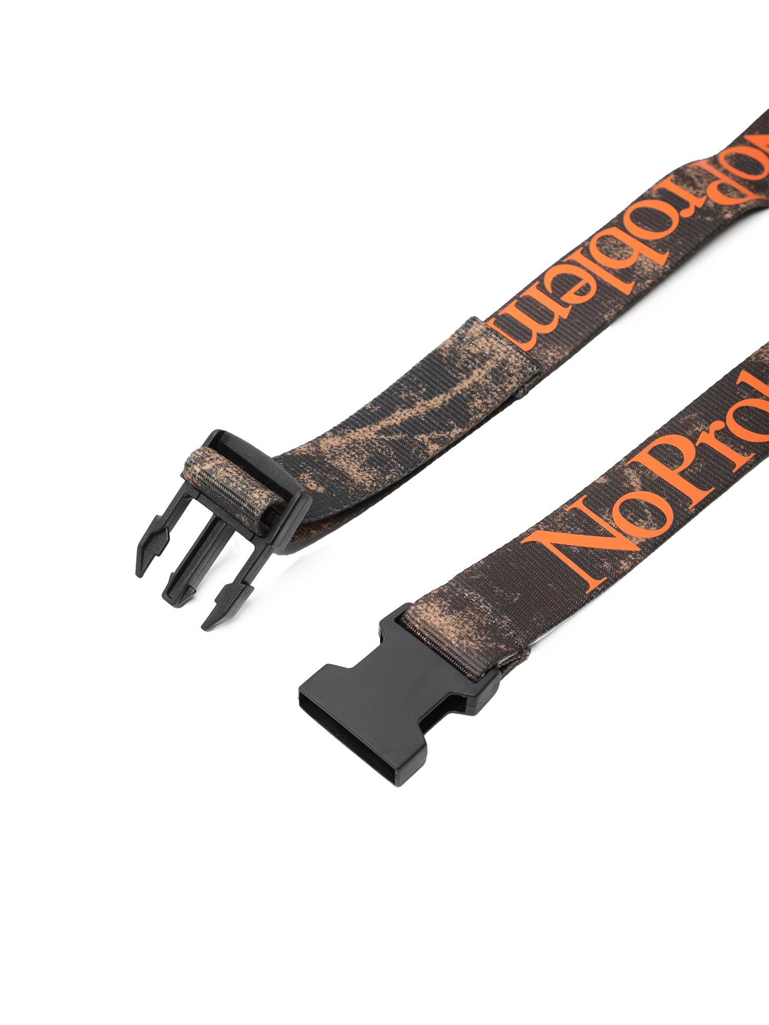 Прочный ремень Aries с плетеной текстурой дополнен надписью «No Problemo» по всей поверхности.
