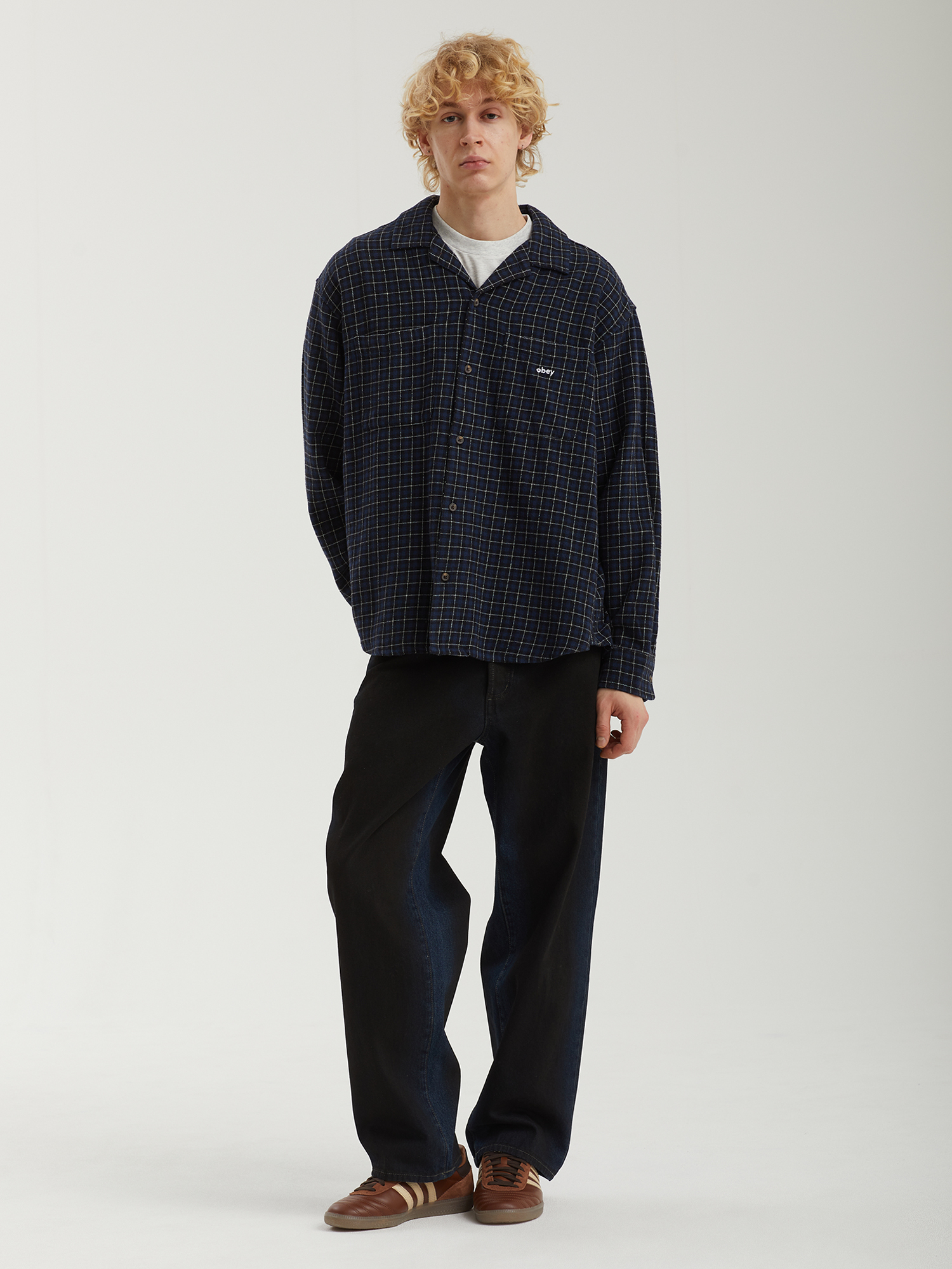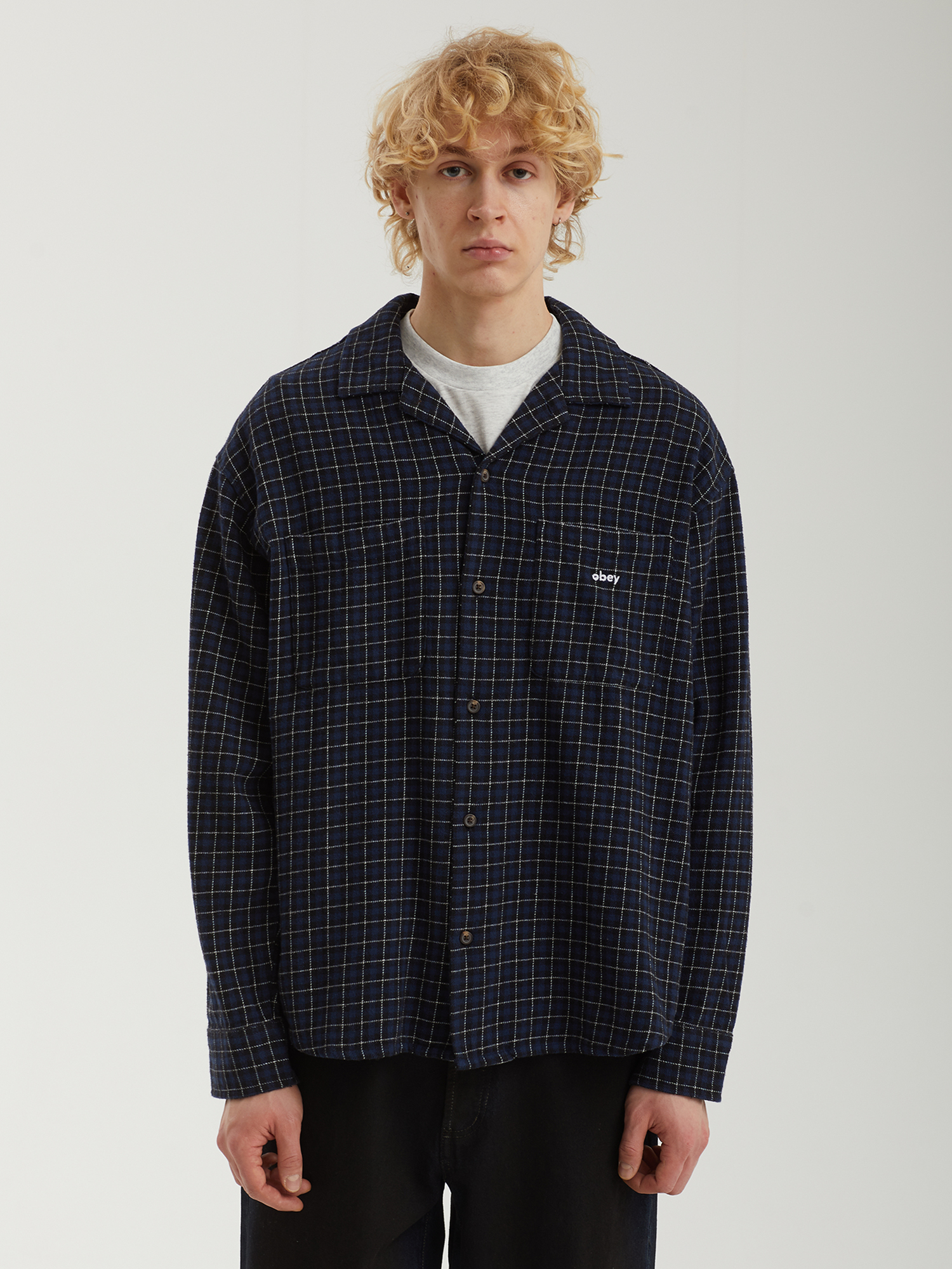 Рубашка Obey выполнена из хлопковой ткани, которая хорошо держит форму и приятна на ощупь. Расслабленный крой гарантирует комфорт и свободу движений, а закругленный нижний край придает силуэту аккуратность. Два нагрудных кармана подчеркивают утилитарный характер модели. Вышивка с логотипом дополняет дизайн лаконичным фирменным акцентом. Рубашка изготовлена с соблюдением принципов Fair Trade, отражая ответственное отношение бренда к производству.