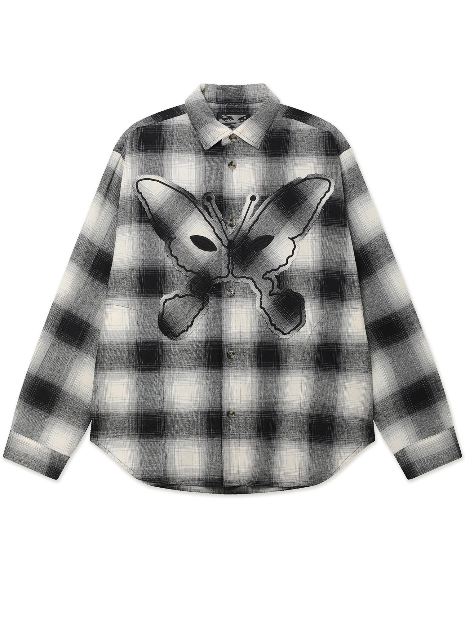 Рубашка P.A.M. выполнена из мягкой хлопковой фланели и оформлена выразительной аппликацией в характерной эстетике бренда. Изделие имеет прямой расслабленный крой, изогнутую линию подола и прорезные боковые карманы.