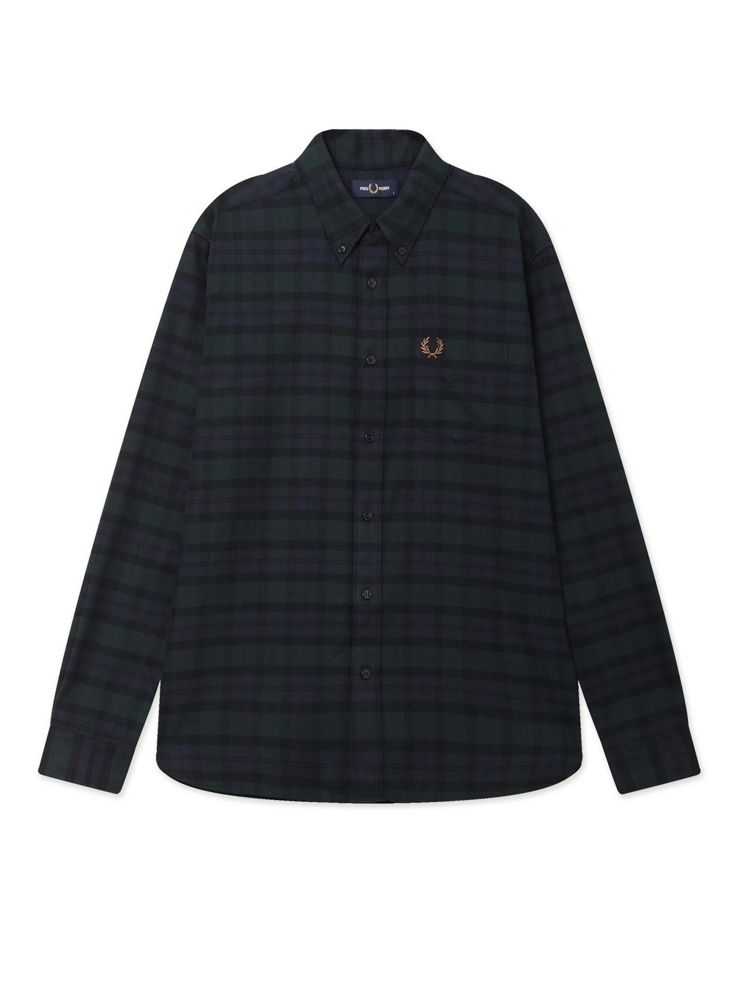 Рубашка Fred Perry из хлопкового твила в традиционном шотландском тартане. Модель имеет прямой крой и слегка ворсистую поверхность. Классический воротник на пуговицах подчеркивает аккуратный силуэт. Изделие дополнено нагрудным карманом и вышитым лавровым венком, отражающим наследие бренда.