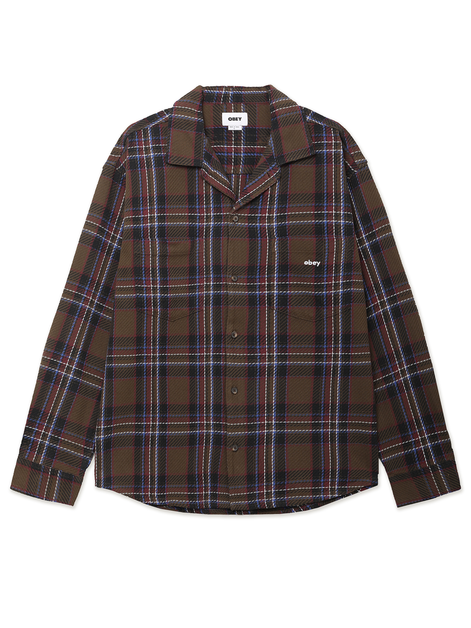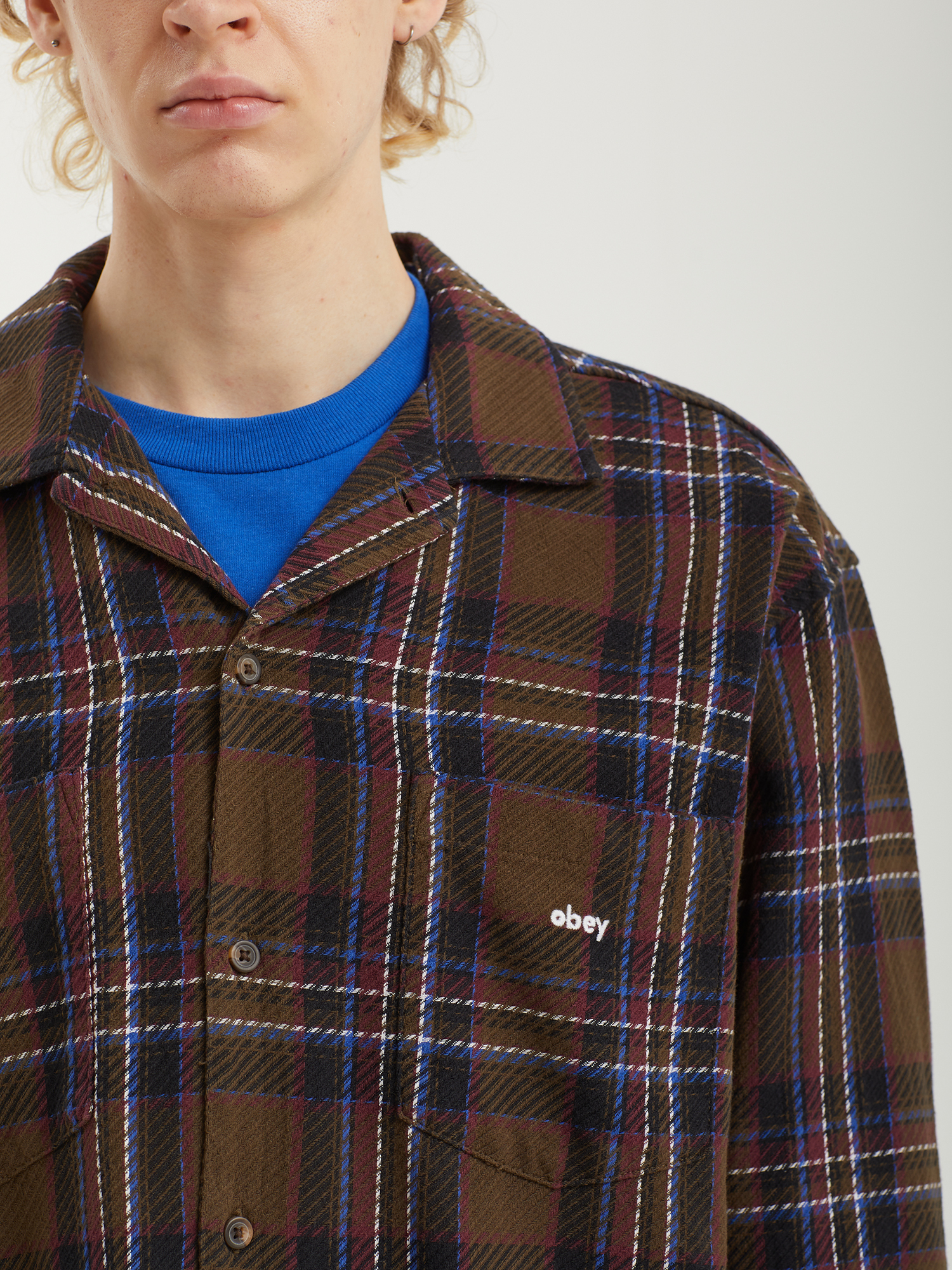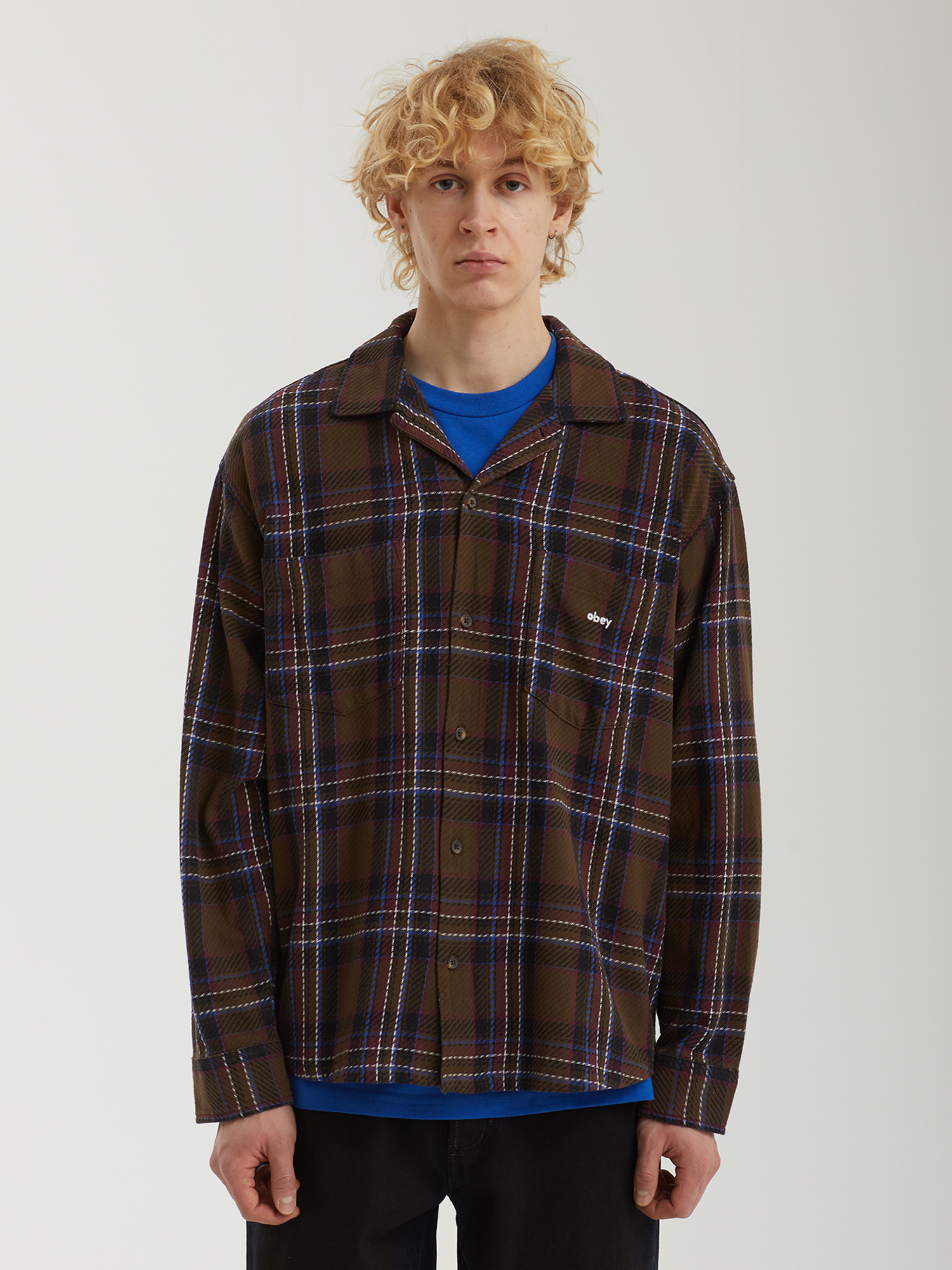 Рубашка Obey выполнена из натурального хлопка, который обеспечивает комфорт, воздухопроницаемость и приятные ощущения при носке. Расслабленный крой гарантирует удобную посадку и свободу движений, а закругленный нижний край придает силуэту аккуратность. Два нагрудных кармана подчеркивают утилитарный характер модели. Вышивка с логотипом дополняет дизайн лаконичным фирменным акцентом. Рубашка изготовлена с соблюдением принципов Fair Trade, отражая ответственное отношение бренда к производству.