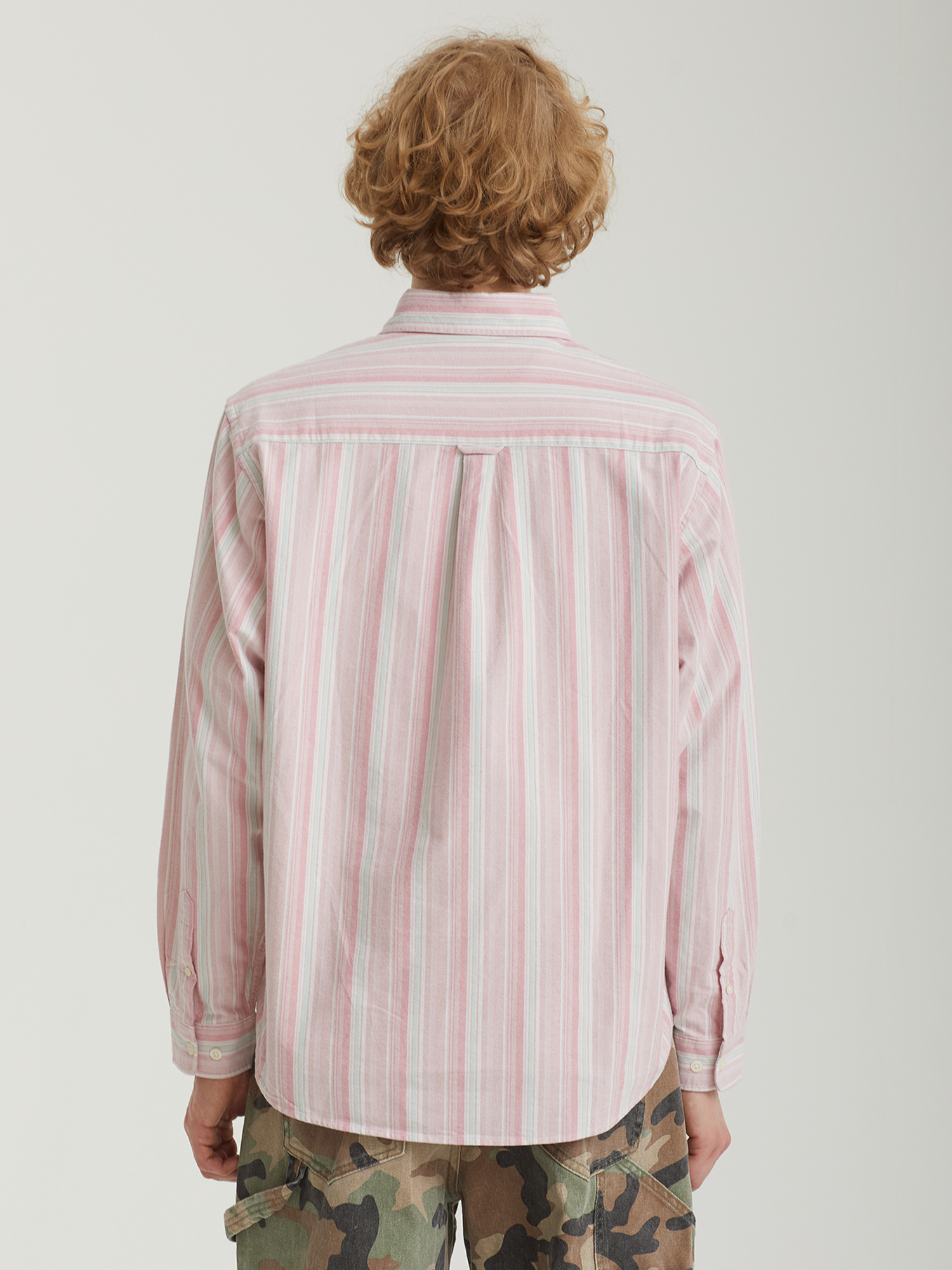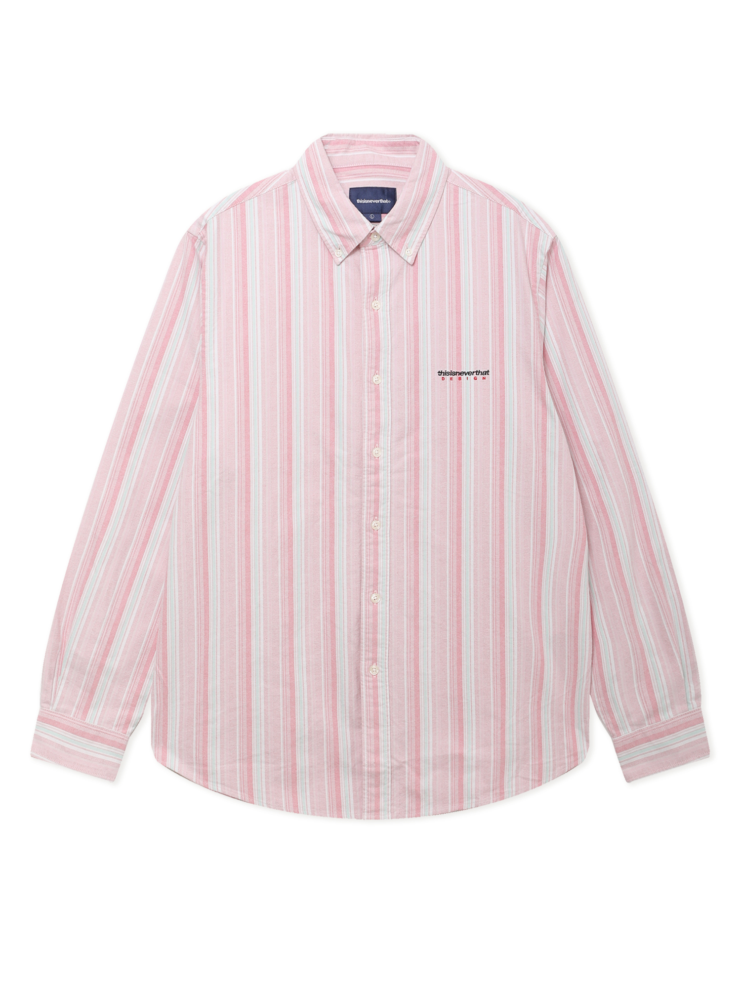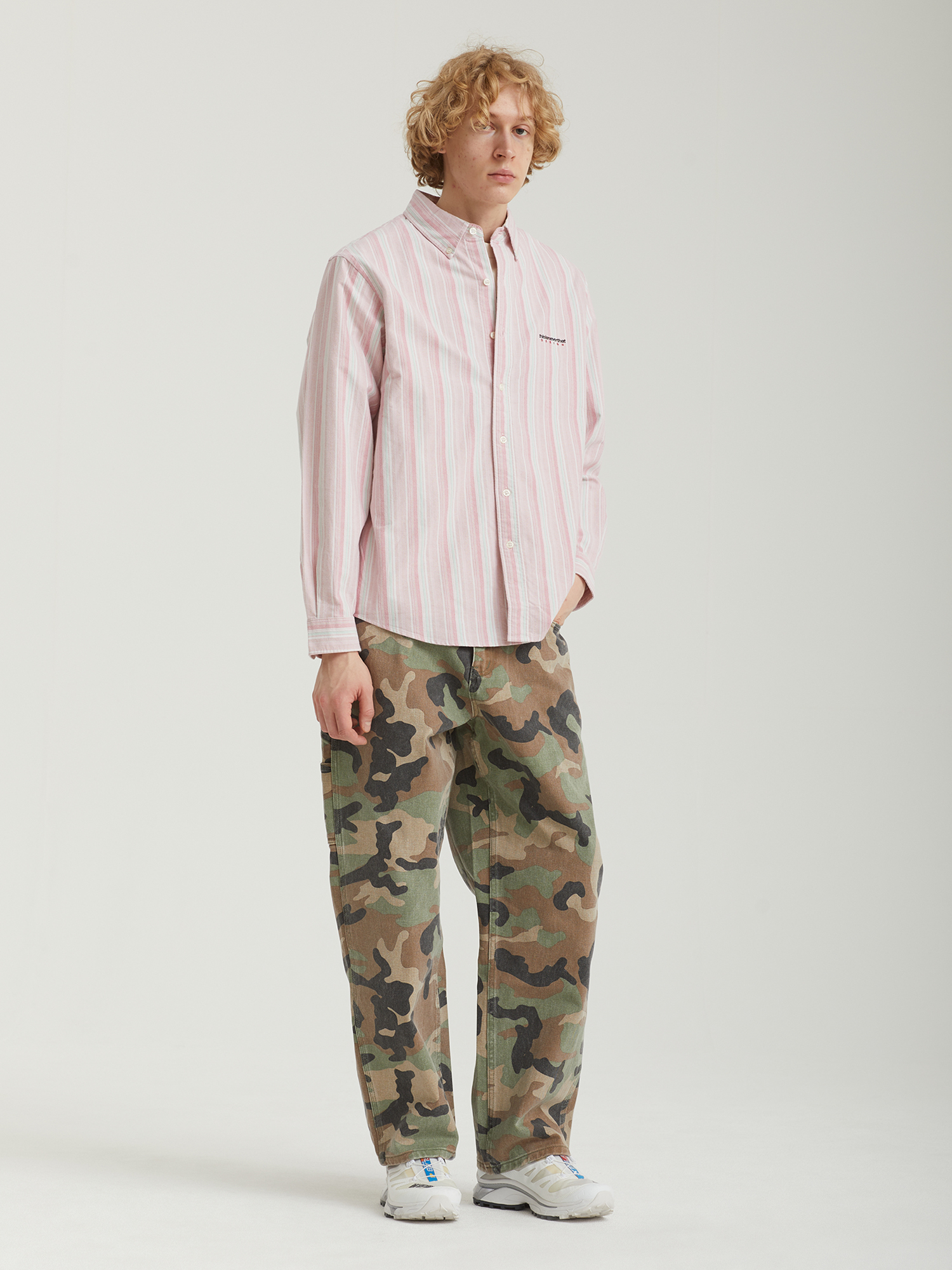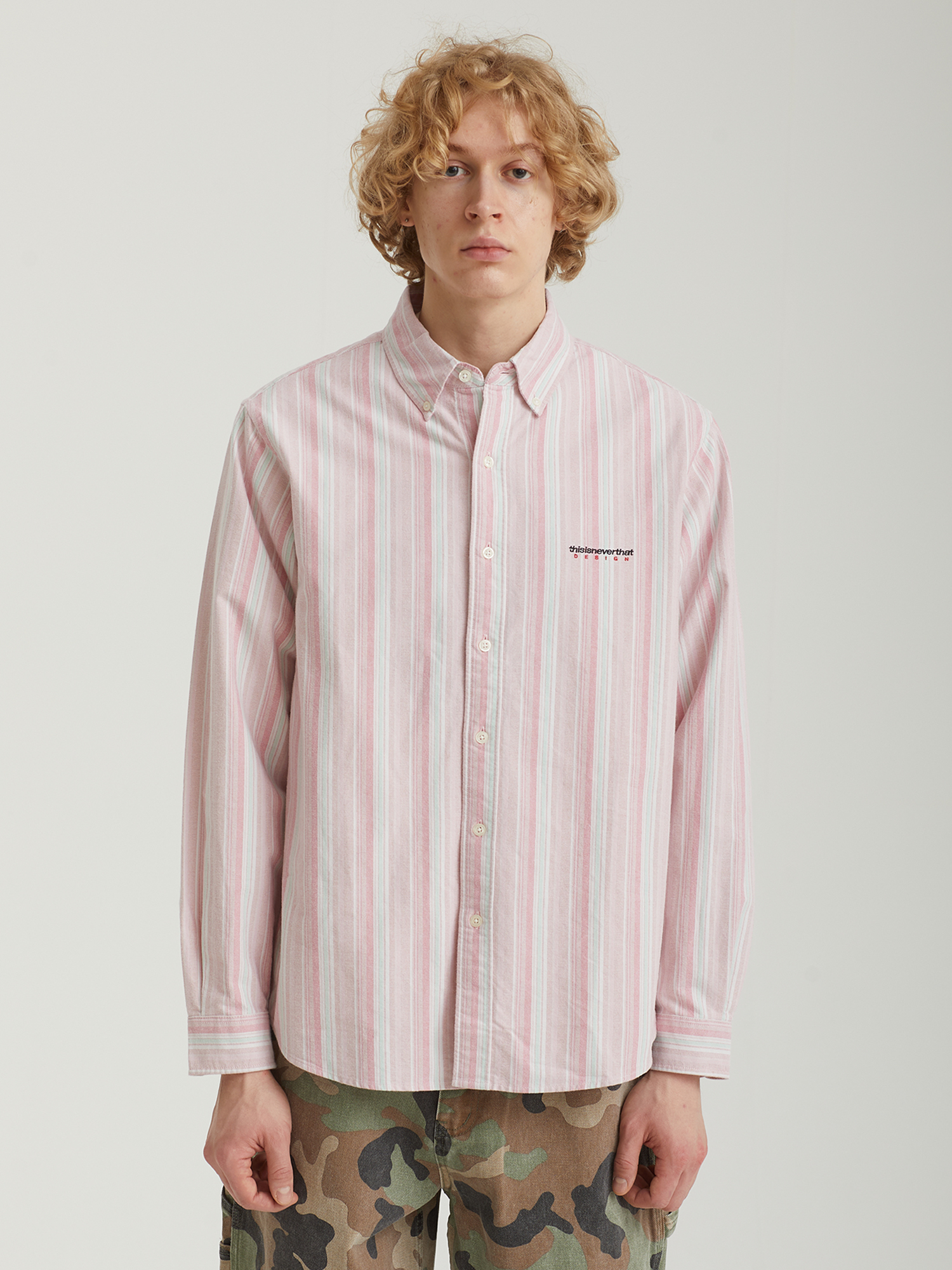 thisisneverthat DSN Oxford Shirt — классическая рубашка из плотного хлопкового оксфорда. Благодаря фабричной обработке Garment washing ткань приобрела более мягкую фактуру. Стандартный прямой крой и складка на задней панели обеспечивают удобную посадку. Воротник на пуговицах создает аккуратный и стильный вид, а вышитый логотип на груди добавляет фирменный акцент.