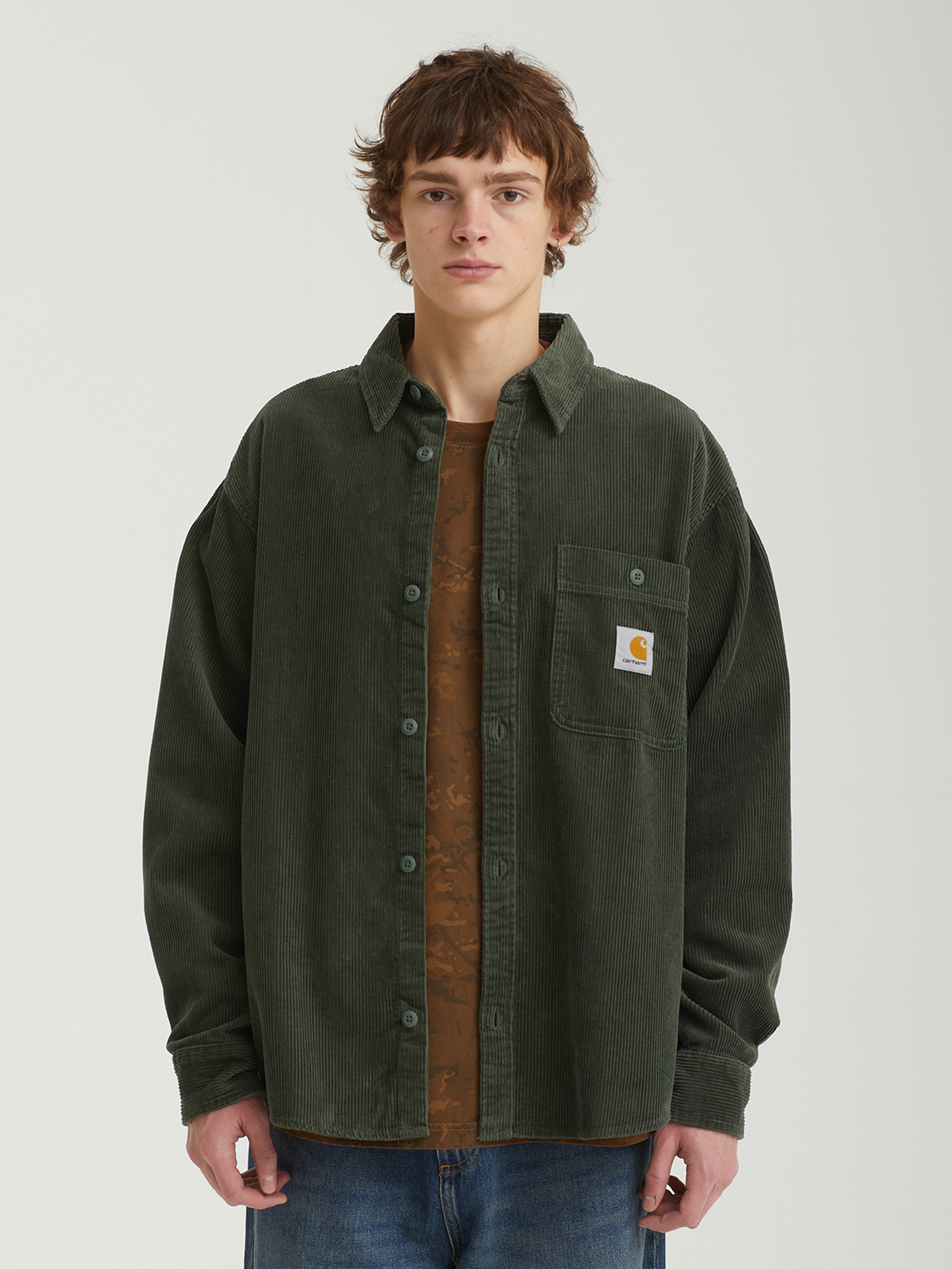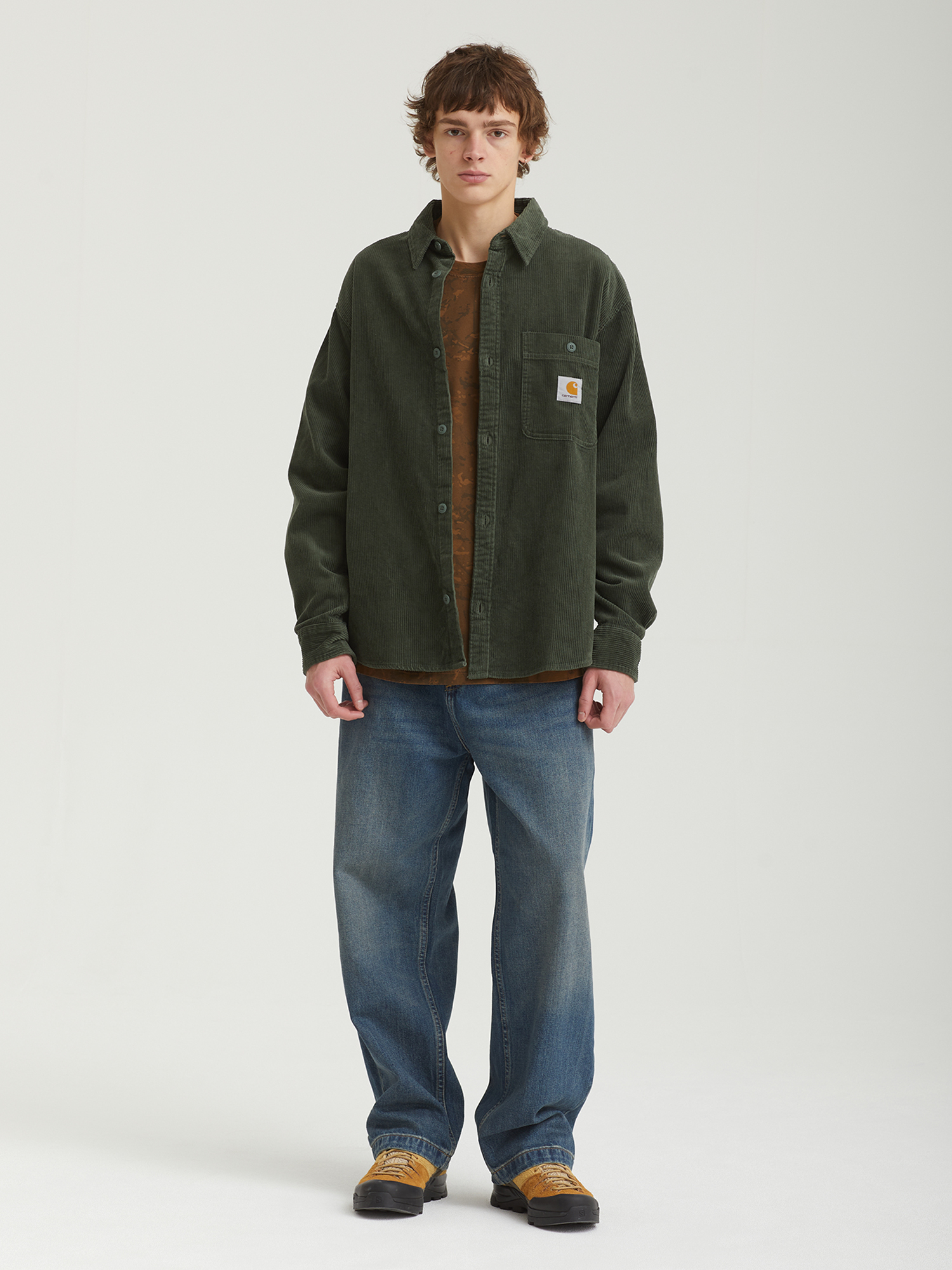 Рубашка Carhartt WIP Flint Shirt выполнена из мягкой вельветовой ткани в крупный рубчик (8 wale). Модель имеет свободный крой, изогнутый нижний край и классическую застежку на пуговицы. Легкая фабричная обработка Garment washing делает ткань более комфортной и подчеркивает ее фактуру. На груди — накладной карман с фирменной тканой нашивкой.