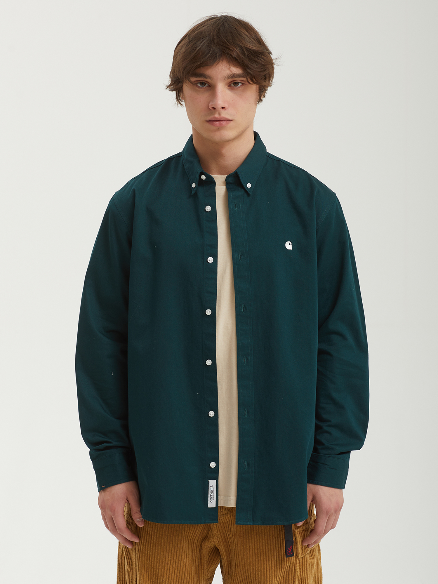 Рубашка Carhartt WIP из прочного хлопкового твила, выстиранного для мягкости. Изделие дополнено контрастными пуговицами и вышитым логотипом бренда.