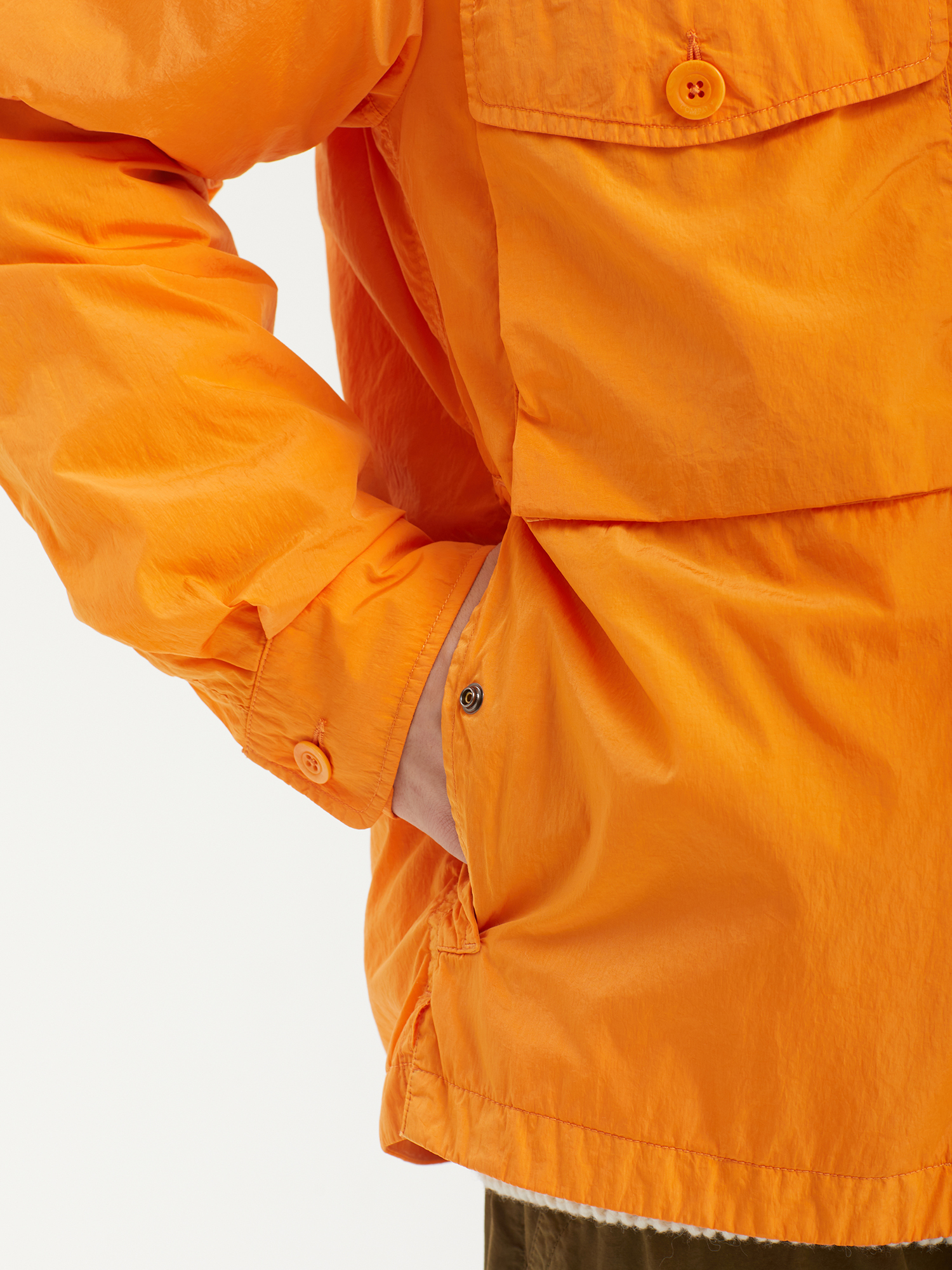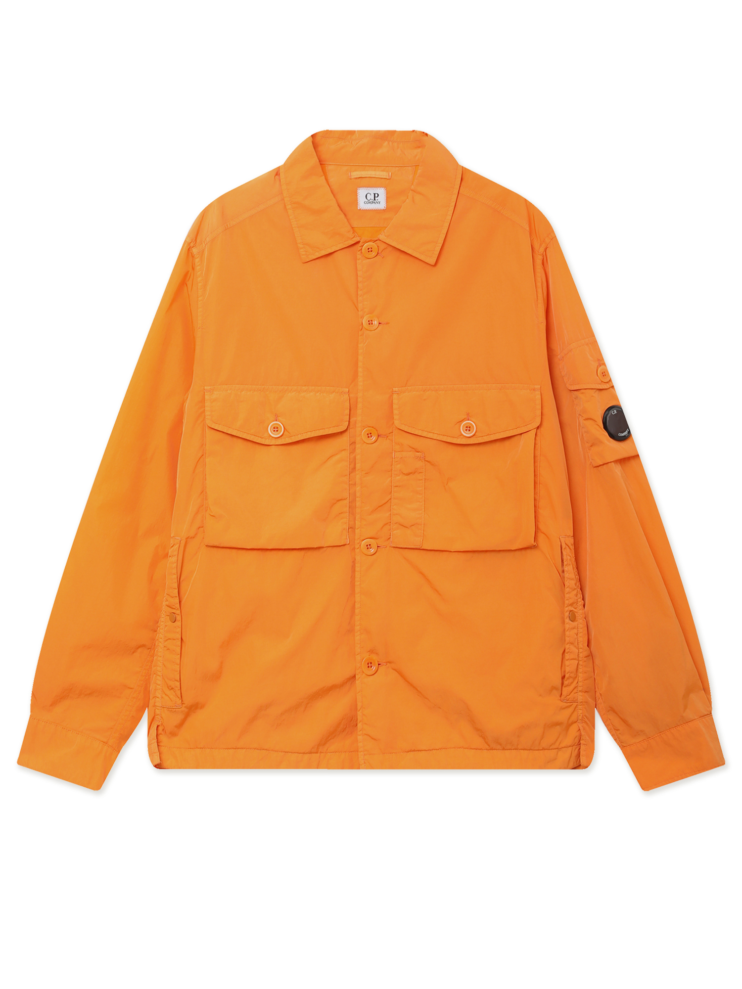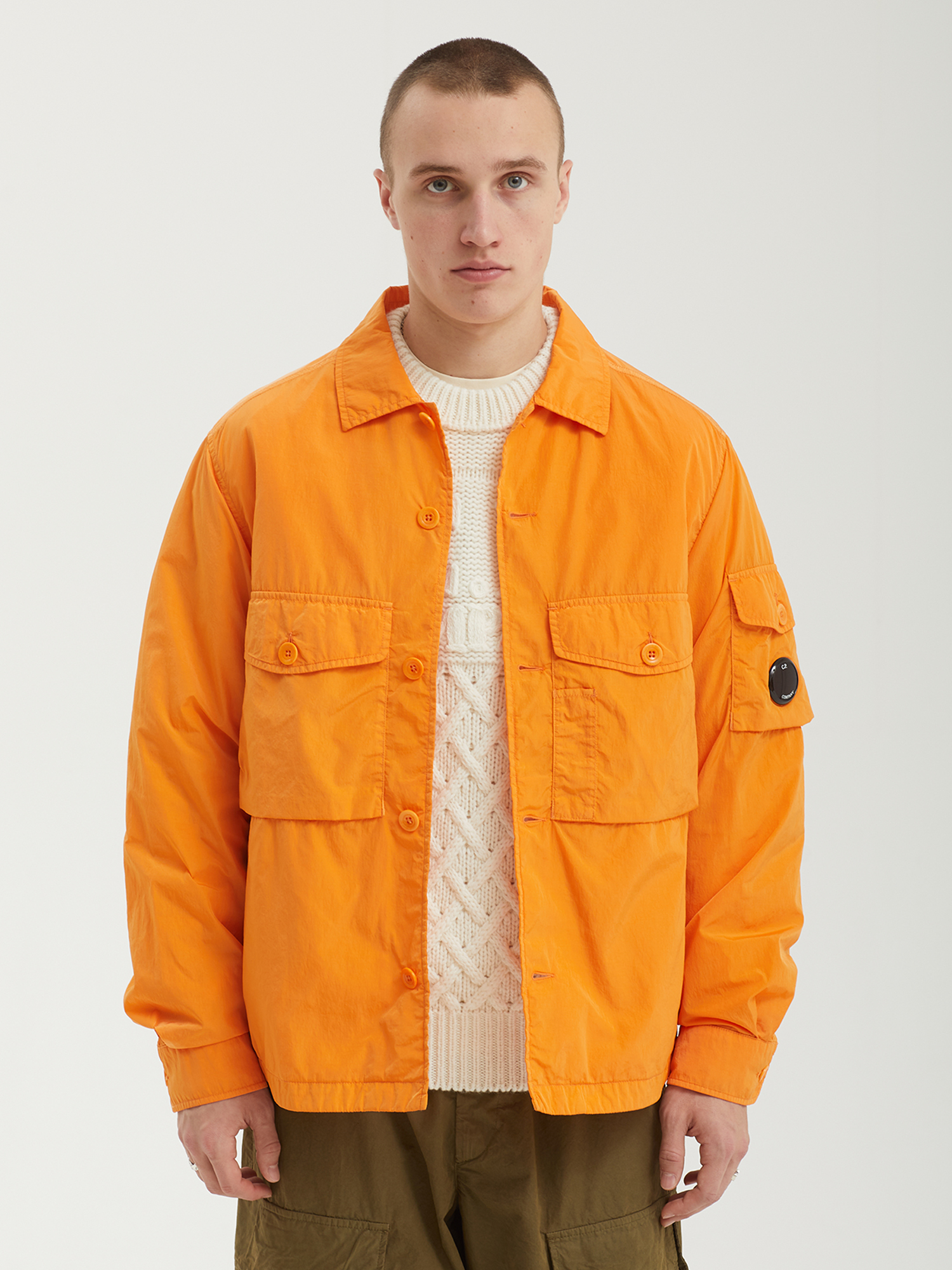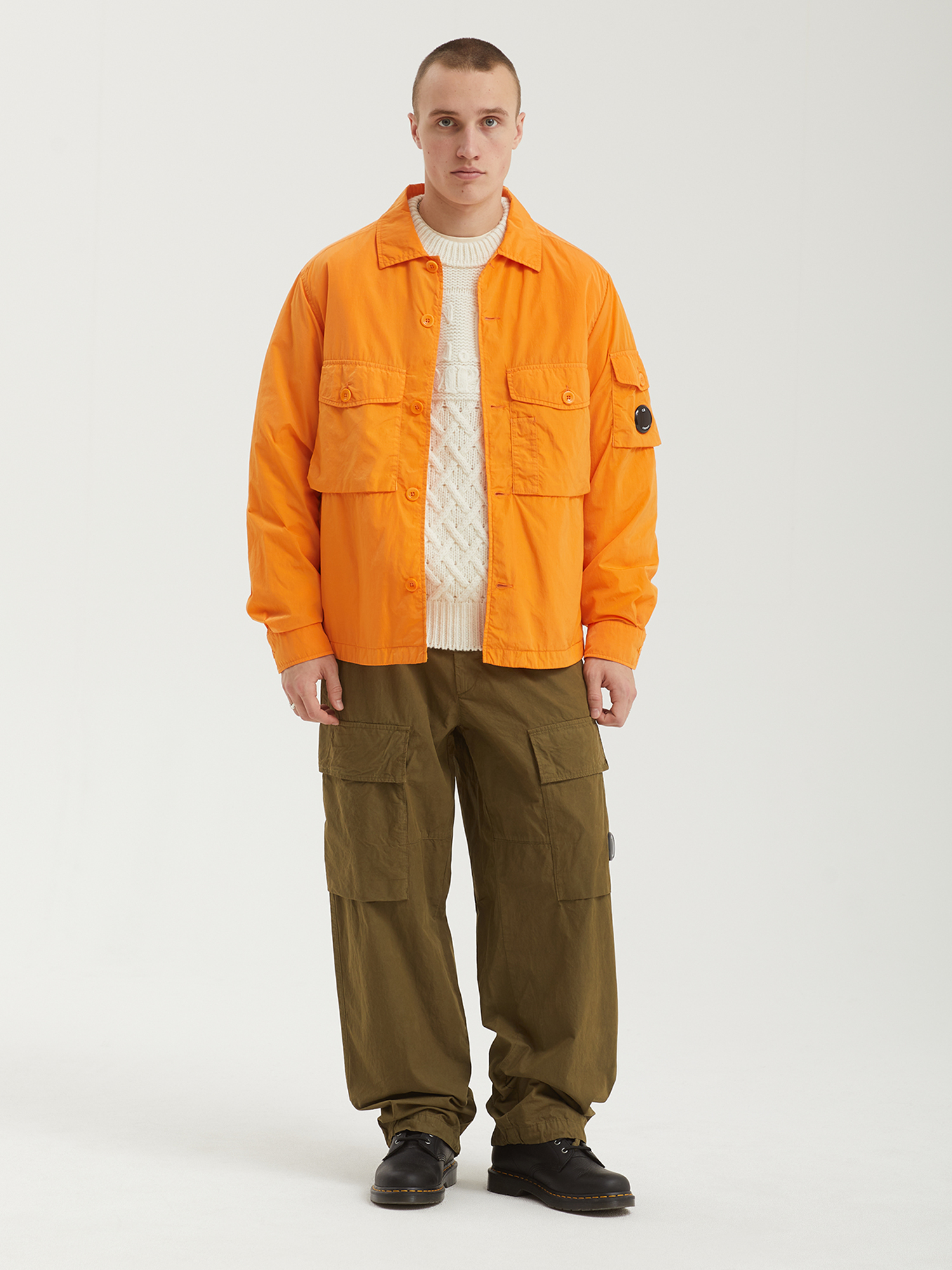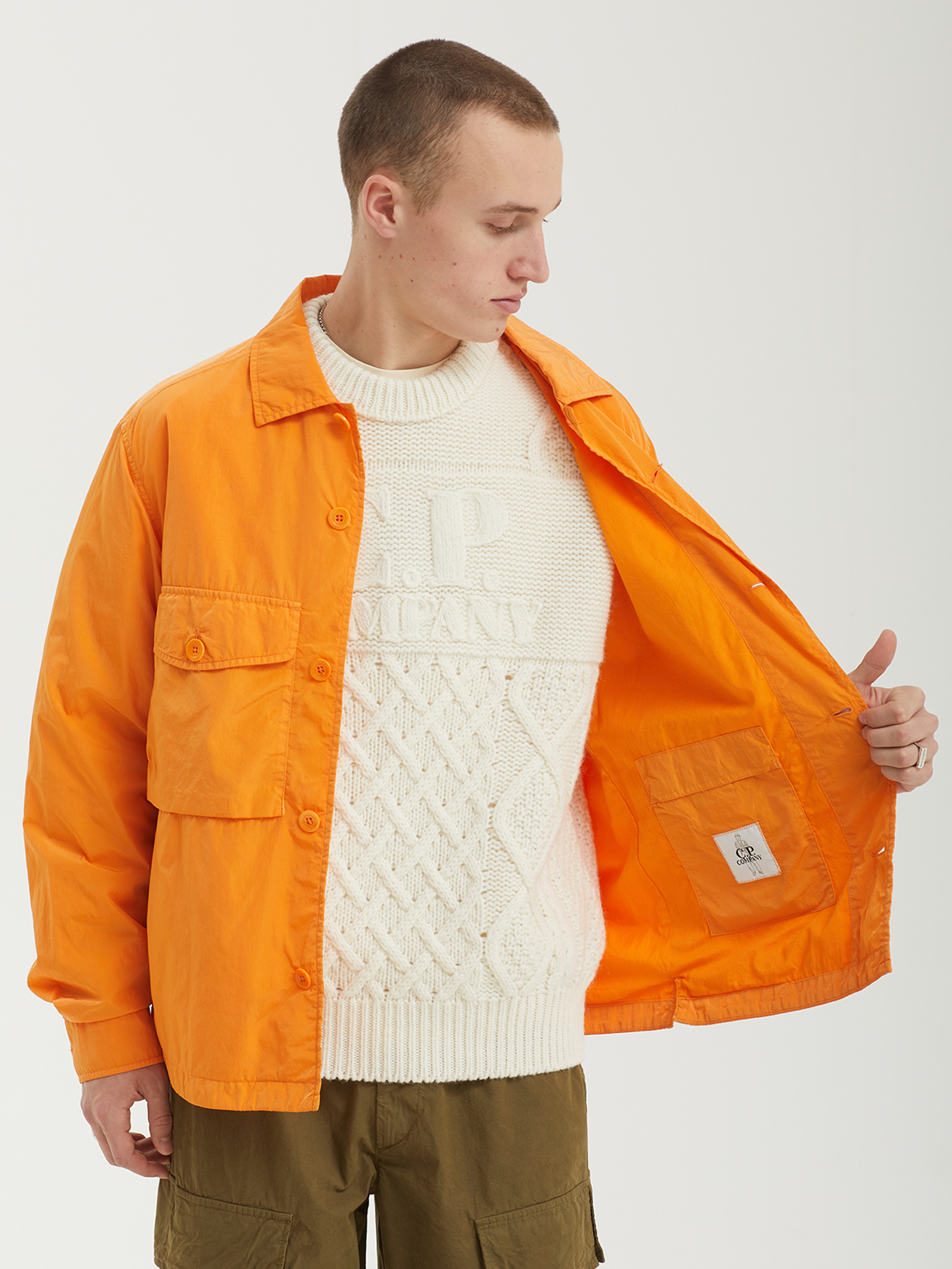 Рубашка C.P. Company с верхом из патентованного многоволоконного нейлона Chrome R. Материал обладает высокими водоотталкивающими и защитными свойствами, дизайн в милитари-эстетике.