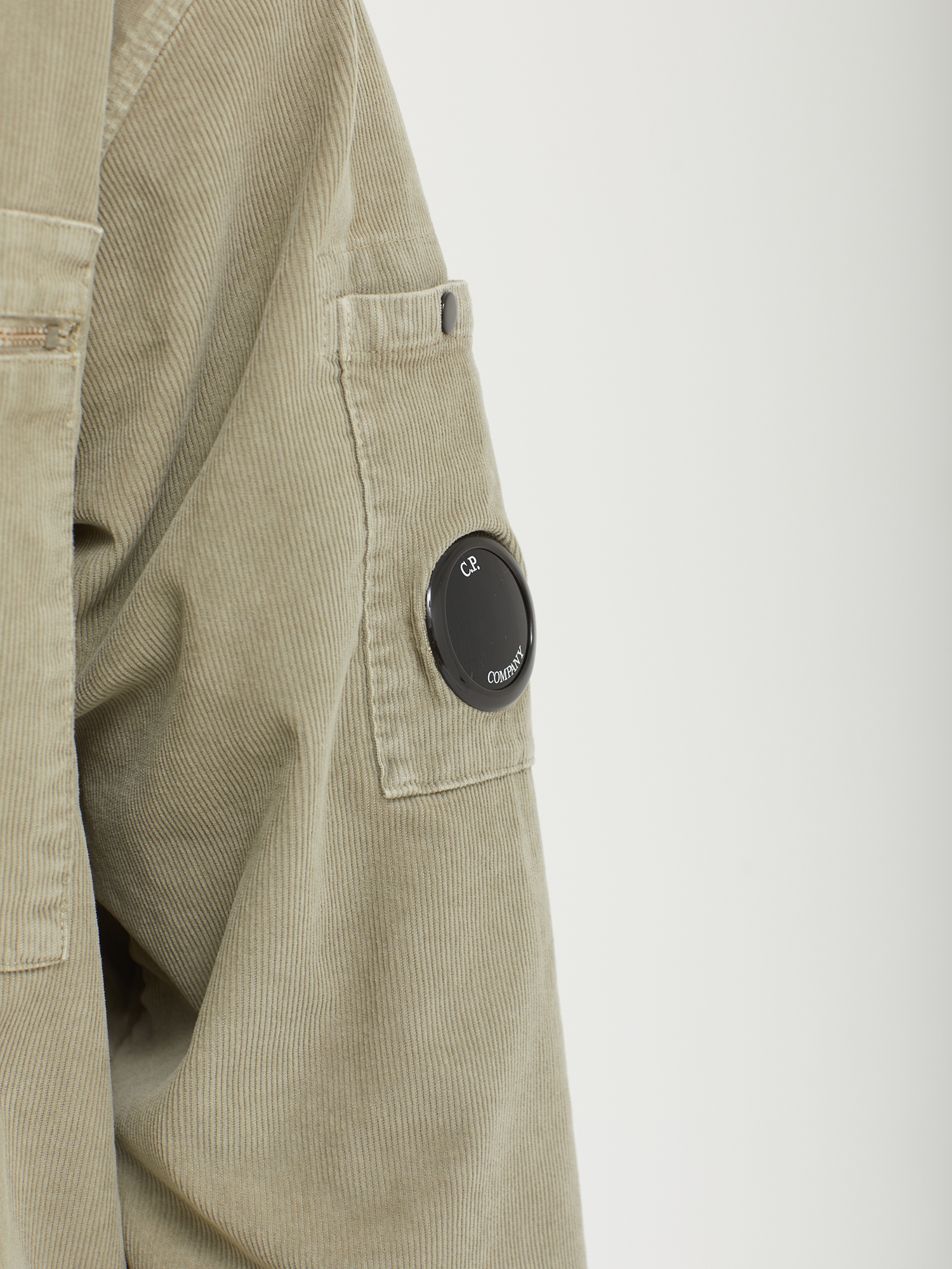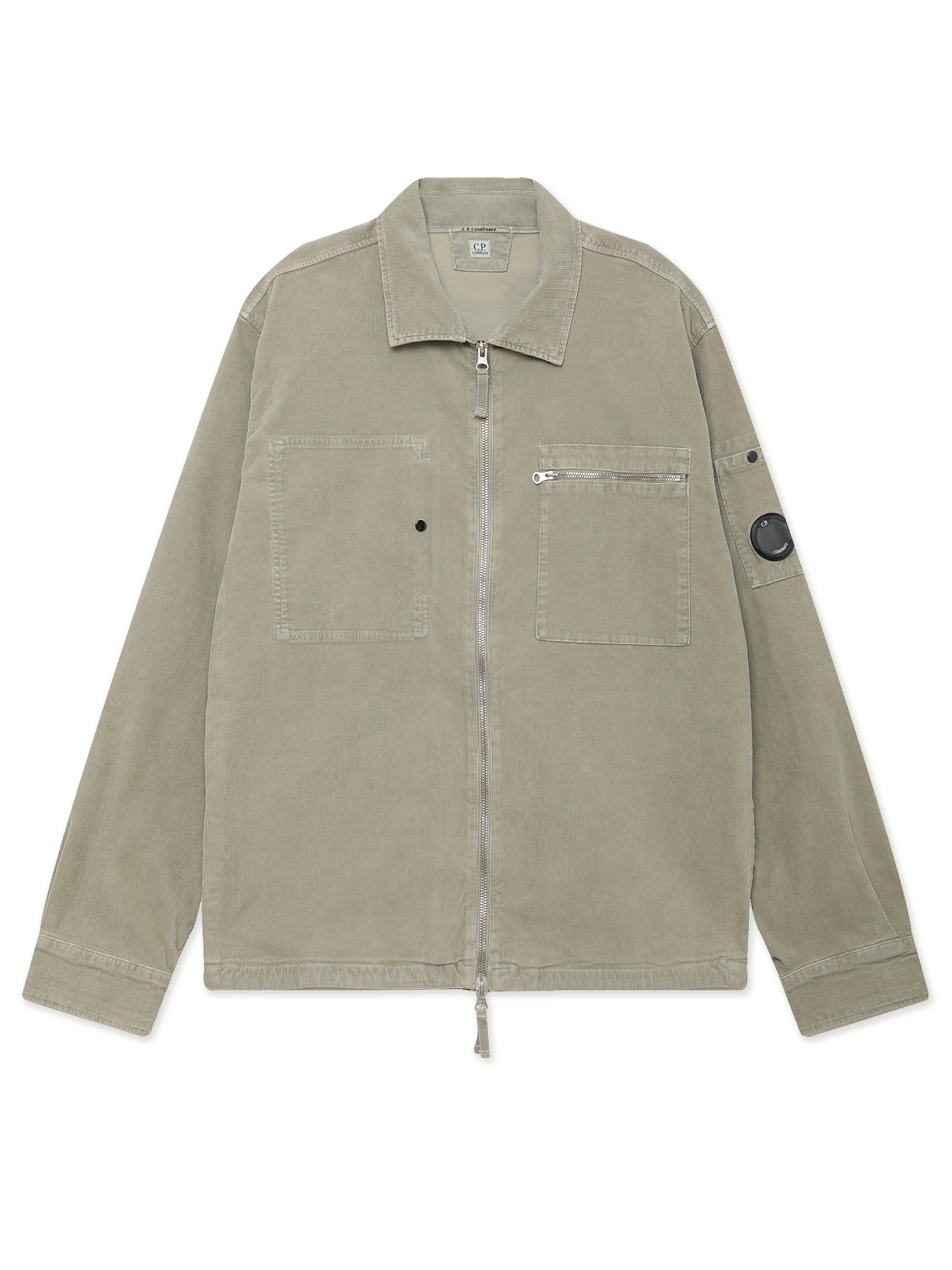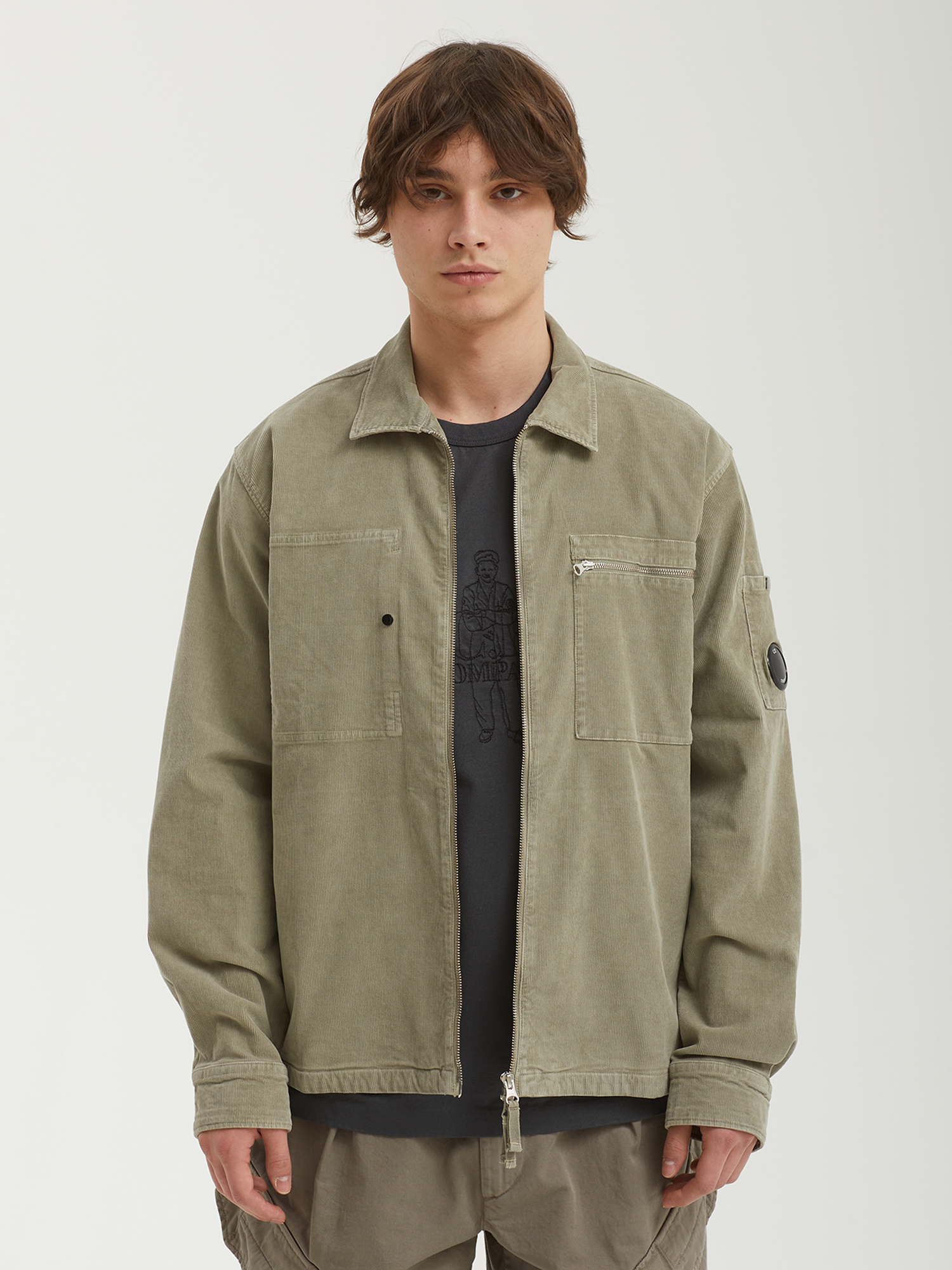 Рубашка на молнии C.P. Company из эластичного вельвета итальянского производства. Изделие окрашено с легким эффектом выцветания, дополнено карманом с фирменной линзой.