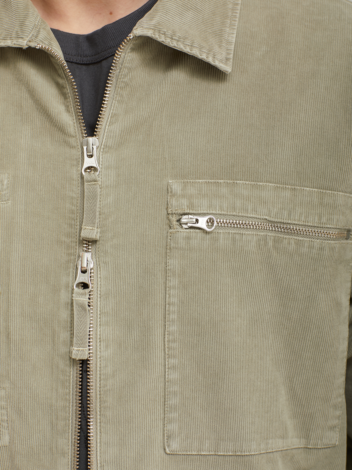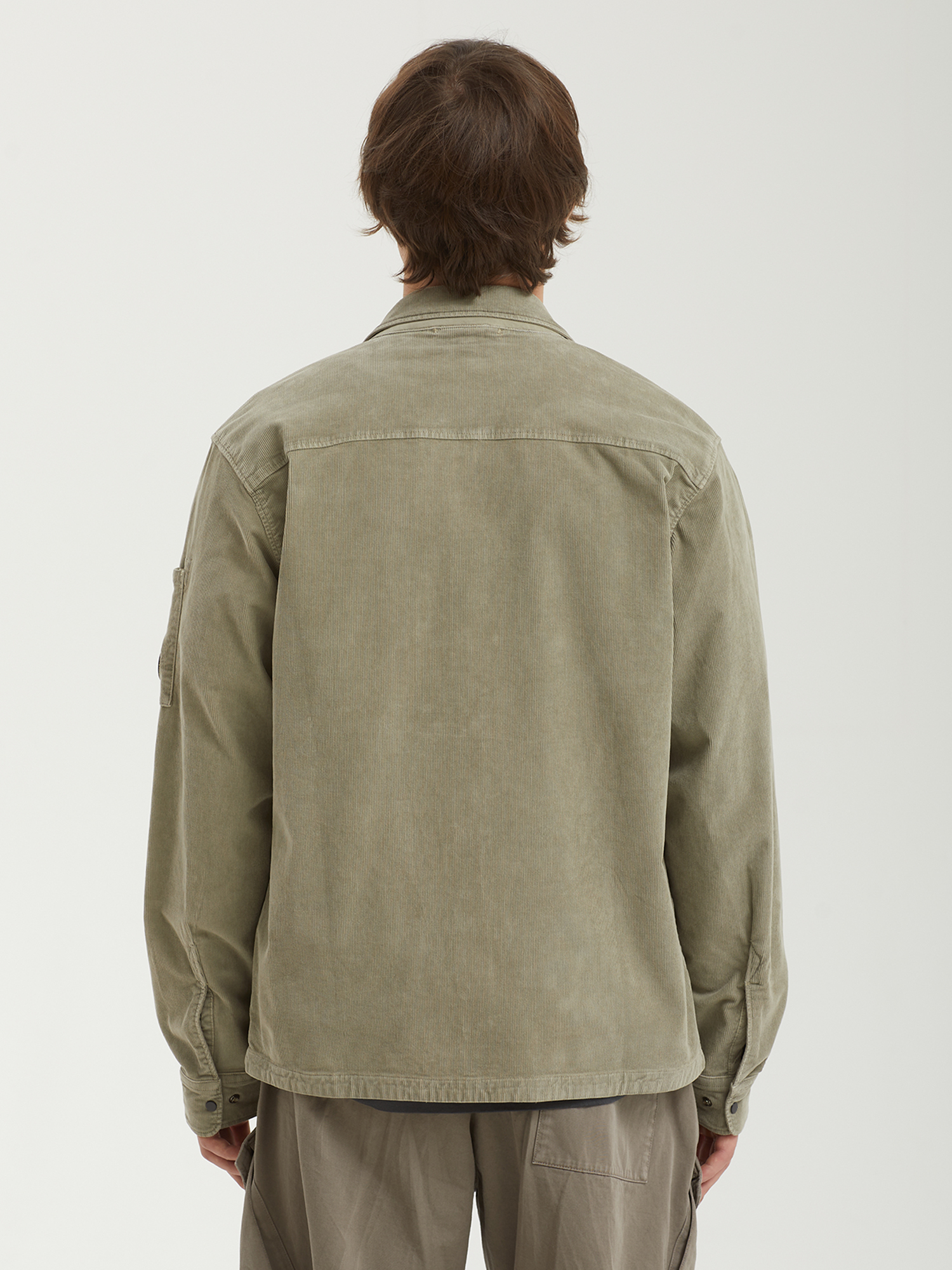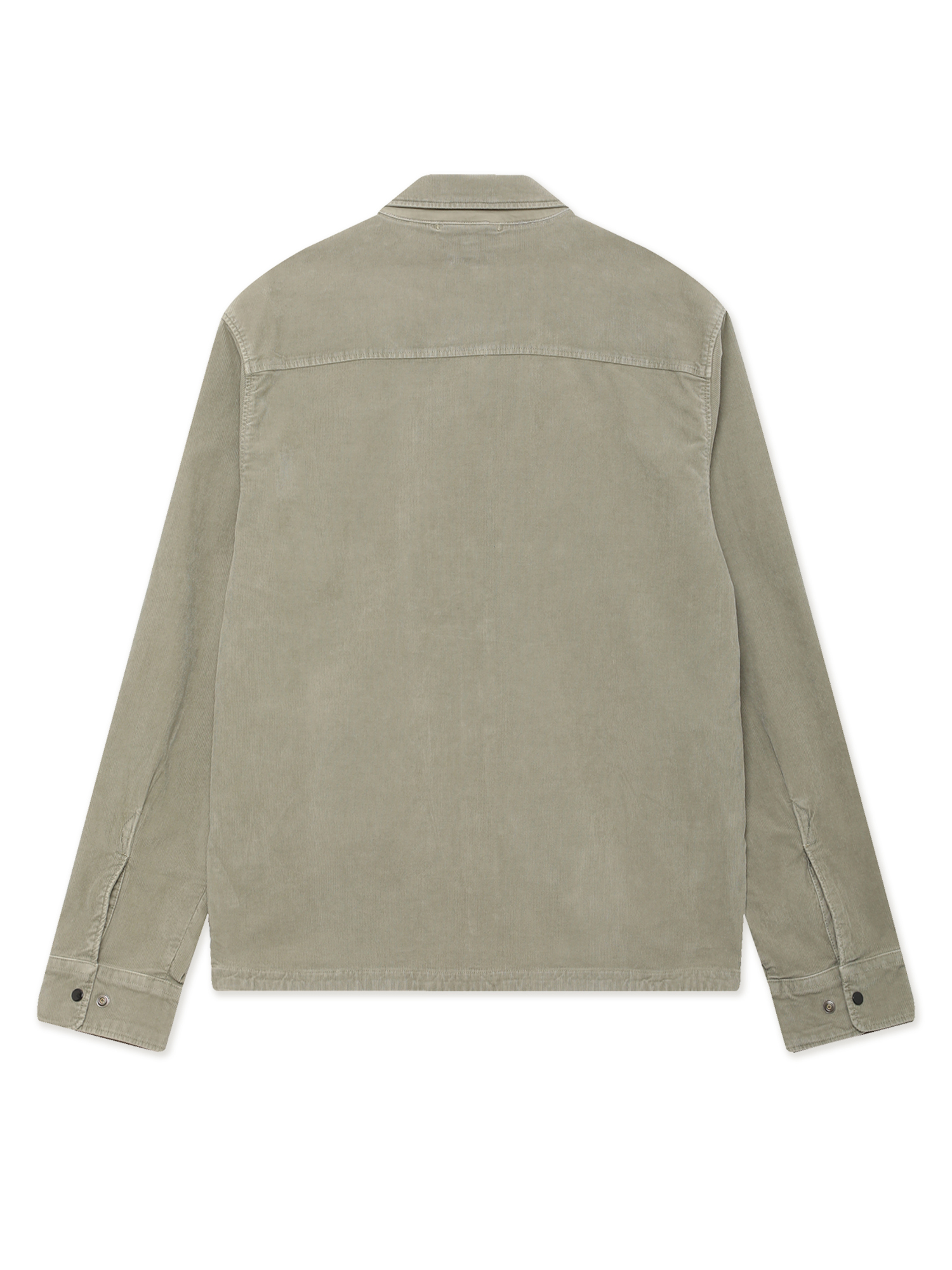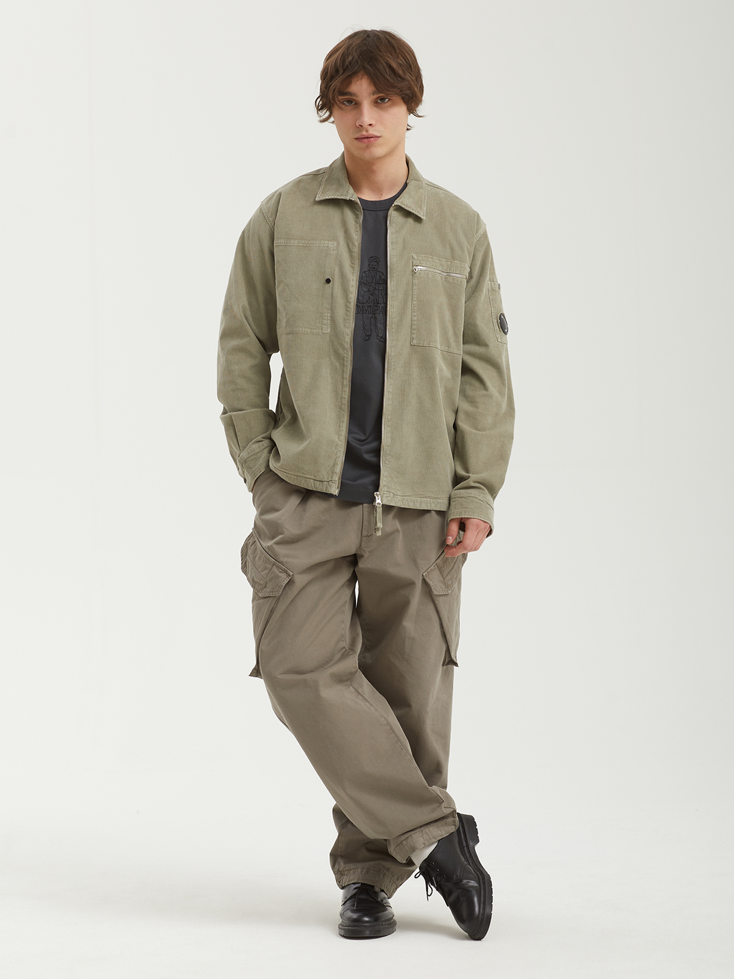 Рубашка на молнии C.P. Company из эластичного вельвета итальянского производства. Изделие окрашено с легким эффектом выцветания, дополнено карманом с фирменной линзой.