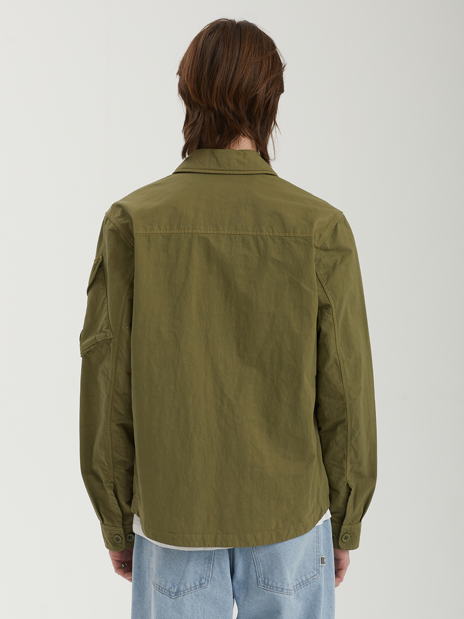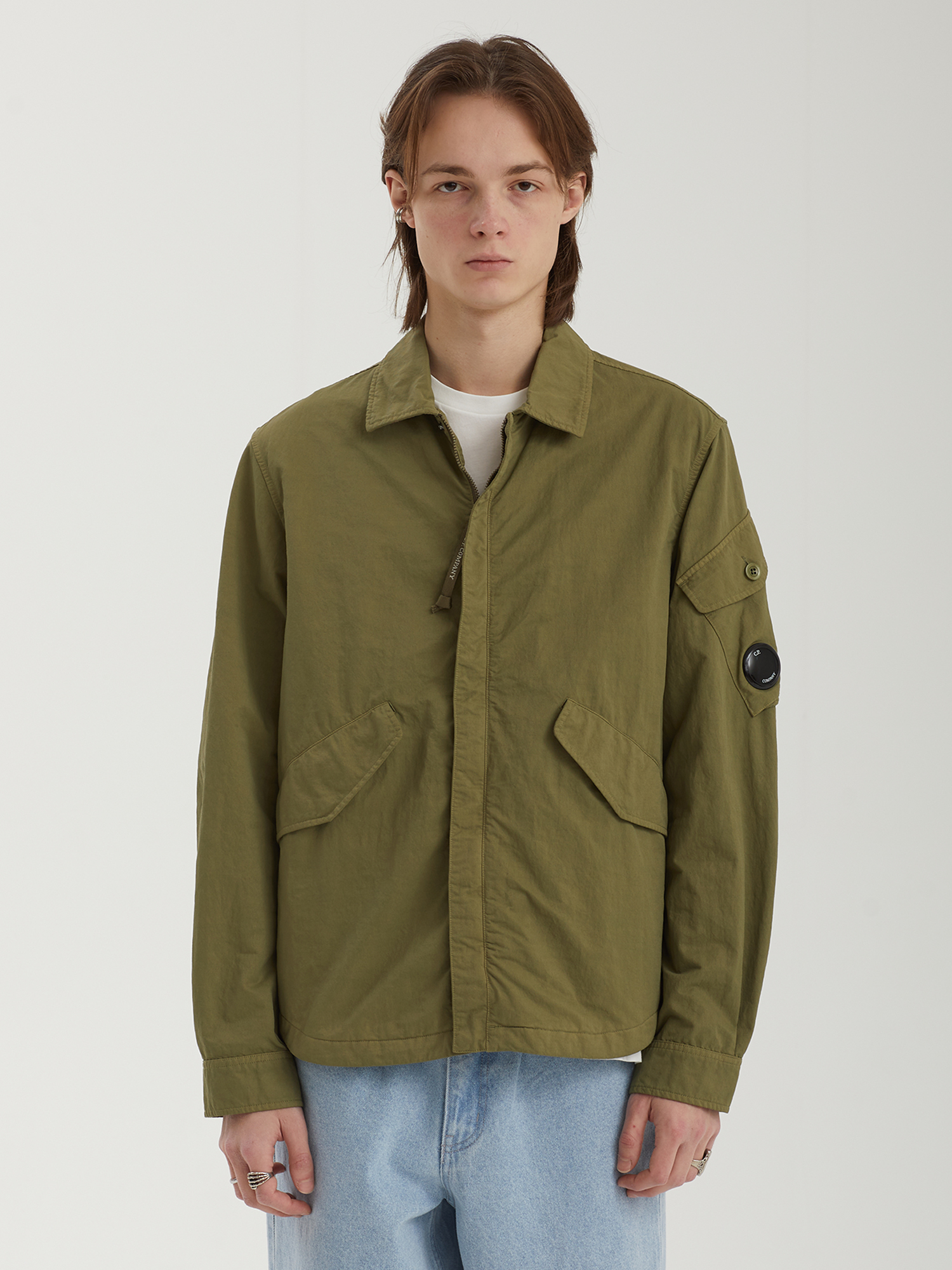 Рубашка C.P. Company из диагонально сотканного нейлона с мягким матовым эффектом. Модель имеет стандартный крой и дополнена накладным карманом на рукаве. Скрытая двусторонняя молния по всей длине, фронтальные карманы с клапанами на кнопках и регулируемые манжеты обеспечивают удобство и функциональность. Финальное окрашивание изделия и водоотталкивающая обработка придают ткани насыщенный оттенок и устойчивость к погодным условиям.
